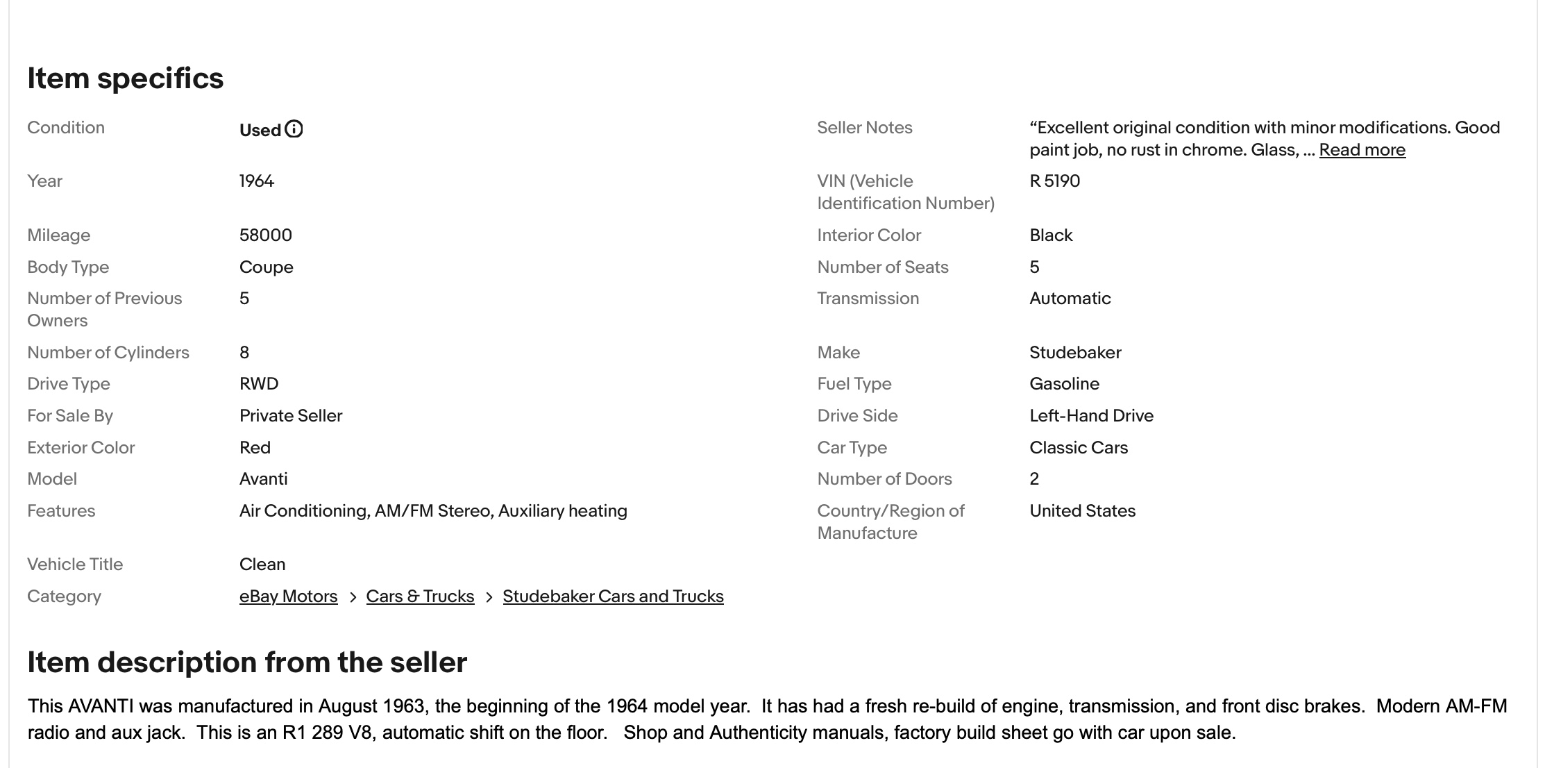 1964 Avanti R-5190 - Oct 2025