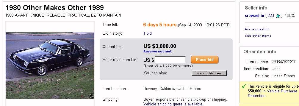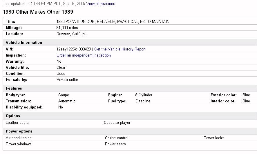 1989 Avanti 12AAV-0429 Listing - Sept 2009
