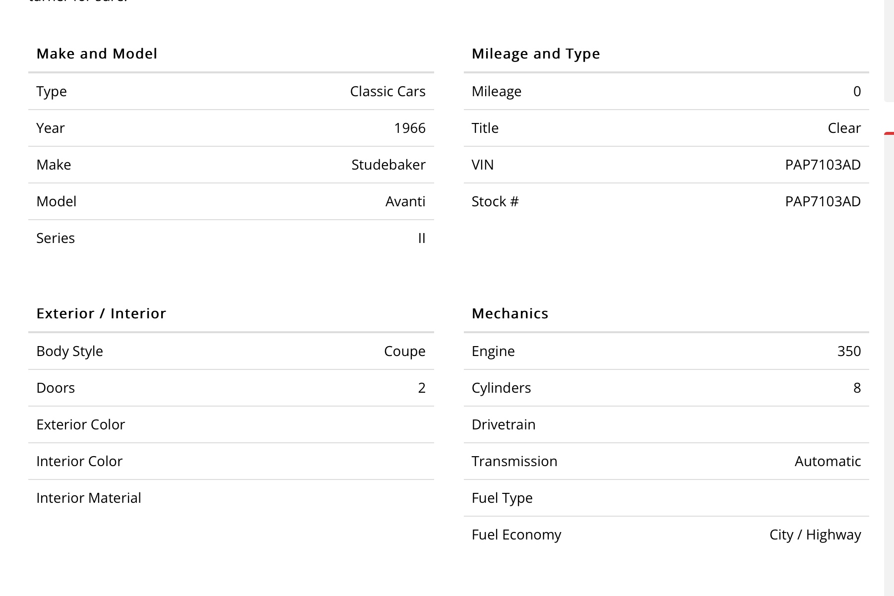 1966 Avanti RQA-0066 (Body RQ-4609) - Jan 2024