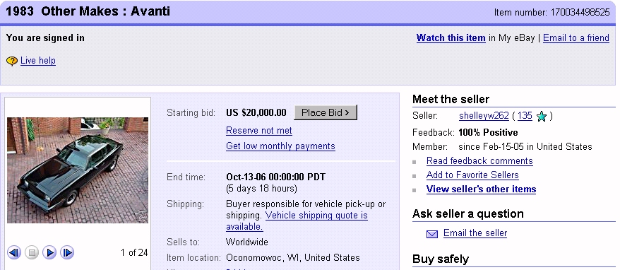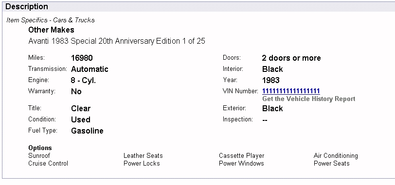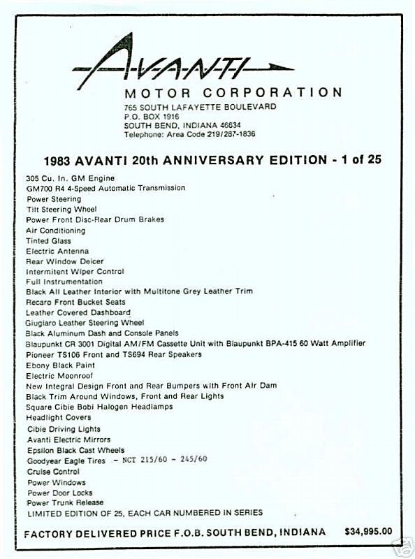 Bob's Studebaker Resource Website 1983 Avanti II RQB-3815 - October 2006