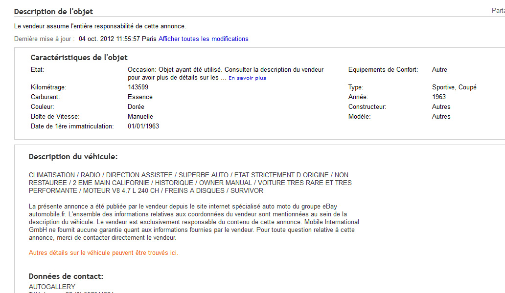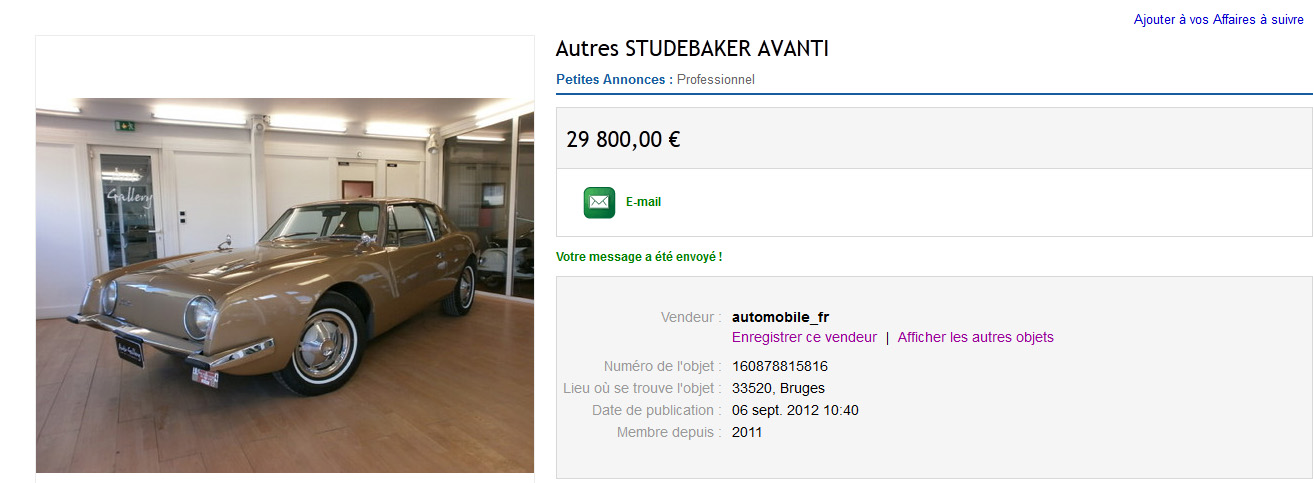 Bob's Studebaker Resource Website Ebay 160878815816 France - Oct 2012
