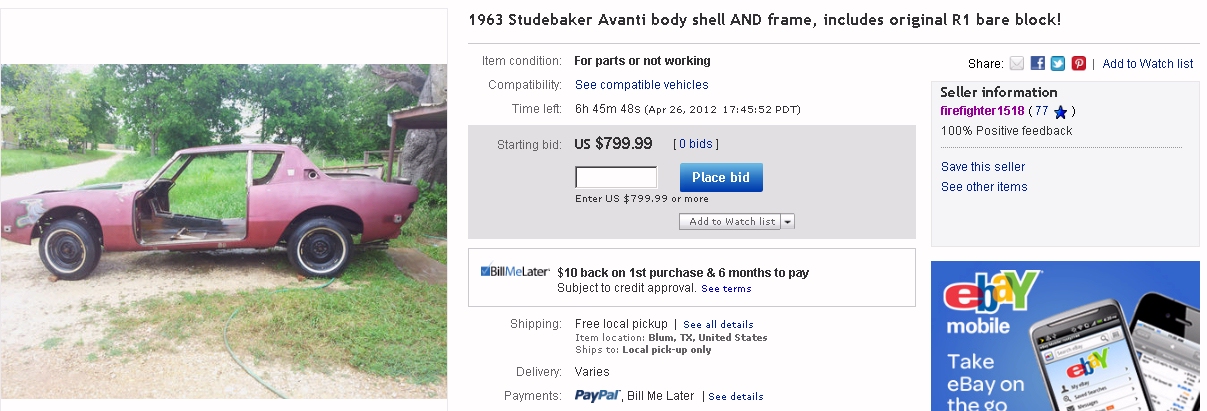 Bob's Studebaker Resource Website Unknown Avanti October 2009