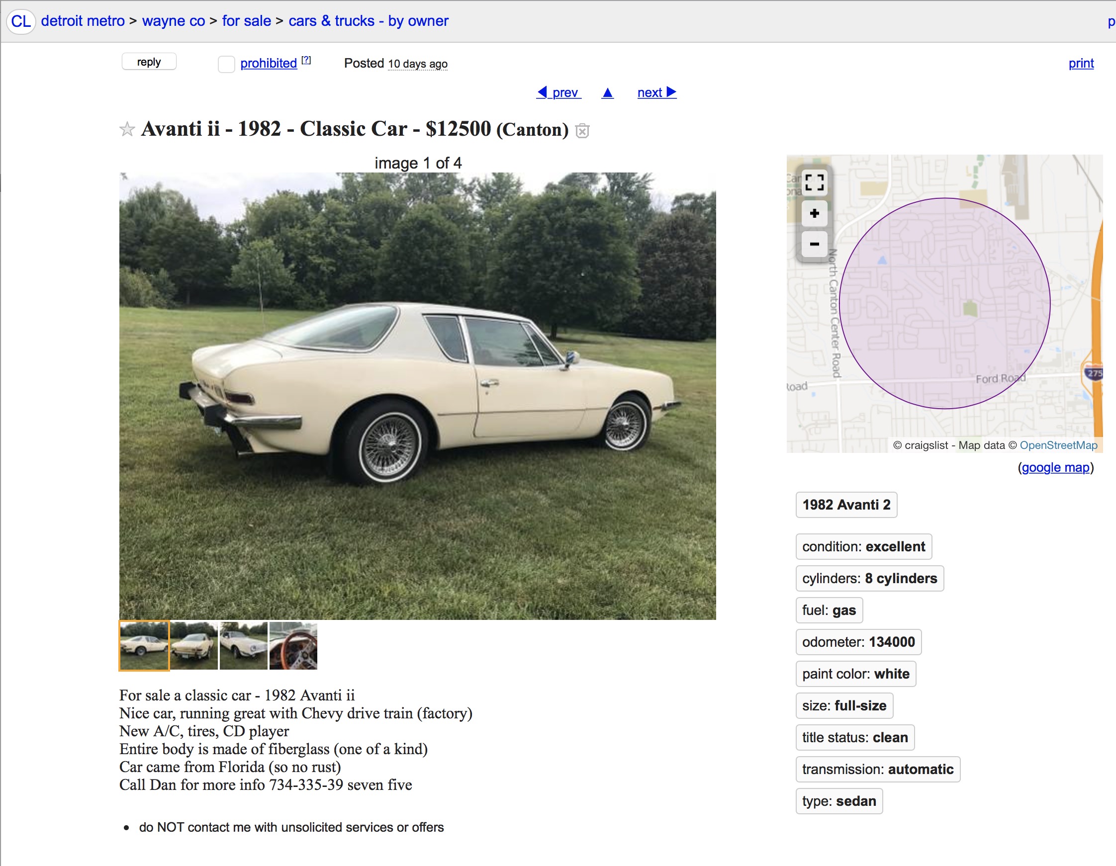 1982 Avanti II - RQB-nnnn - Detroit, MI - Aug 2017