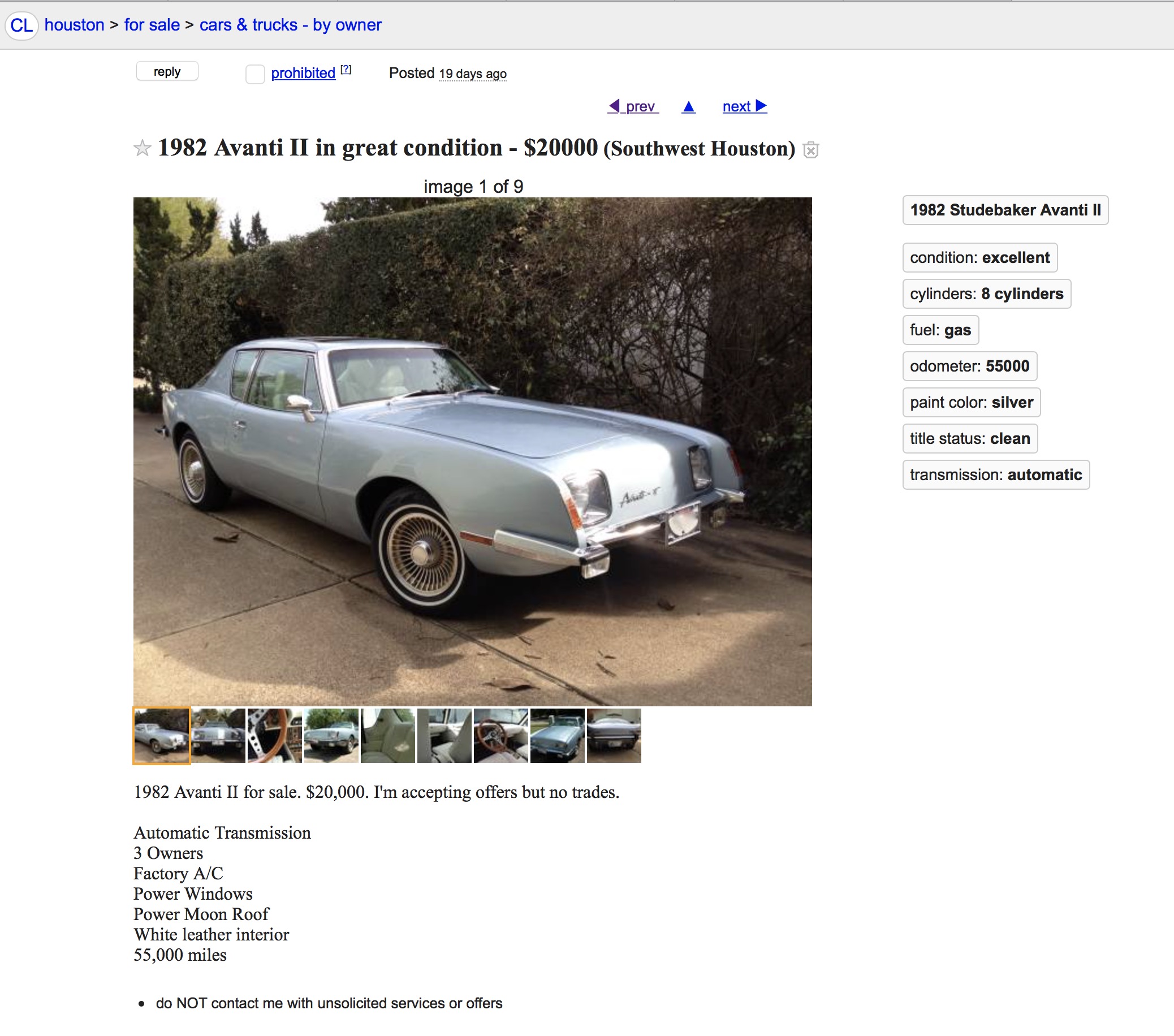 1982 Avanti II - RQB-???? - Houston, TX - Aug 2017