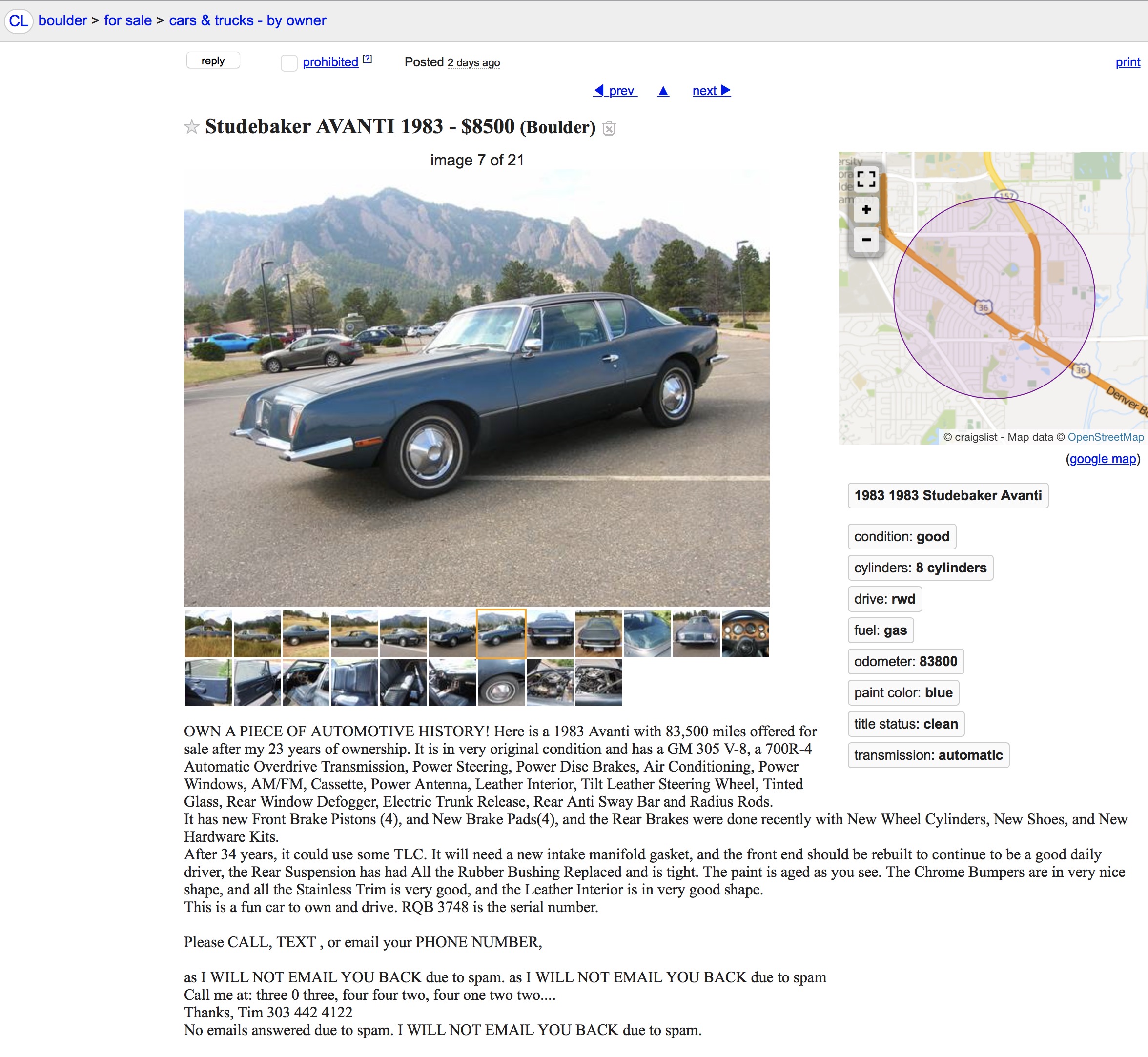 1983 Avanti II - Boulder, CO - Nov 2017