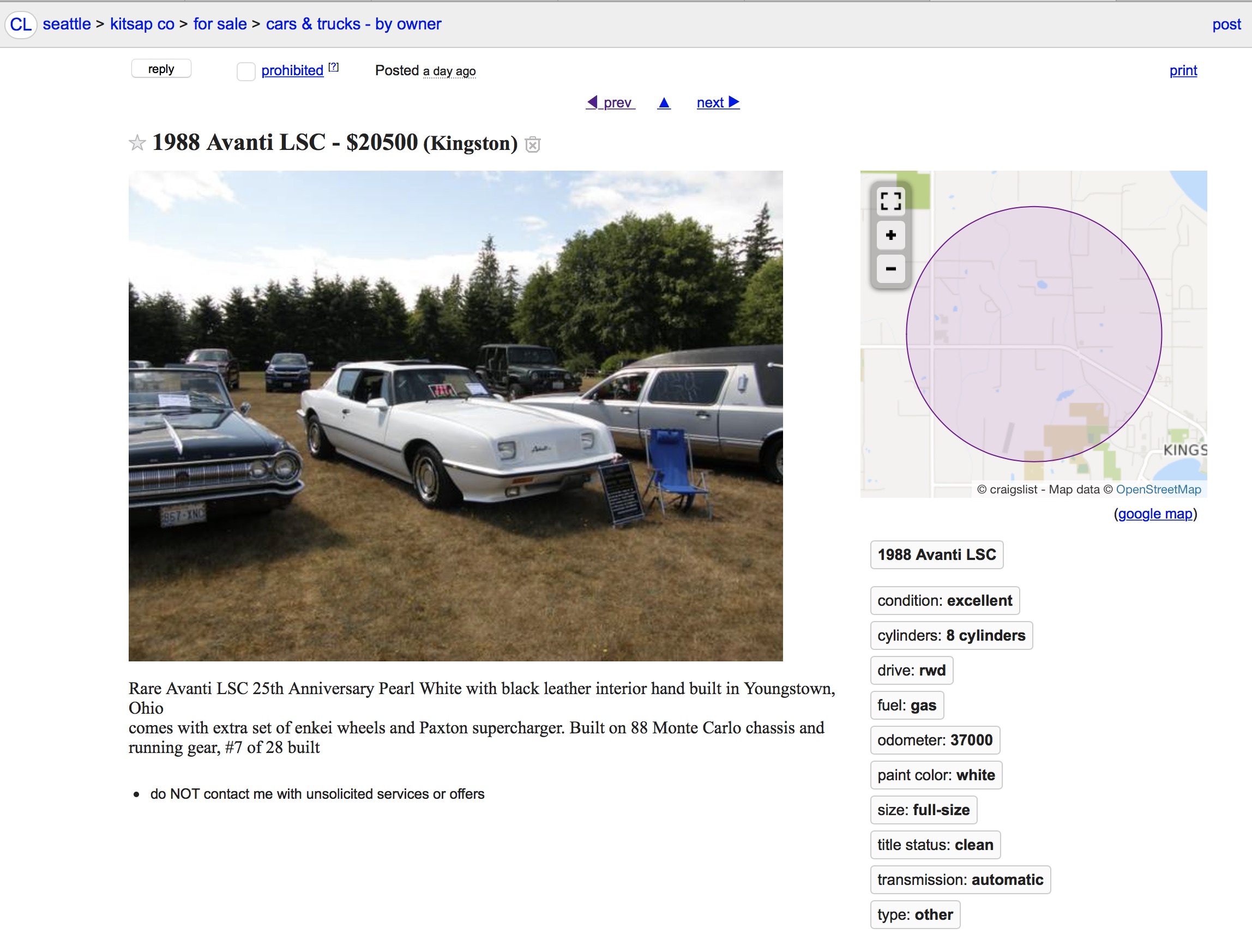 1988 Avanti LSC - 12AAV....???? - Kitsap, WA - Aug 2017