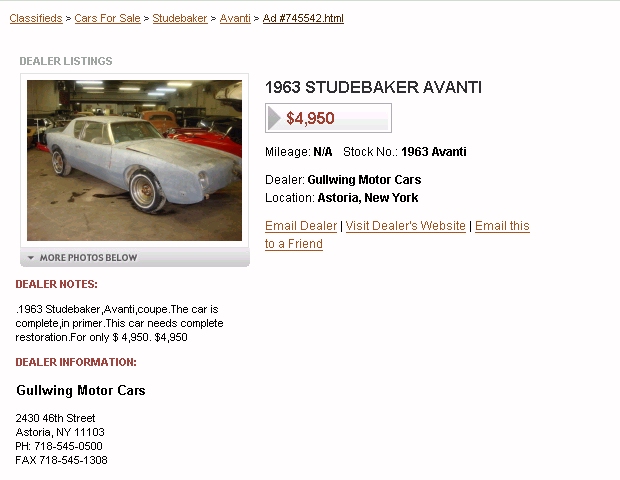 Bob's Studebaker Resource Website 1963 Studebaker Avanti - Unk - Astoria, NY Jan 2009