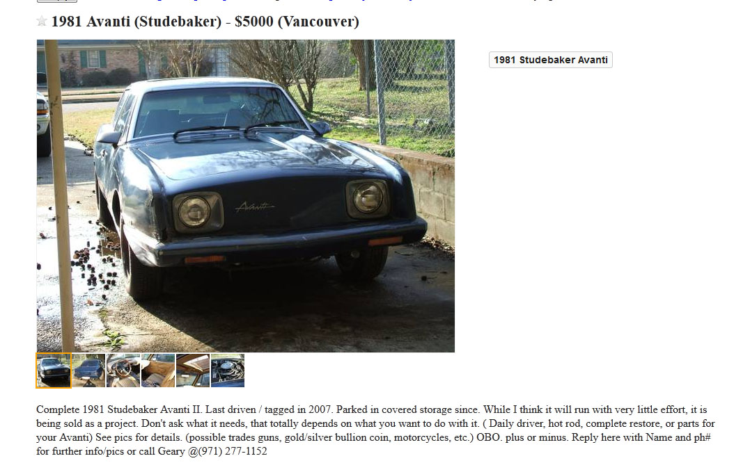 Bob's Studebaker Resource Website Craigslist - Nov 2013