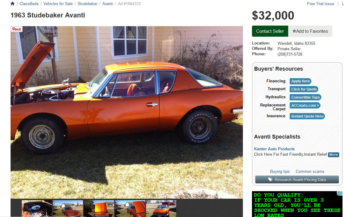 Bob's Studebaker Resource Website 1963 avanti - Hemmings lassifieds - July 2014