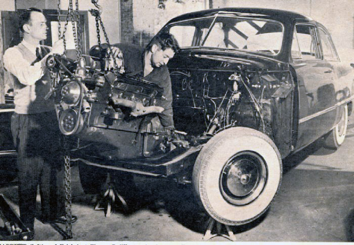 Bill Frick Motors of Rockville Centre, New York was run and operated by Bill Frick. Bill was an innovative road racer and race car builder that turned engine swapping into a fine art. Custom conversions and engine installations were his specialty. Bill's partner, Phil Walters, went under the pseudonym Ted Tappett when he raced Midgets and jalopies around Long Island. He reverted to his given name later on when he switched to sports cars with extraordinary success and went all the way to Le Mans.[2] Bill opened up Bill Frick Motors in 1949, and he began to build and market brand new Cadillac OHV-engined Fords under the name Fordillac. The Fordillacs were powered by the 160-horsepower, 331-cubic-inch four barrel Cadillac V-8's, and they were available with manual or automatic transmissions. Engine and chassis upgrades were also available. BIll's shop was located in Rockville Centre, New York, at 1000 Sunrise Highway. Nearly next door to him was Signal Motors, a Ford dealer. Frick would buy the new Ford, drive it 100 yards and yank out the new flathead for the Cadillac engine, so there was a pile of new flatheads in the back of Frick's shop during that era.[3]