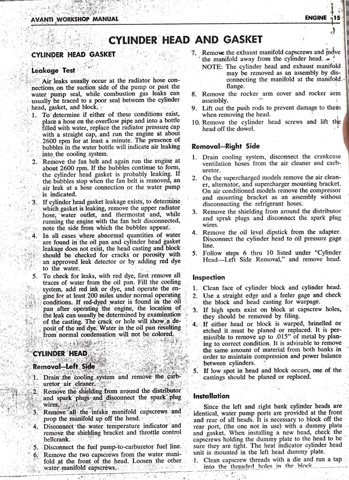 1964-64 Avanti Shop Manual - Engine CamShaft / Cylinder Head