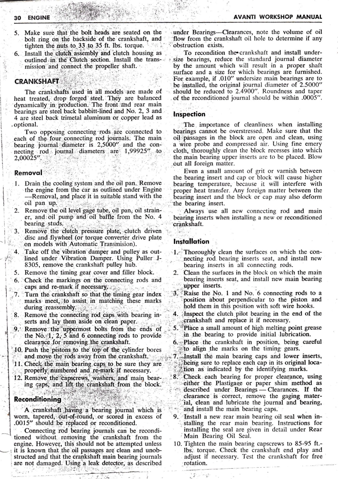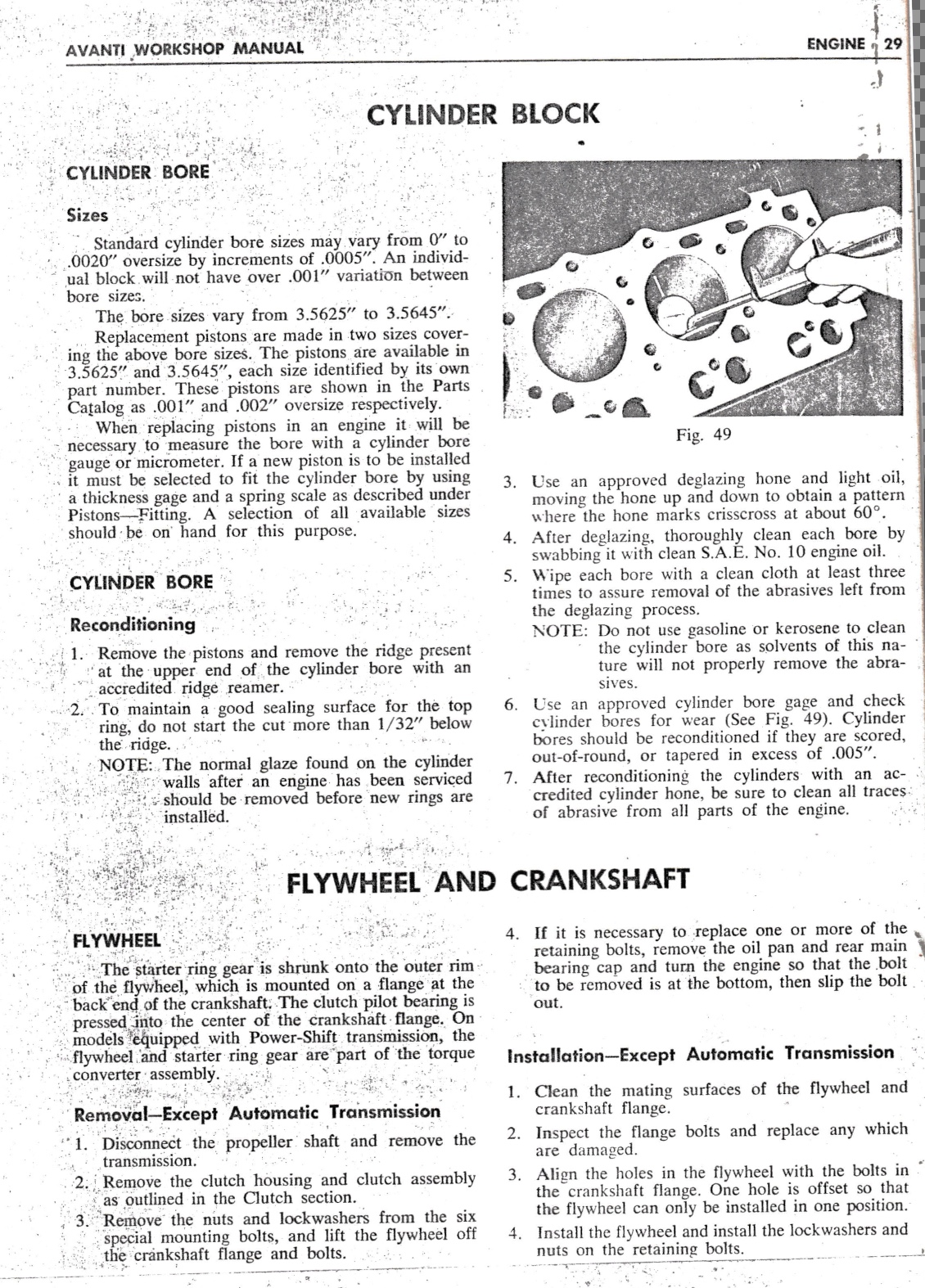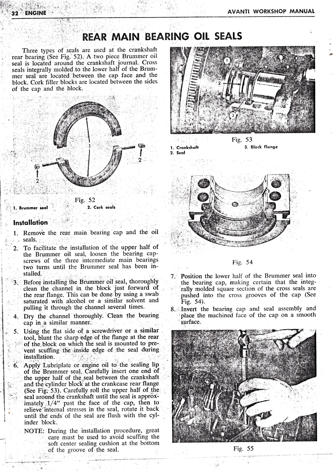 1964-64 Avanti Shop Manual - Engine Cylinder Block / Rear Oil Seal