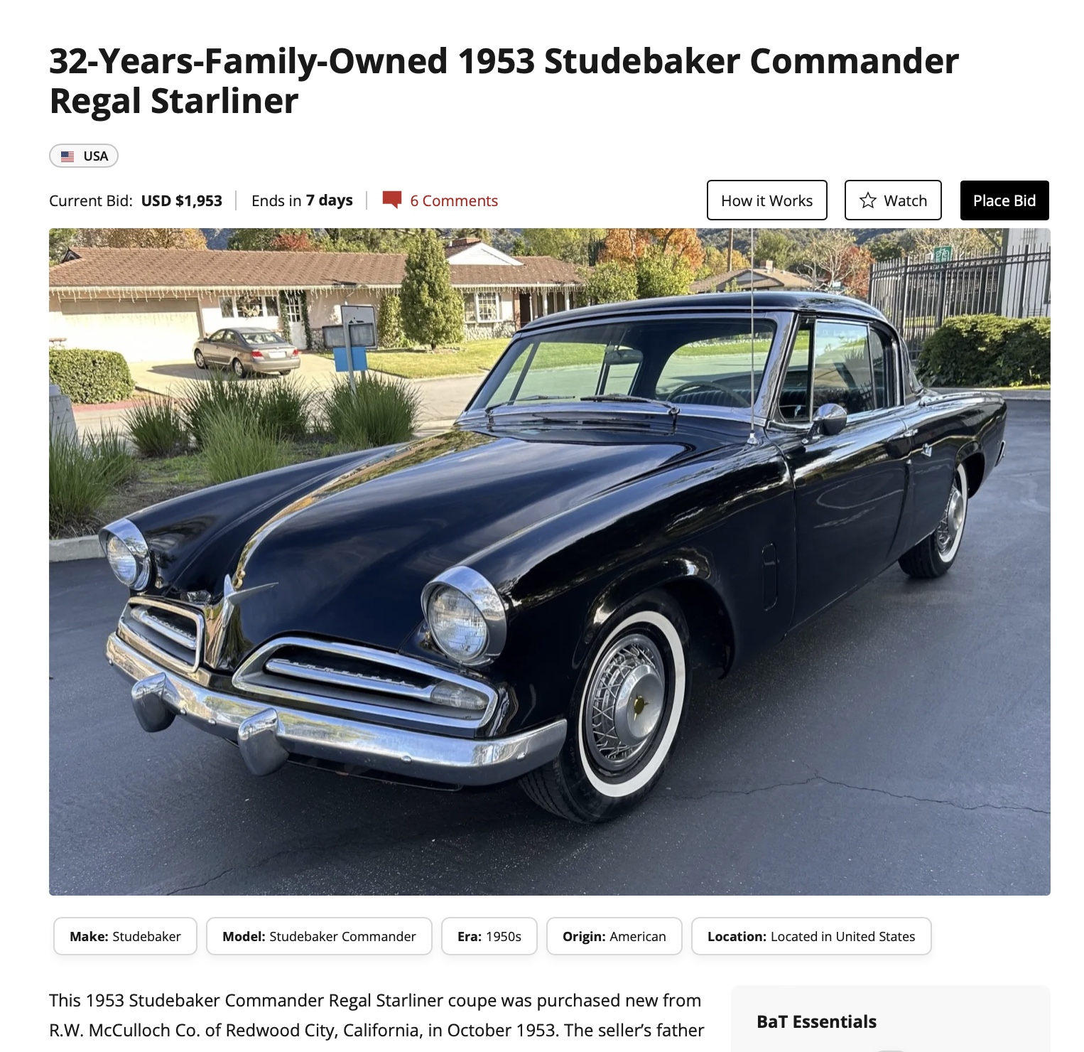 Frank F. Hoffman, Dunsmuir, CA ( 1926) Ref... (kirkdob - SDC Forum 24012015) 1951 Est. (R. Quinn - 132052023) Frank F. Hoffman, Yreka, CA ( 1926) Ref... (kirkdob - SDC Forum 24012015) Frank H. Afton Co., Inc., \240 N. Market.\ Inglewood, CA ( studerich - SDC Forum - Oct 2006) Parts & Service only Plus Delivery 1 Delivery 2 (since 1919) Ref... ( 10 Nov 2012) (C 1950) Ref... 1950 (c4-09112013) (C 1941) Frank M. Darling, \ 524 East 1st St.\ Santa Ana, CA (C 1955)   Ref... (09 Apr 2013) (E 1956) Frank M. Sheridan, Red Bluff, CA ( 1926) Ref... (kirkdob - SDC Forum 24012015) Possiblity 1940 (est.) Steve Hill - (05122018) (Facebook) Also see #2 Also see #3 Also see #4