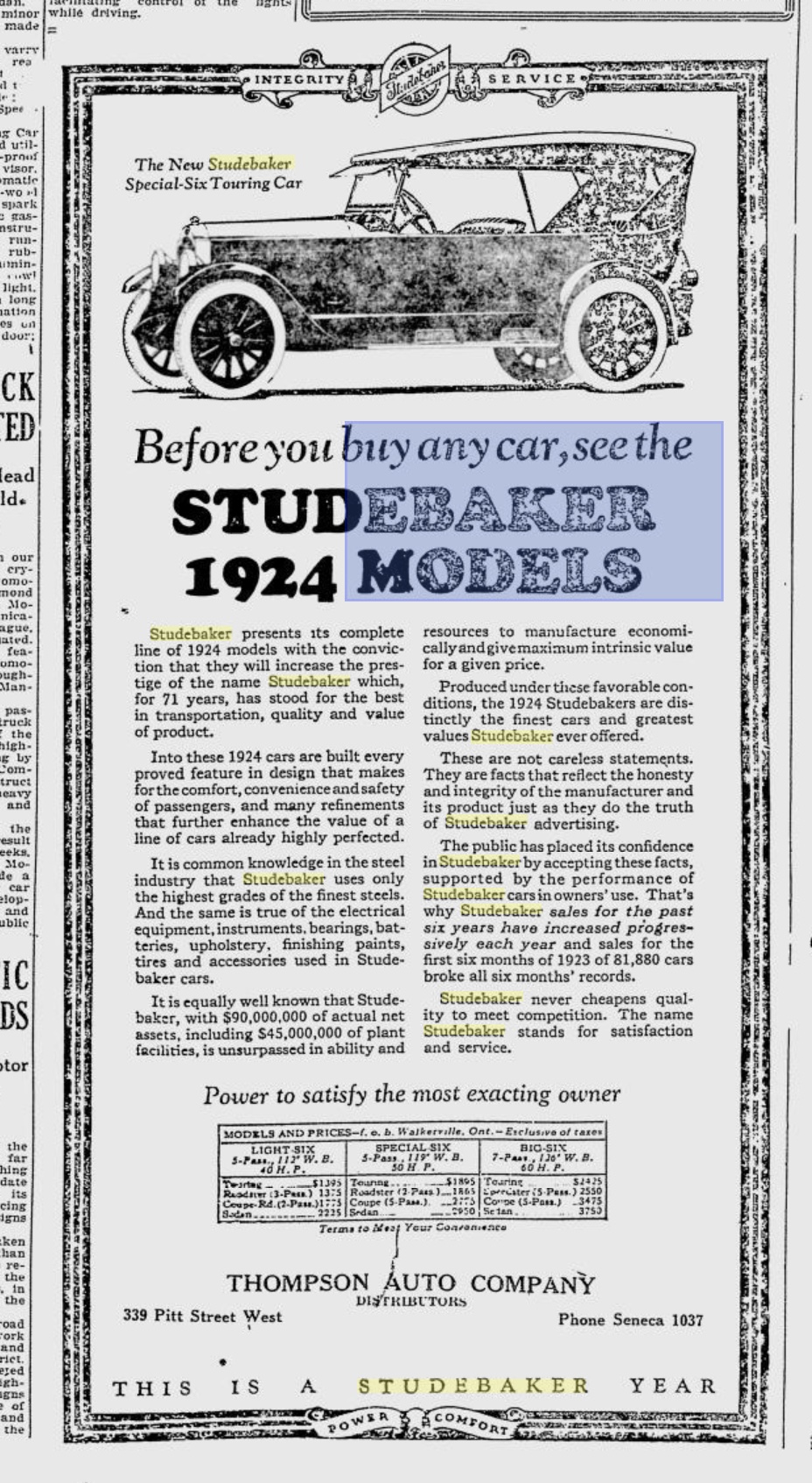 Studebaker Limited, \Pound Lane, Willesden\ (Managing Director - Eustace H. Watson) London, W.1., UK (24 Dec 2011) (c3) (C 1923) Ref... (04 Sep 2013)