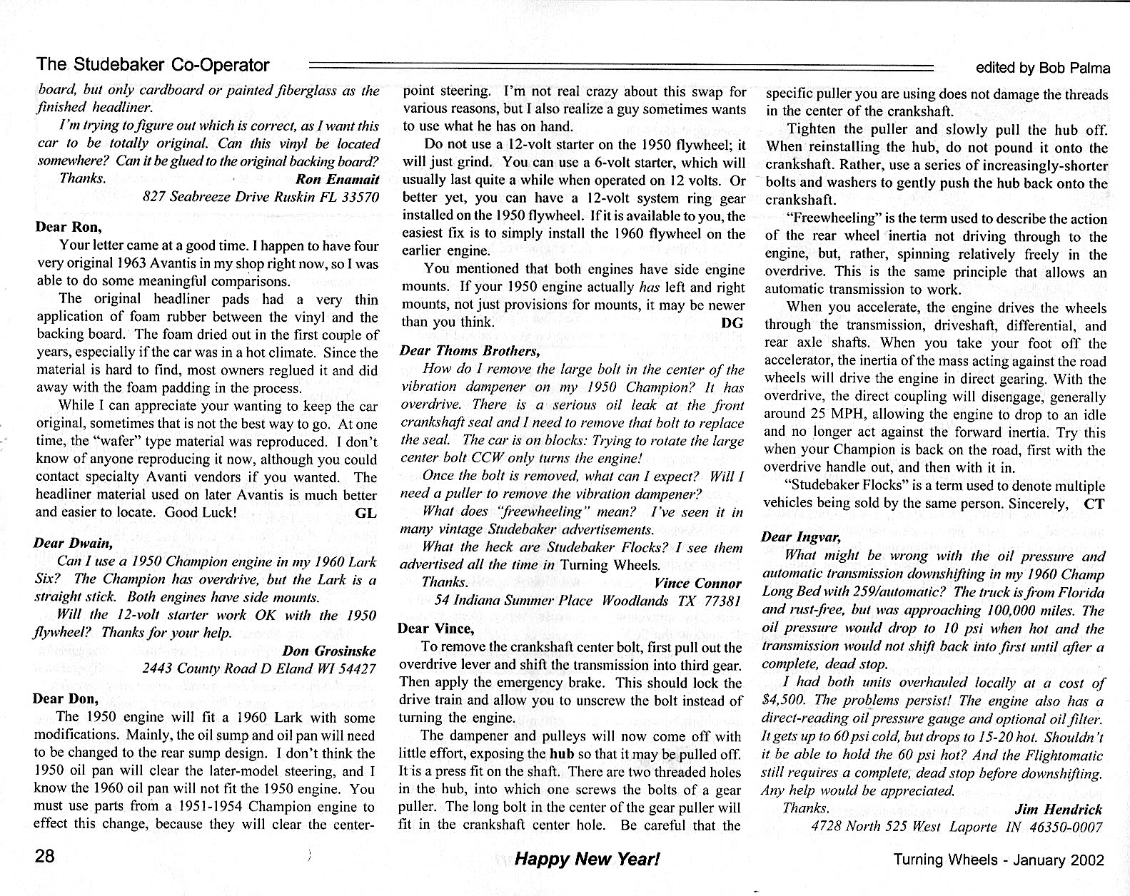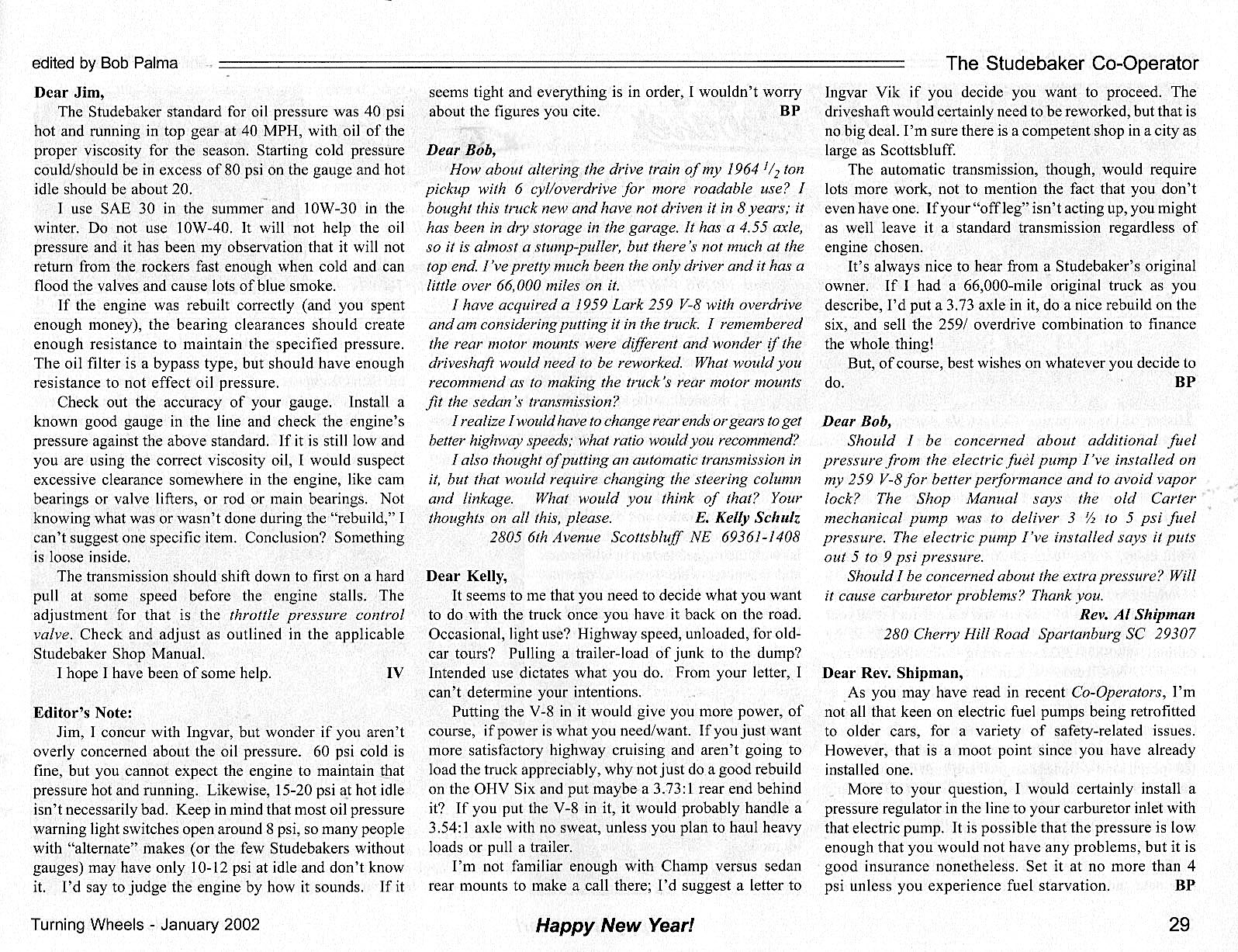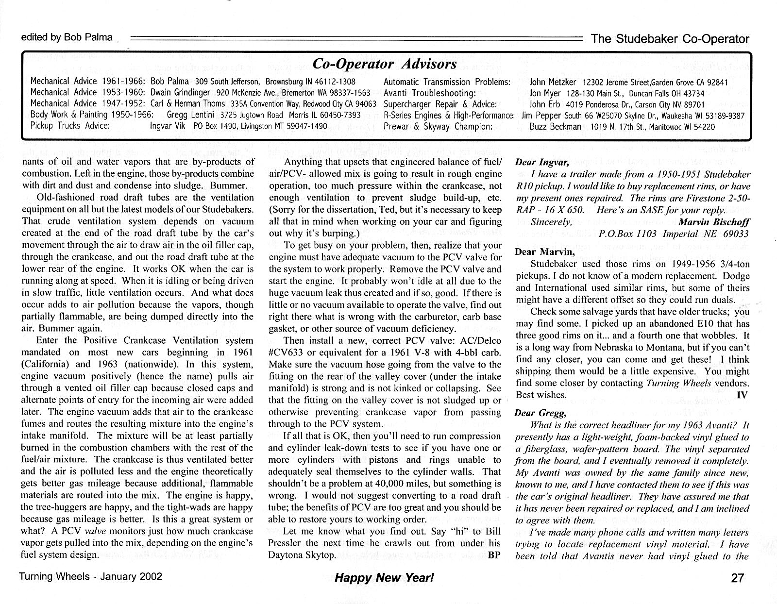Bob's Studebaker Resource Website The Cooperator Turning Wheels, January 2002