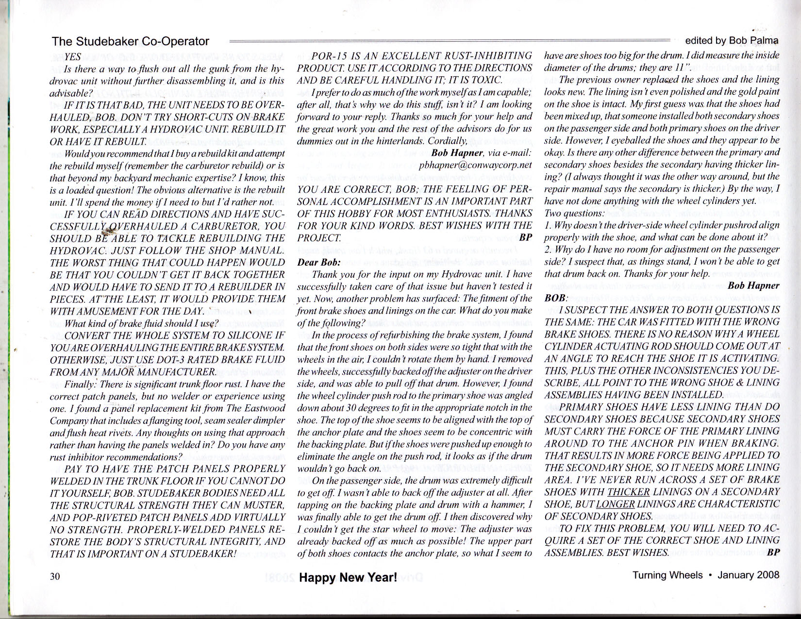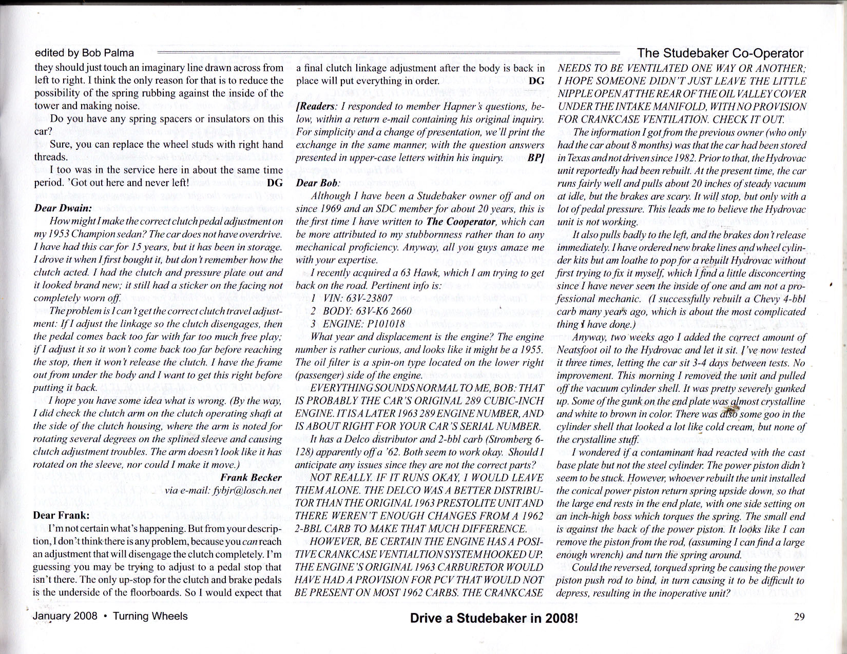 Bob's Studebaker Resource Website Cooperator Turning Wheels, January 2008