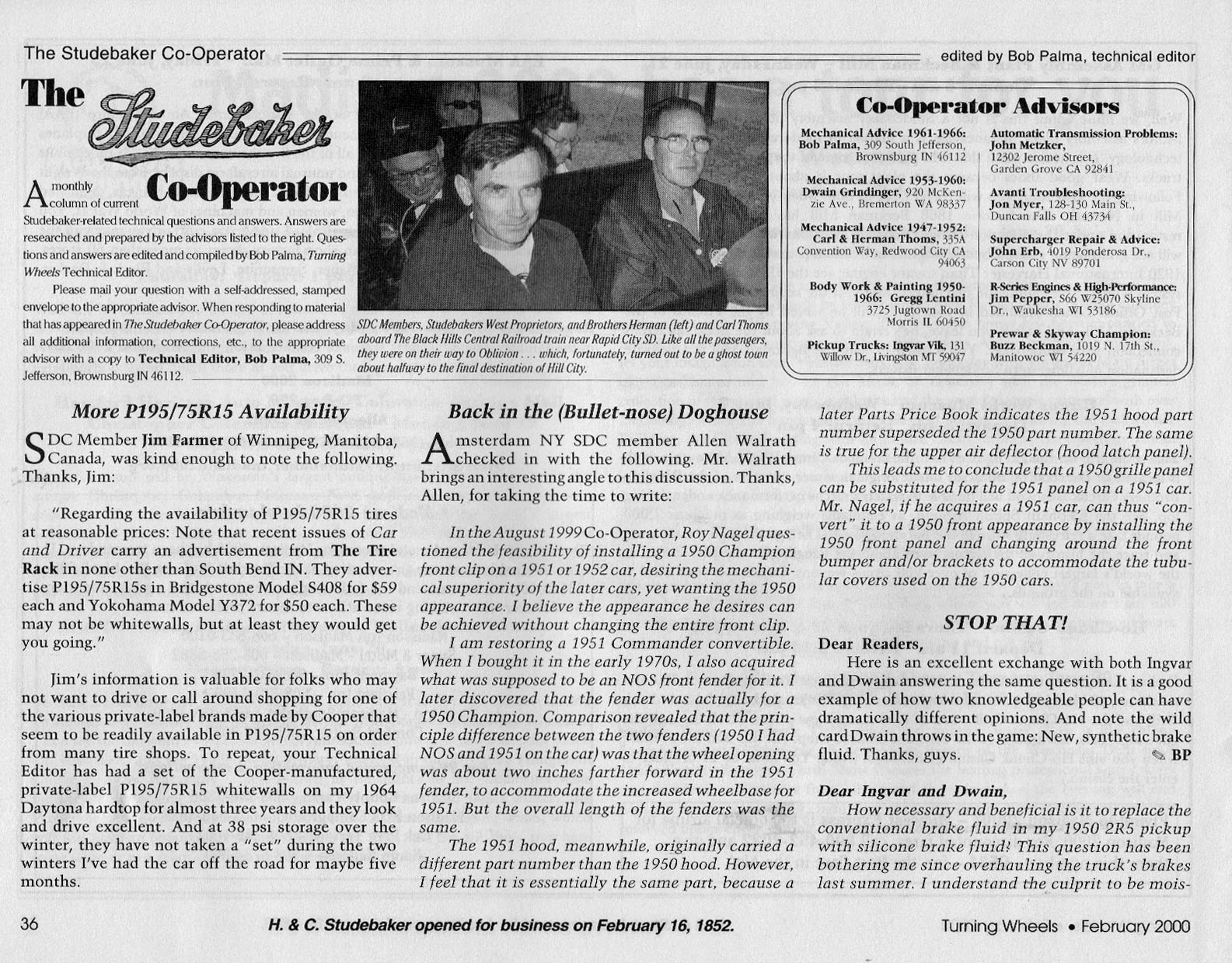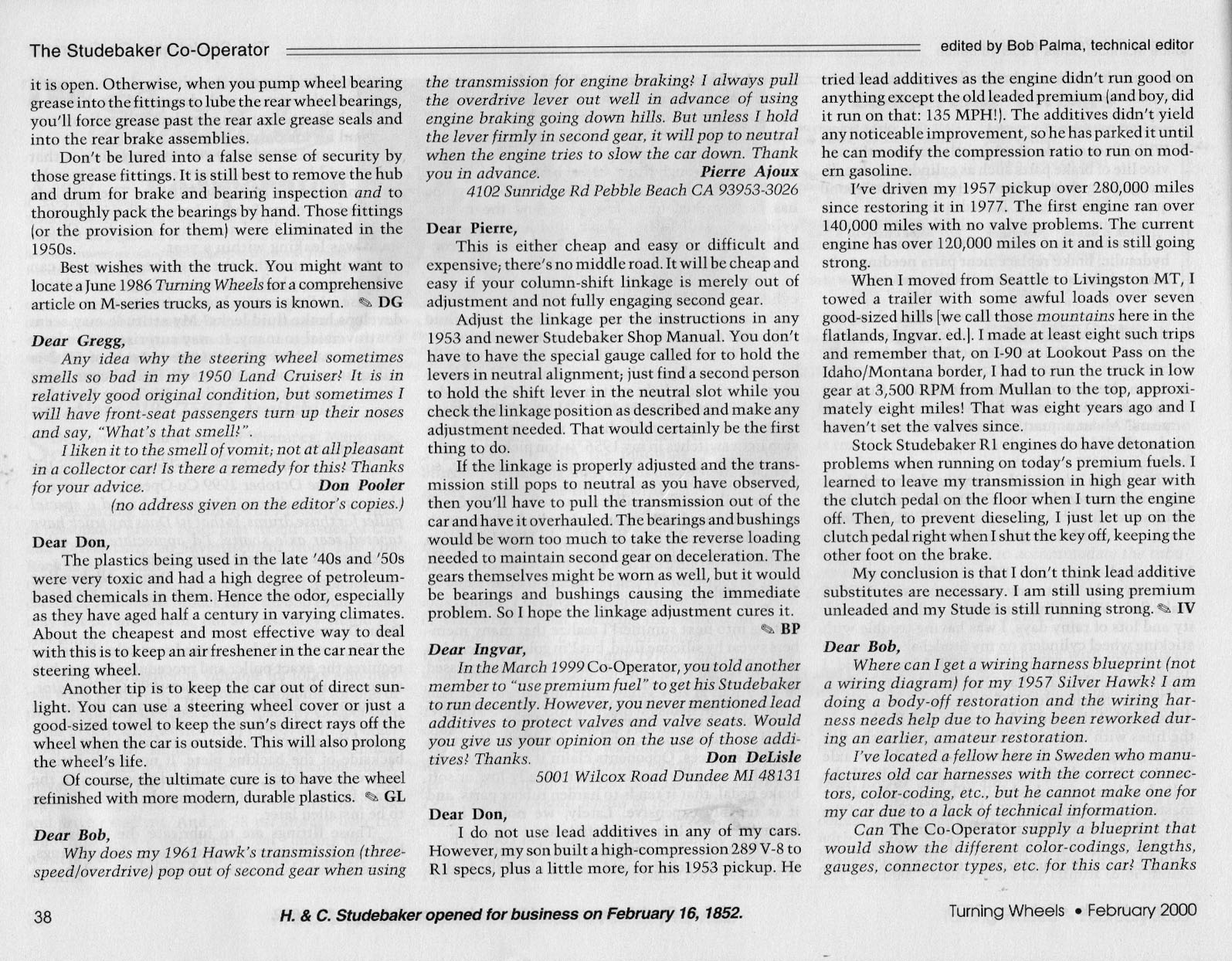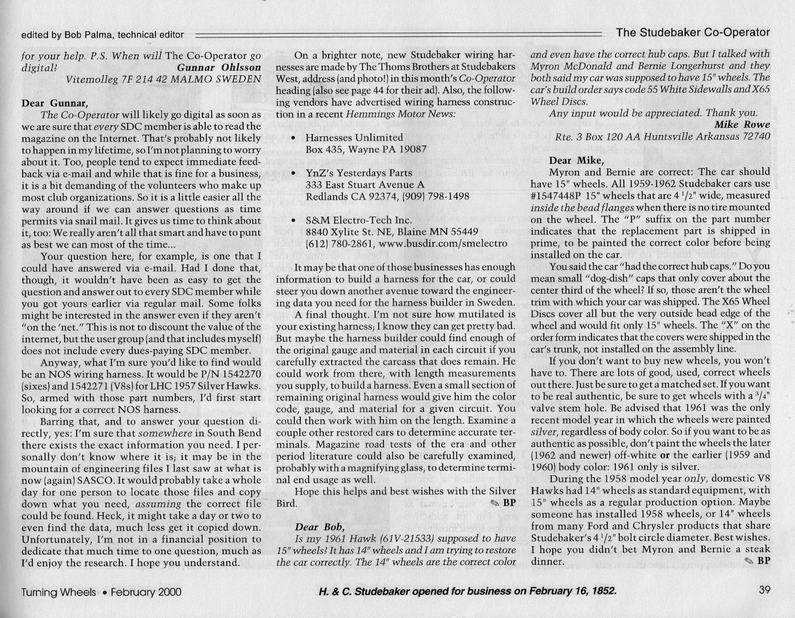 Bob's Studebaker Resource Website The Cooperator Turning Wheels, February 2000