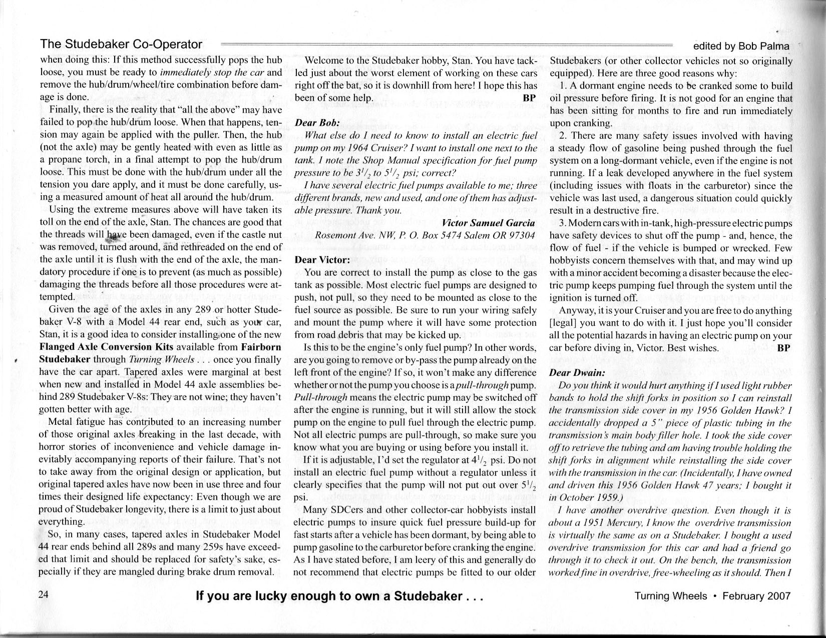 Bob's Studebaker Resource Website Cooperator Turning Wheels, February 2007