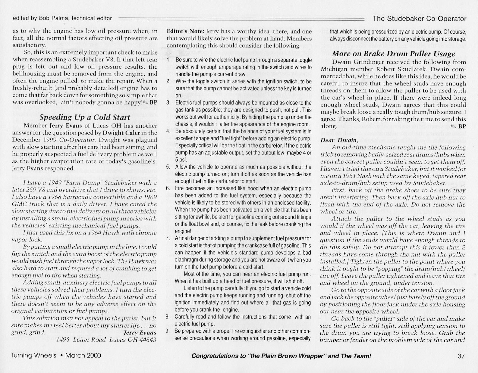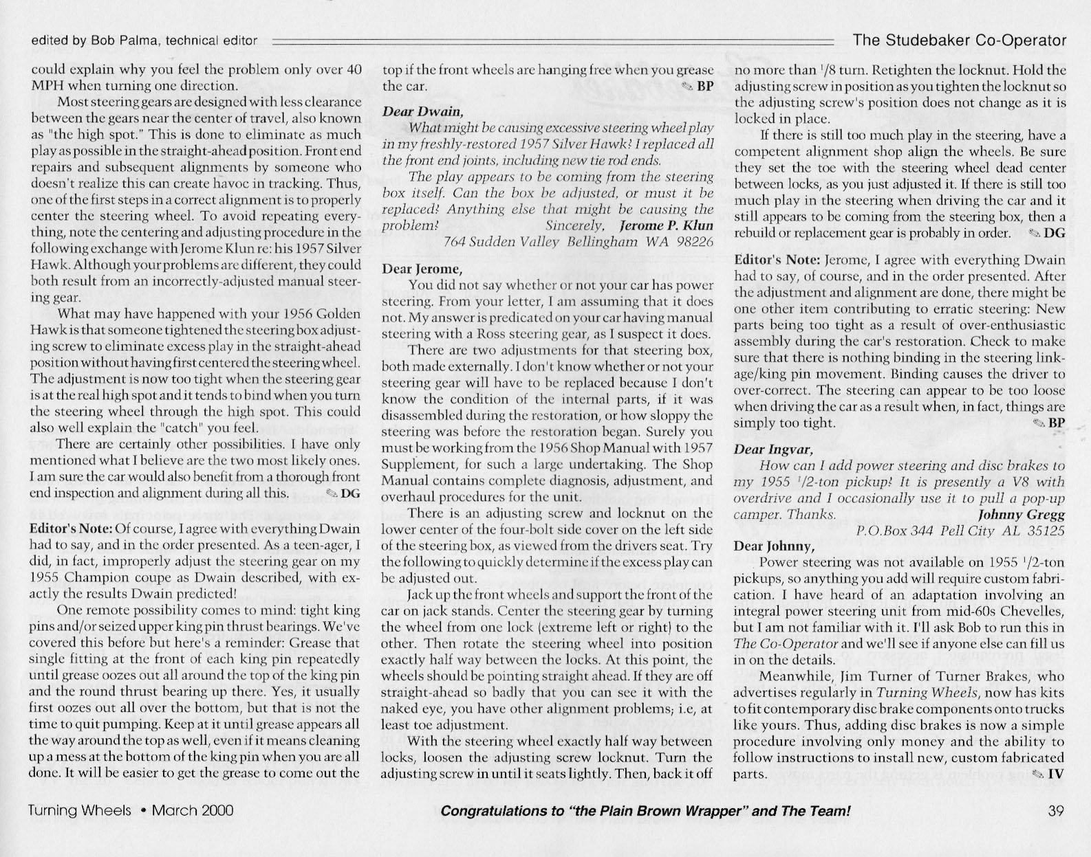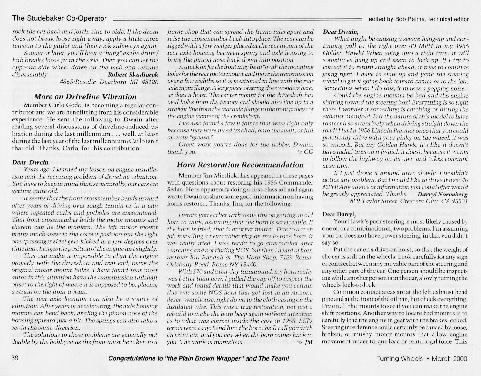 Bob's Studebaker Resource Website The Cooperator Turning Wheels, March 2000