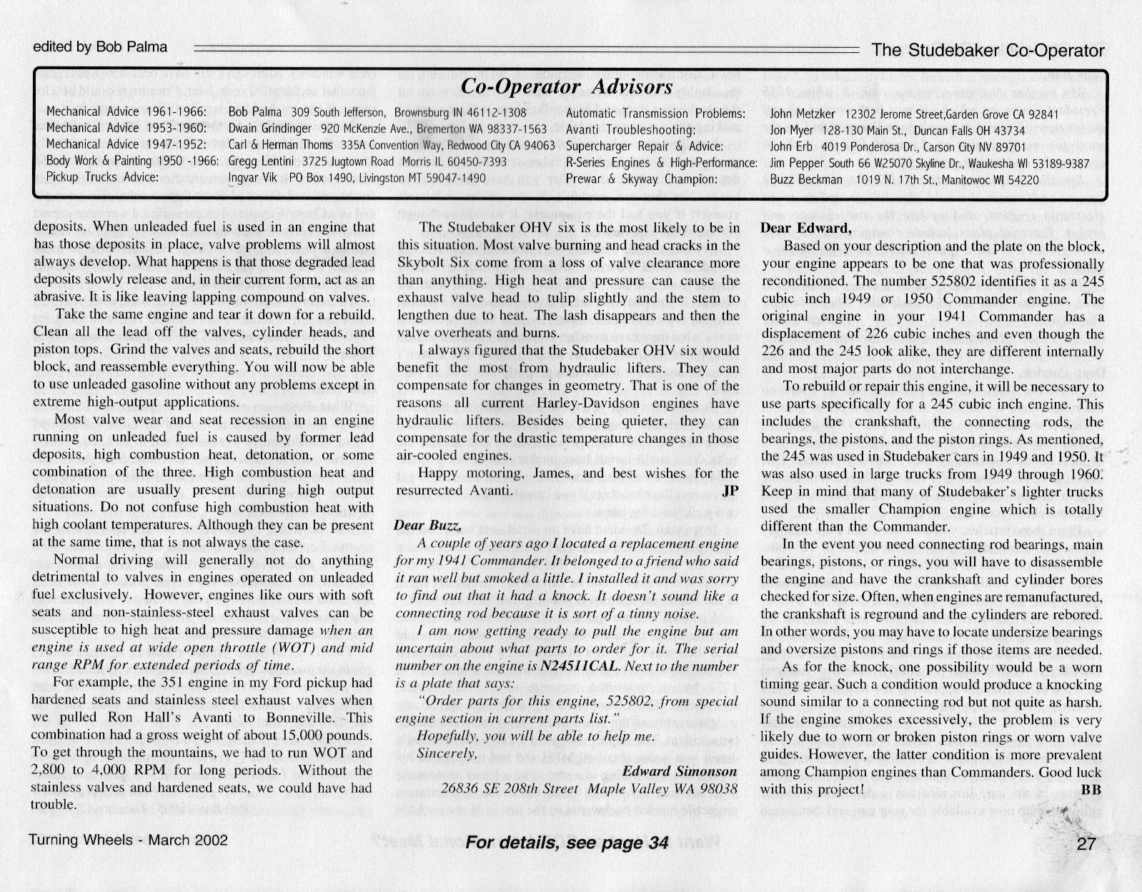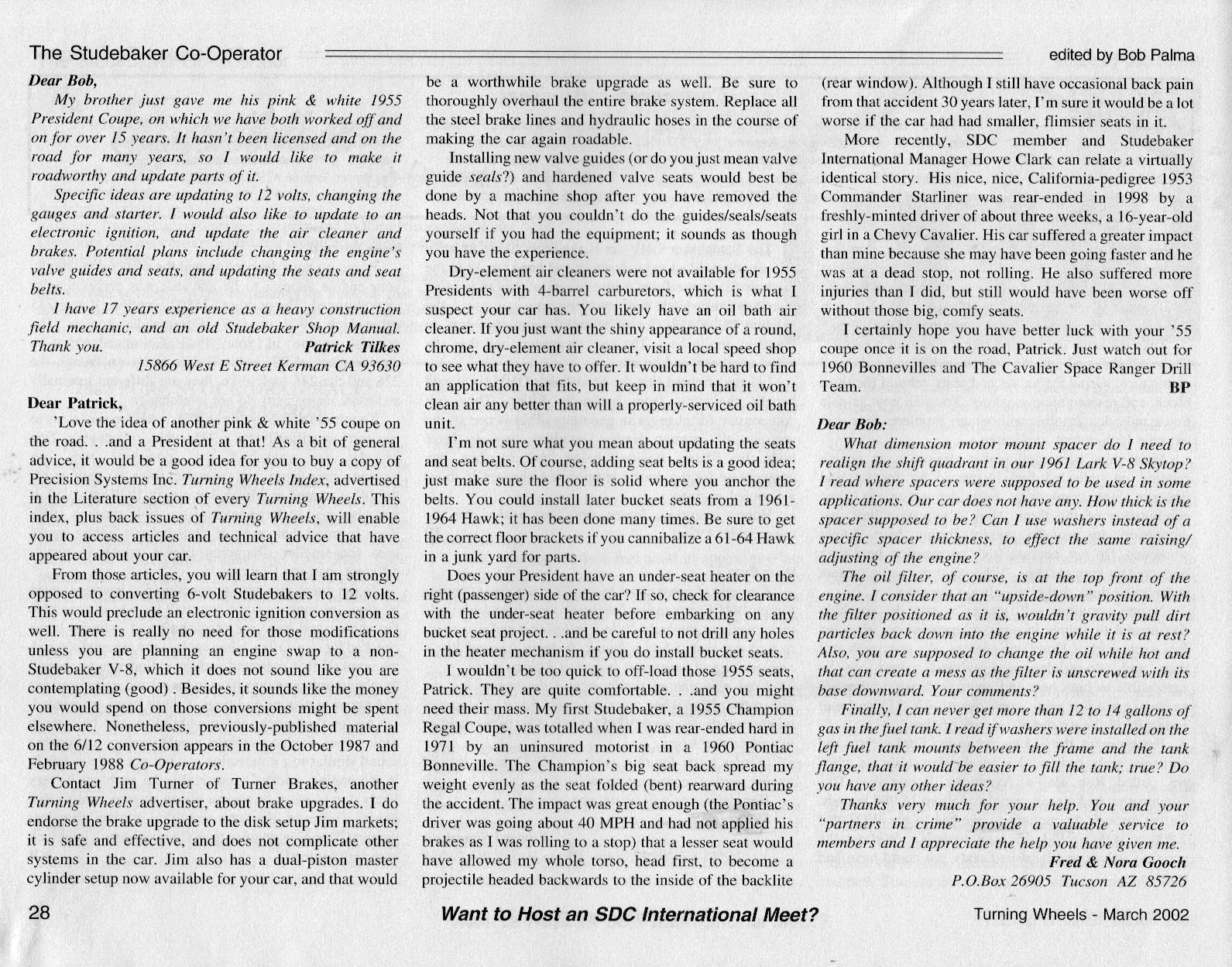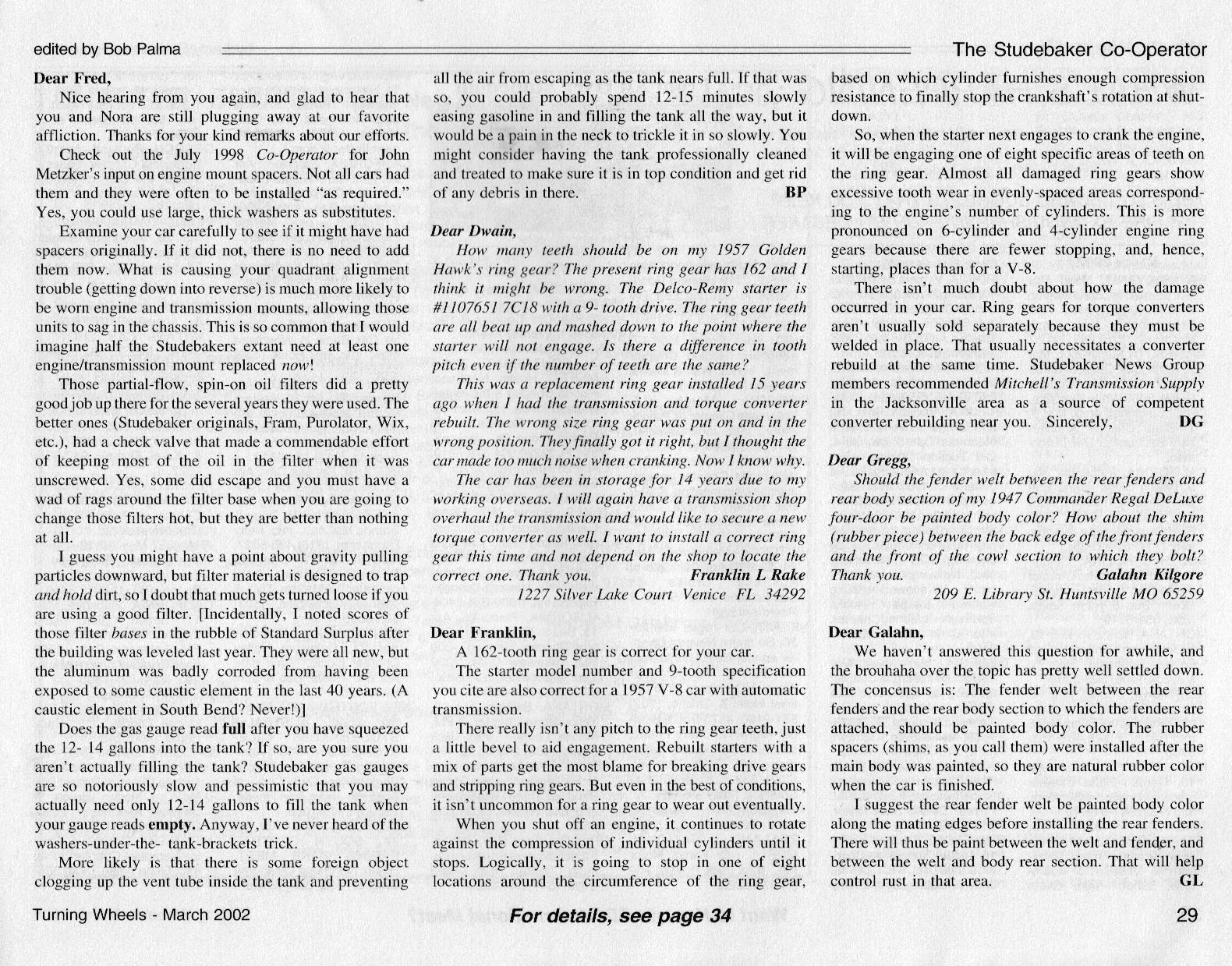 Bob's Studebaker Resource Website The Cooperator Turning Wheels, March 2002