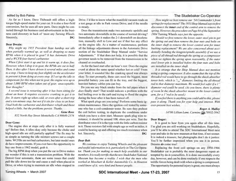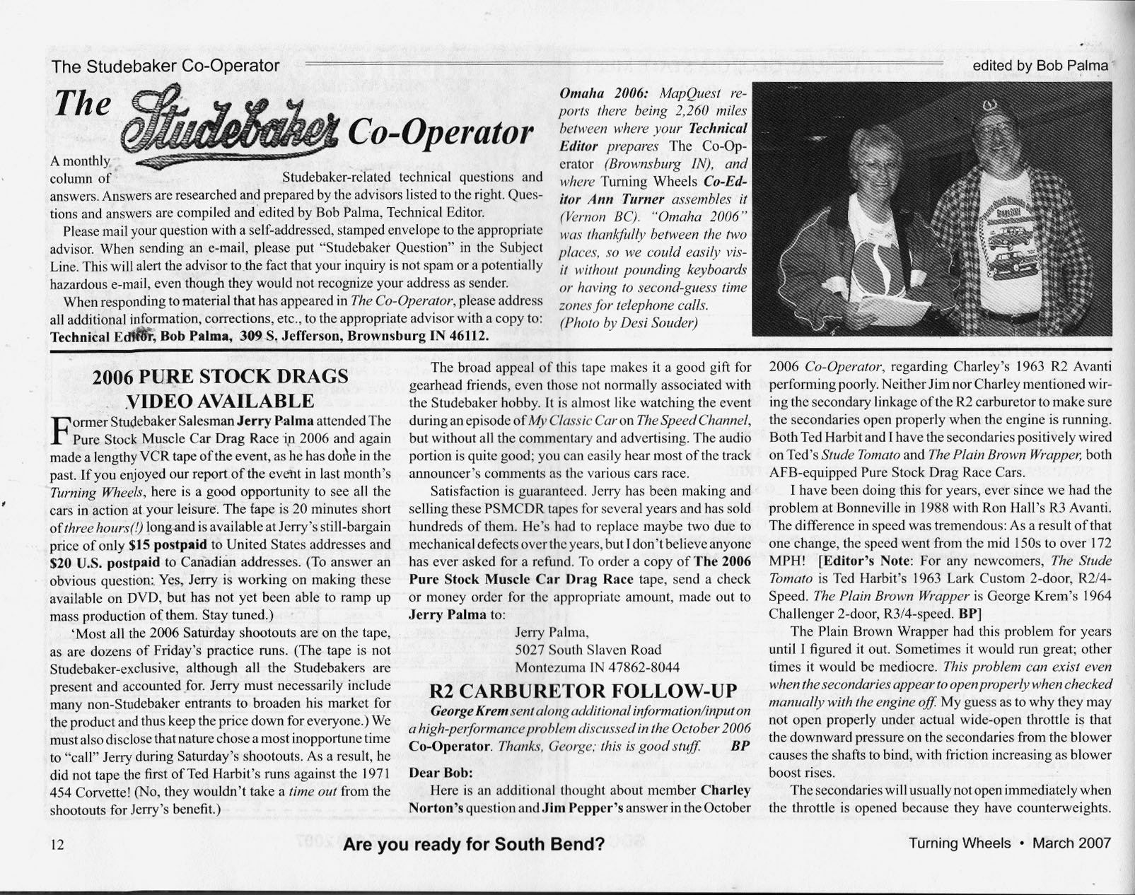 Bob's Studebaker Resource Website Cooperator Turning Wheels, March 2007