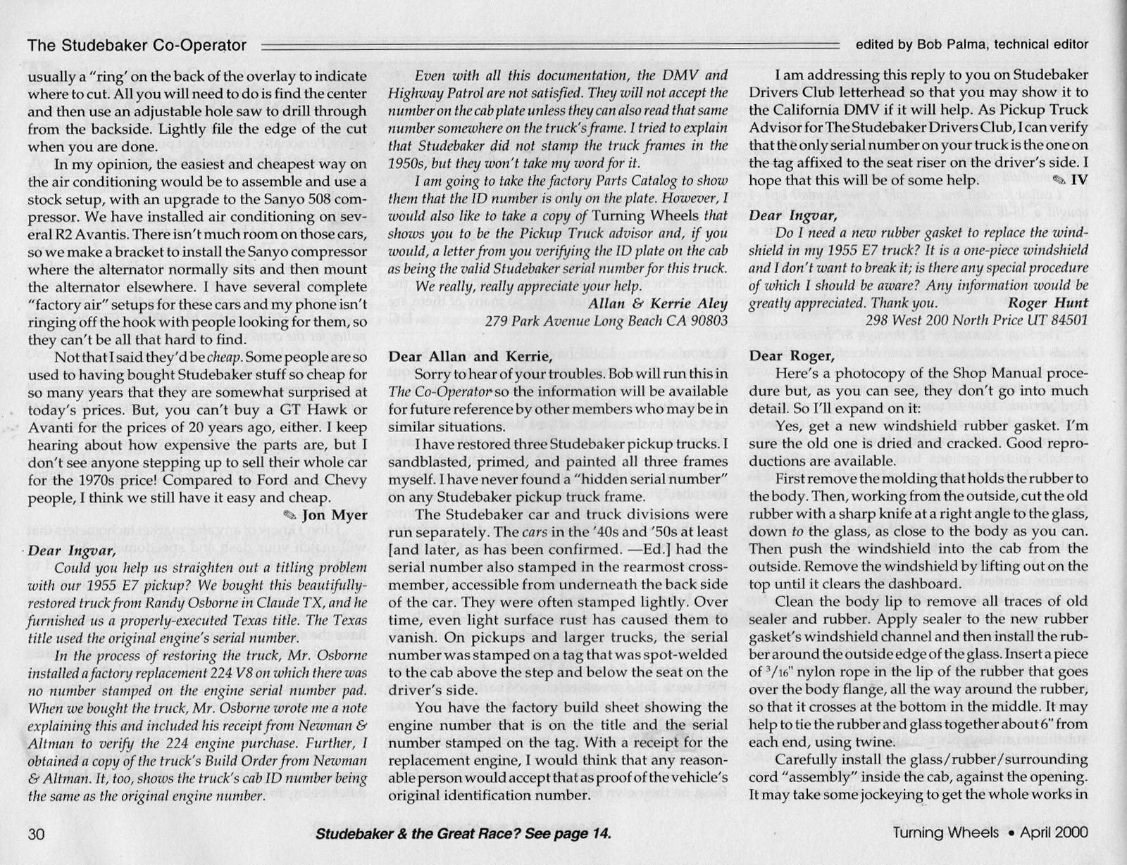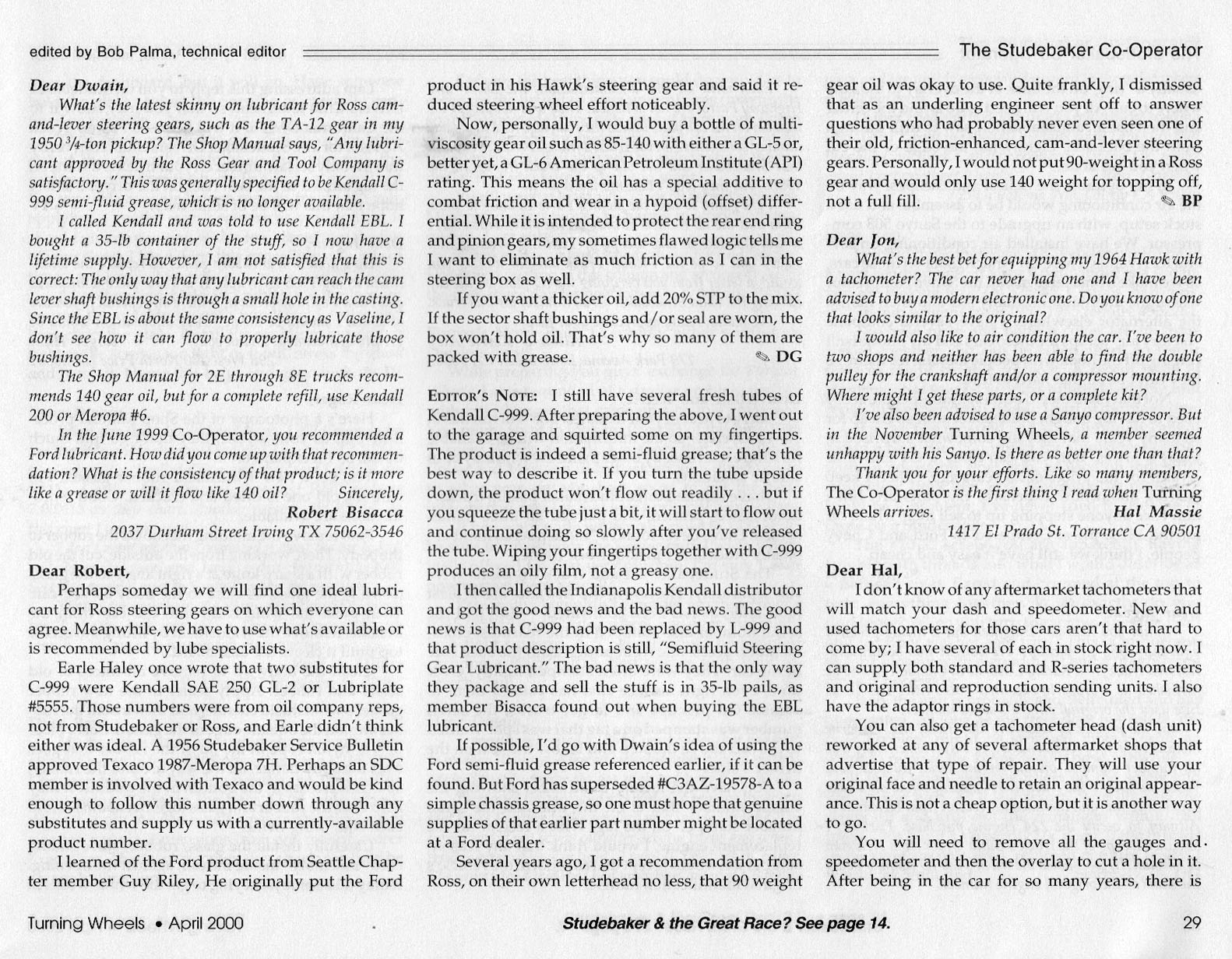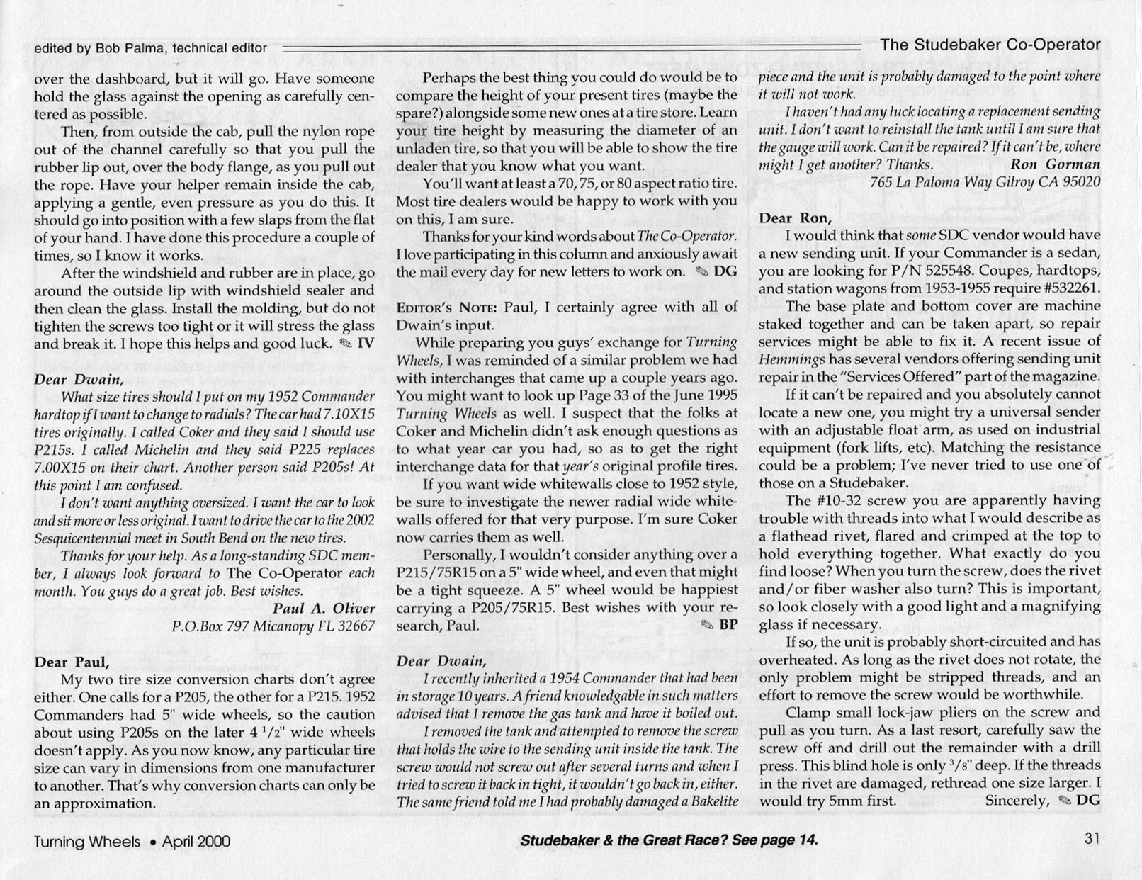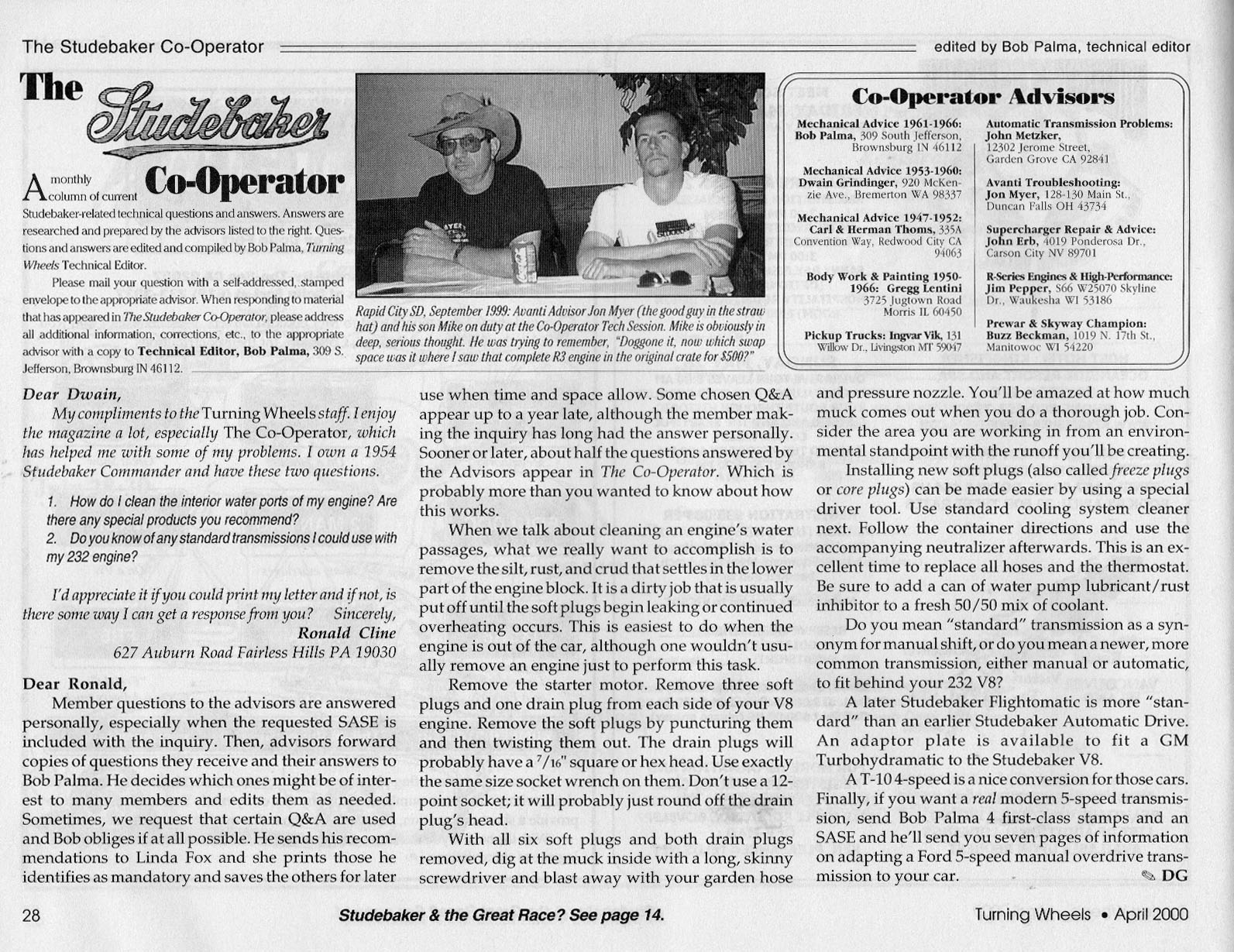 Bob's Studebaker Resource Website The Cooperator Turning Wheels, April 2000