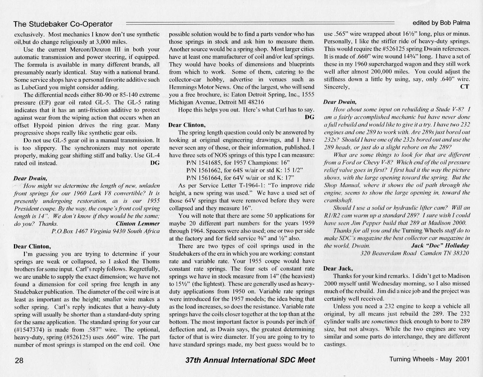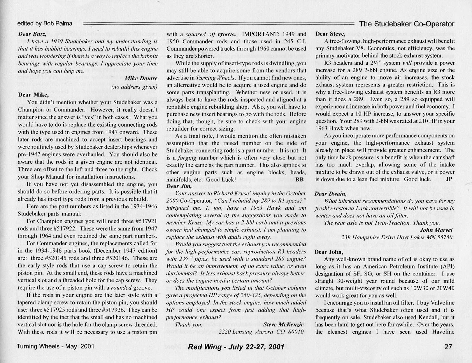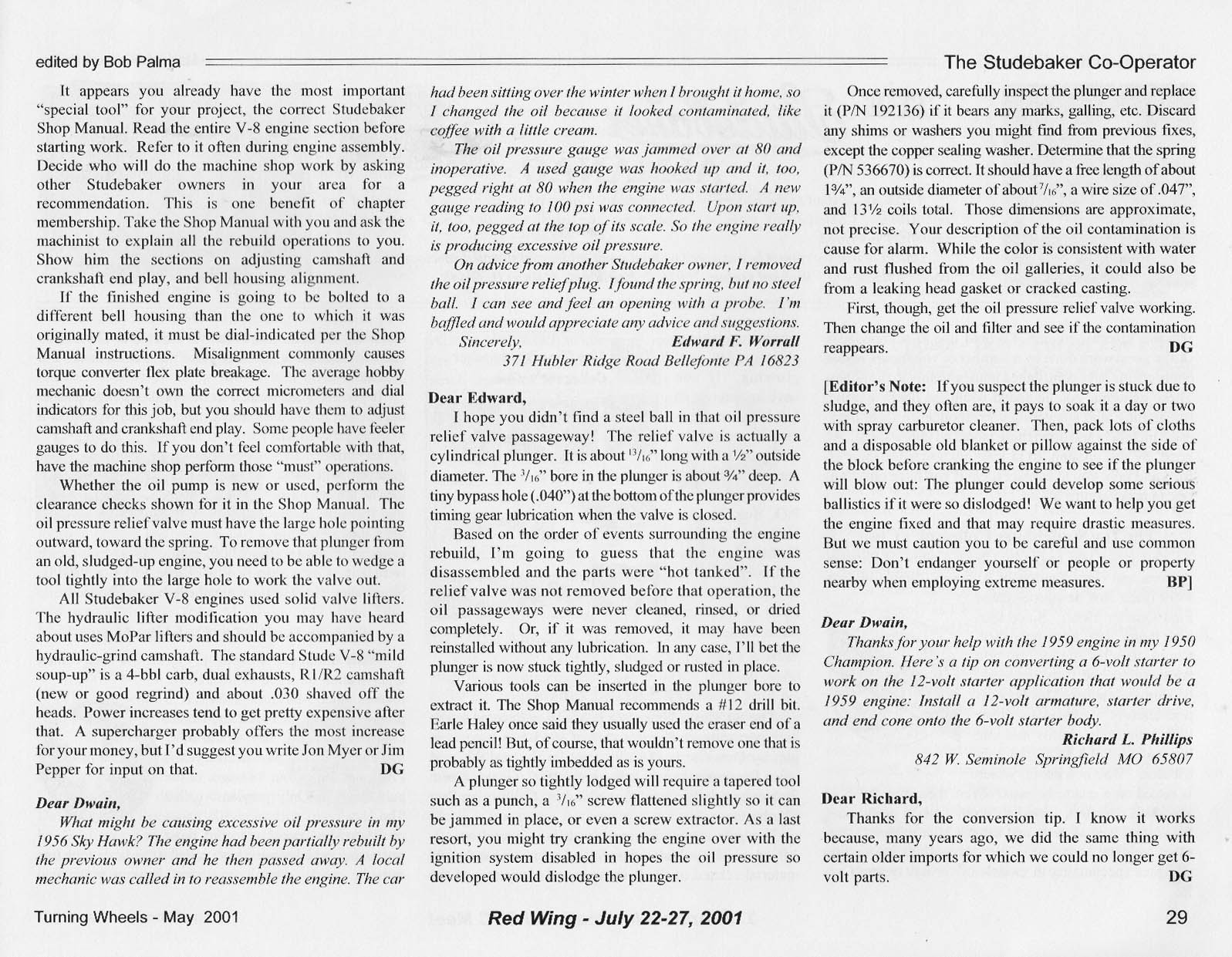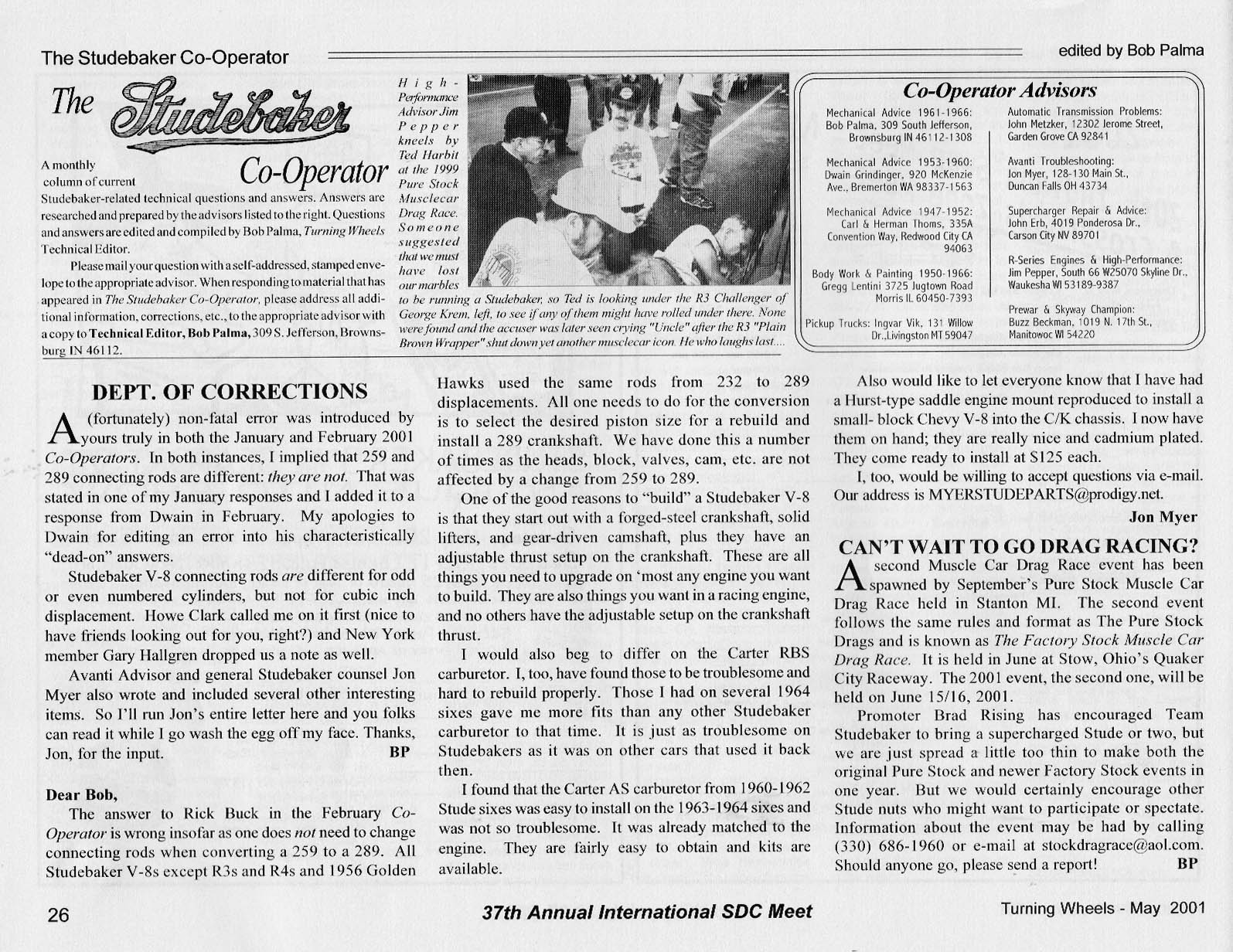Bob's Studebaker Resource Website The Cooperator Turning Wheels, May 2001
