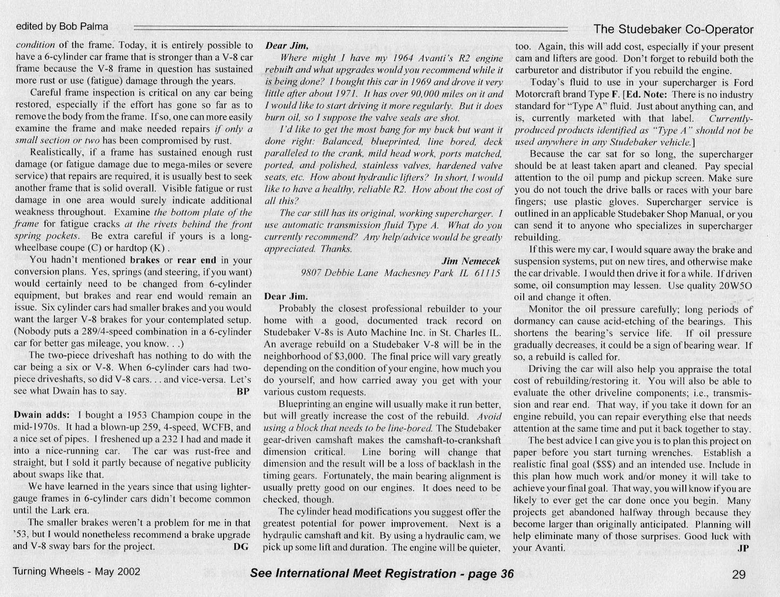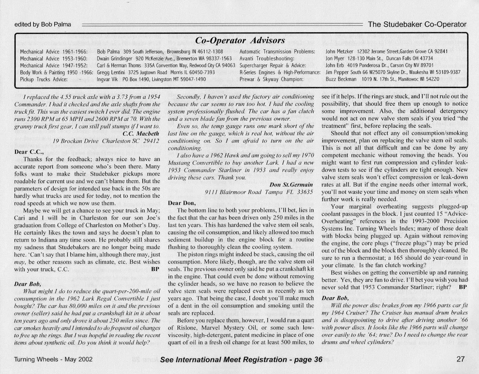 Bob's Studebaker Resource Website The Cooperator Turning Wheels, May 2002