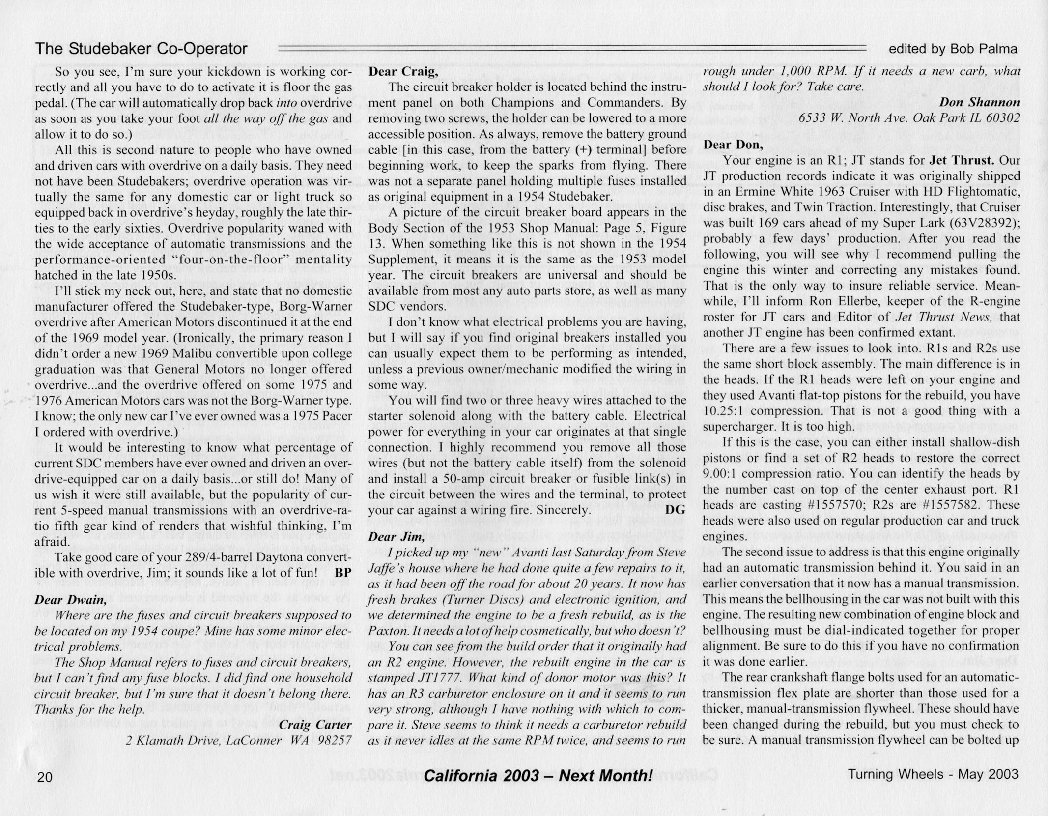 Bob's Studebaker Resource Website The Cooperator Turning Wheels, May 2003