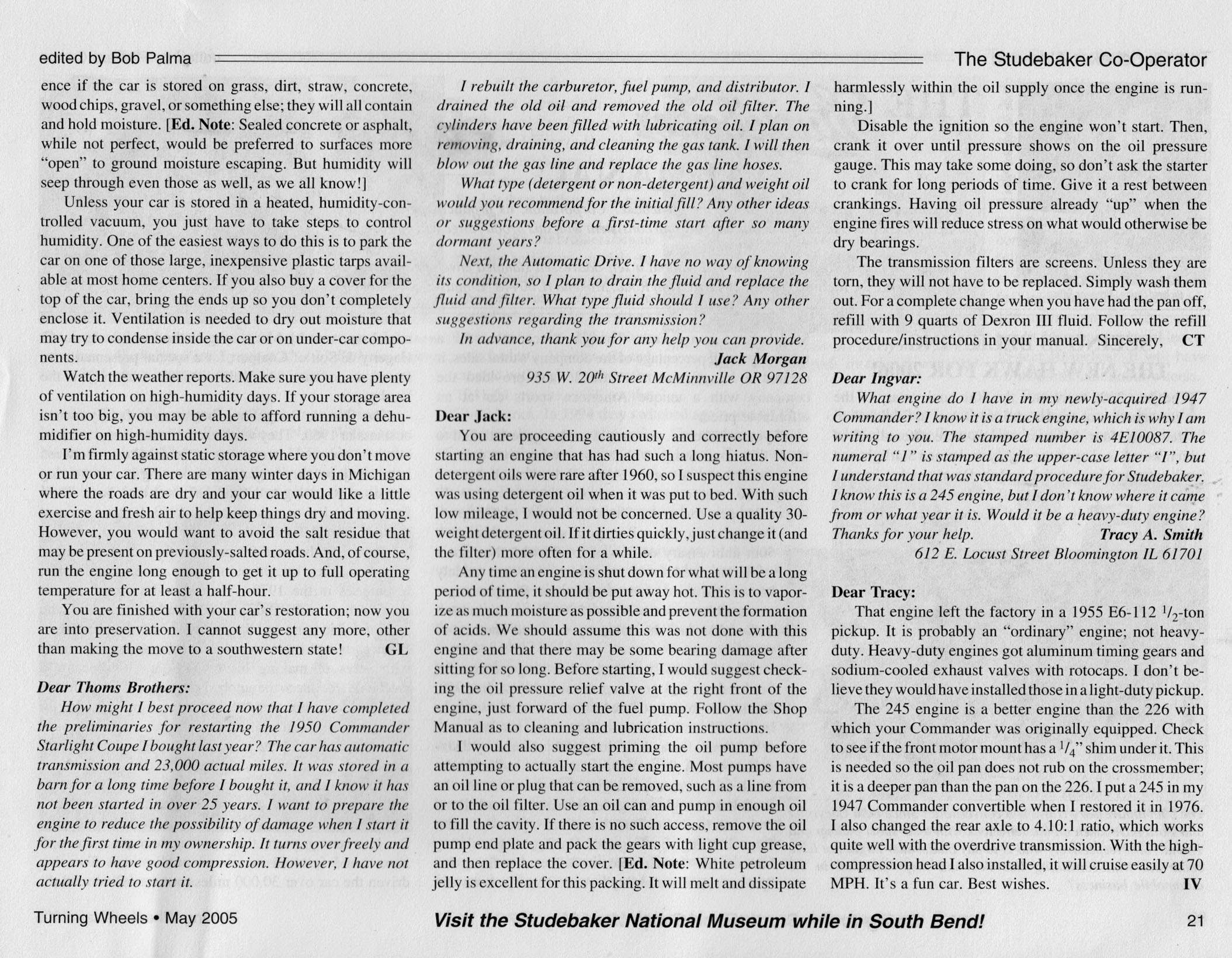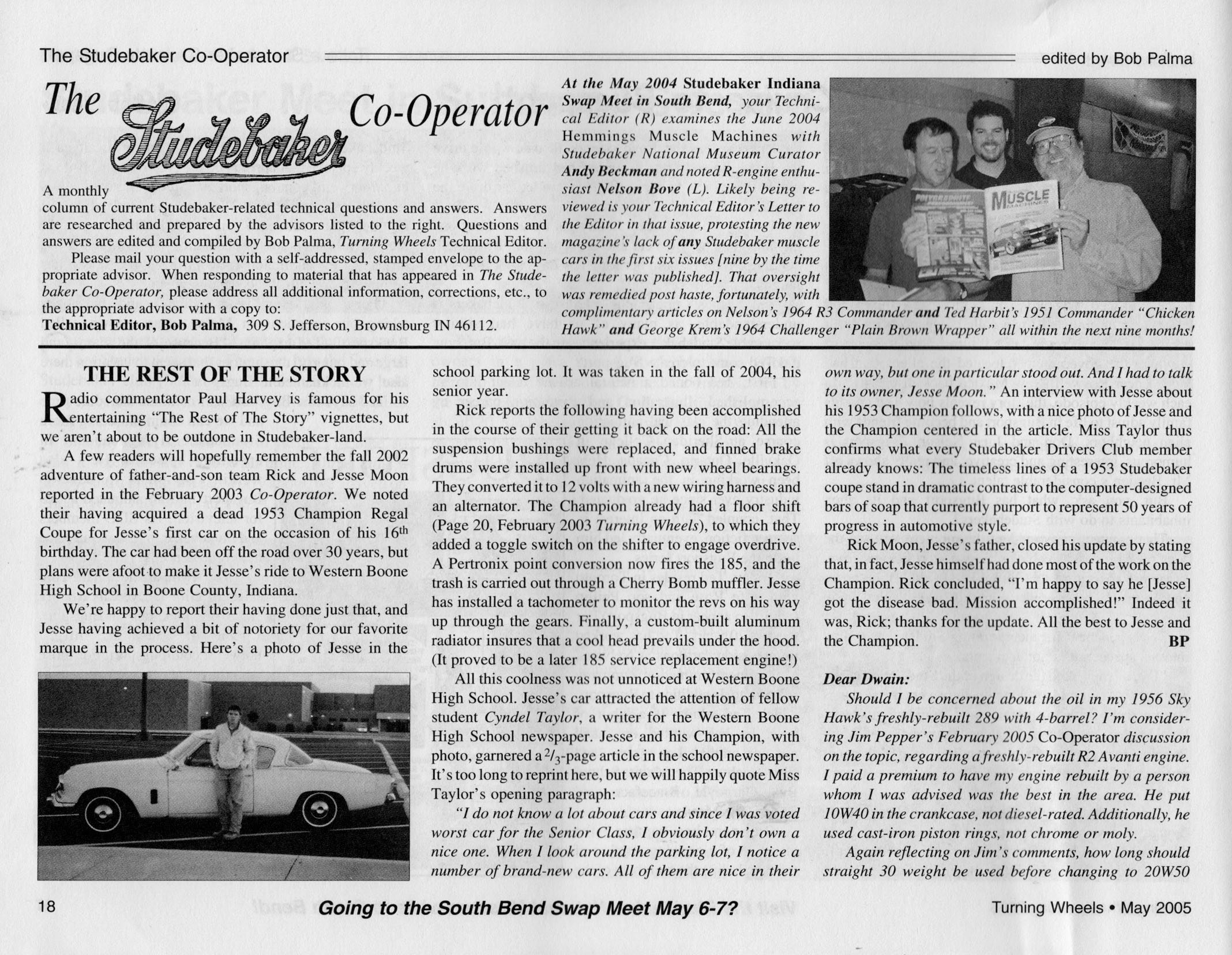 Bob's Studebaker Resource Website The Cooperator Turning Wheels, May
