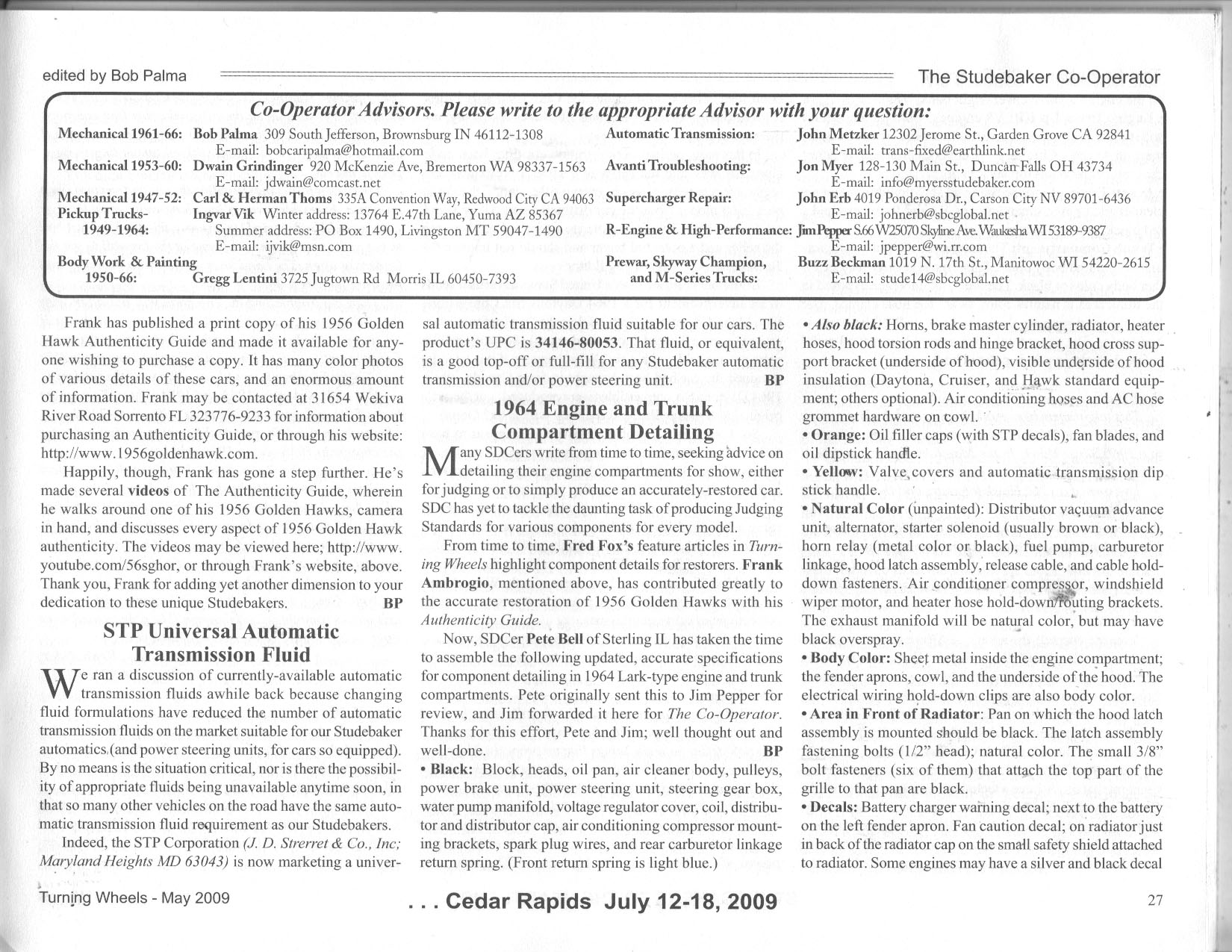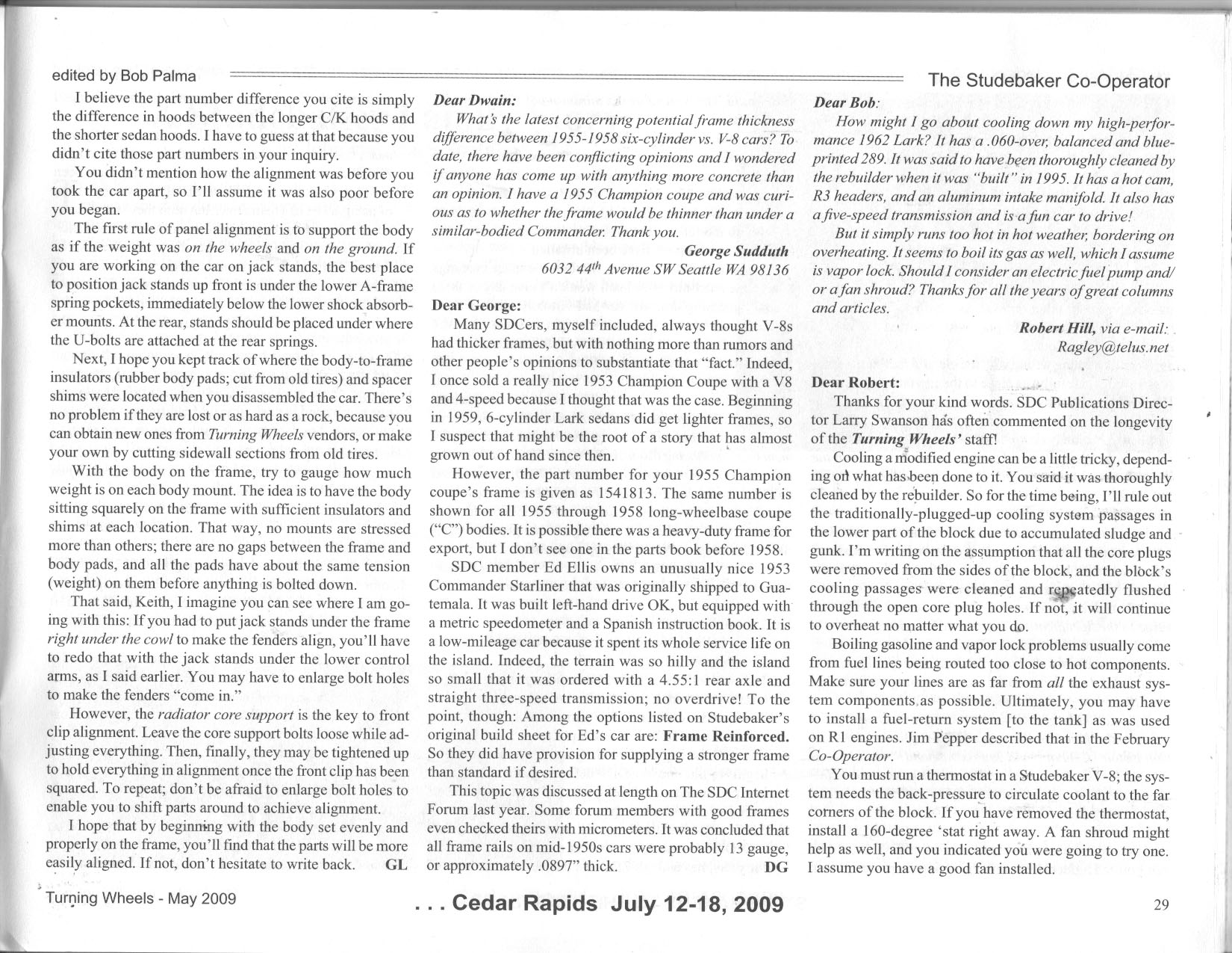 Bob's Studebaker Resource Website Cooperator Turning Wheels, May 2009