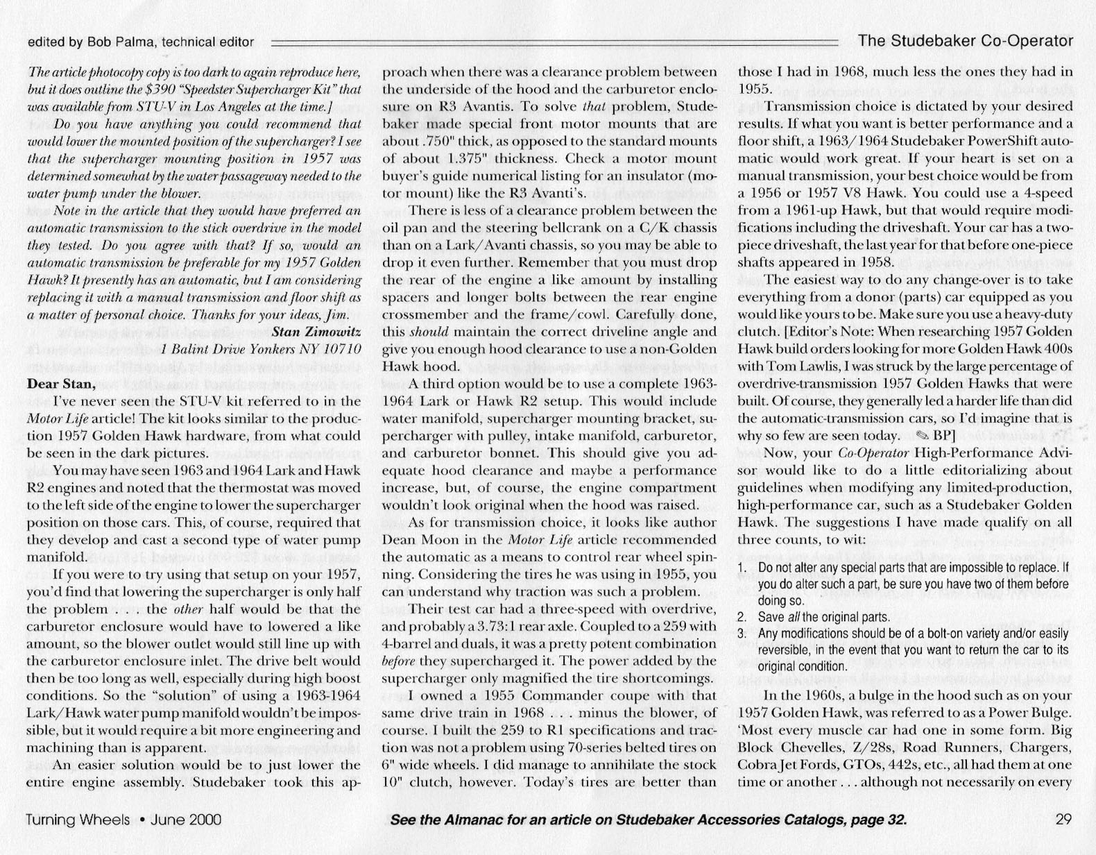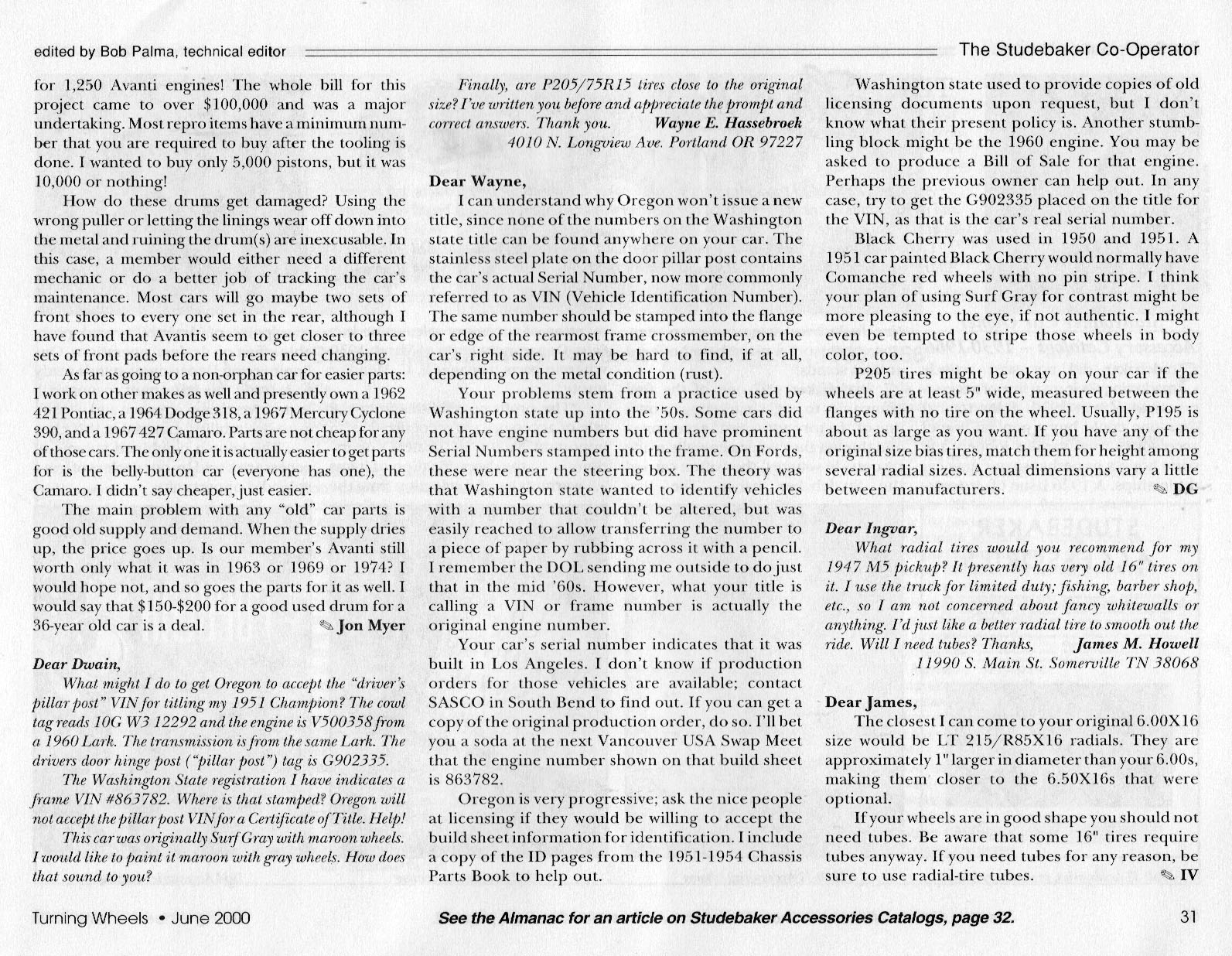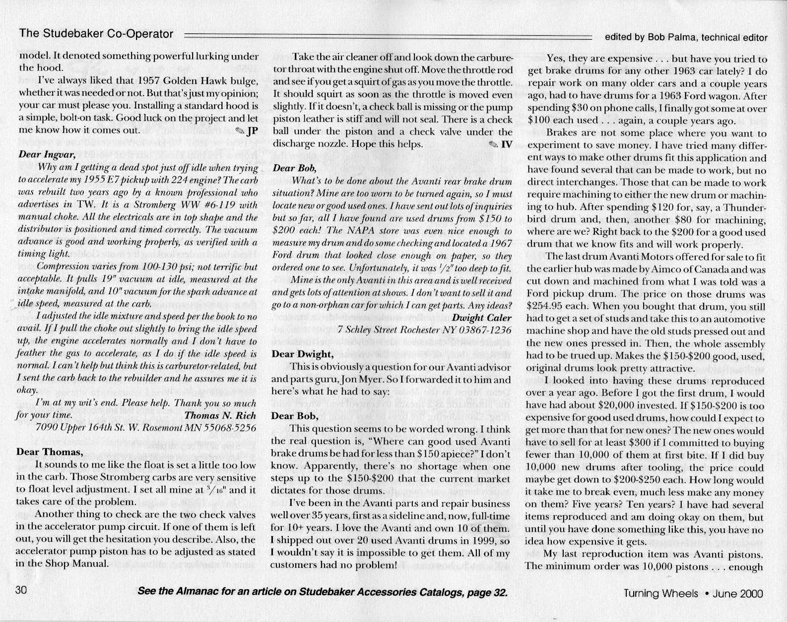Bob's Studebaker Resource Website The Cooperator Turning Wheels, June 2000