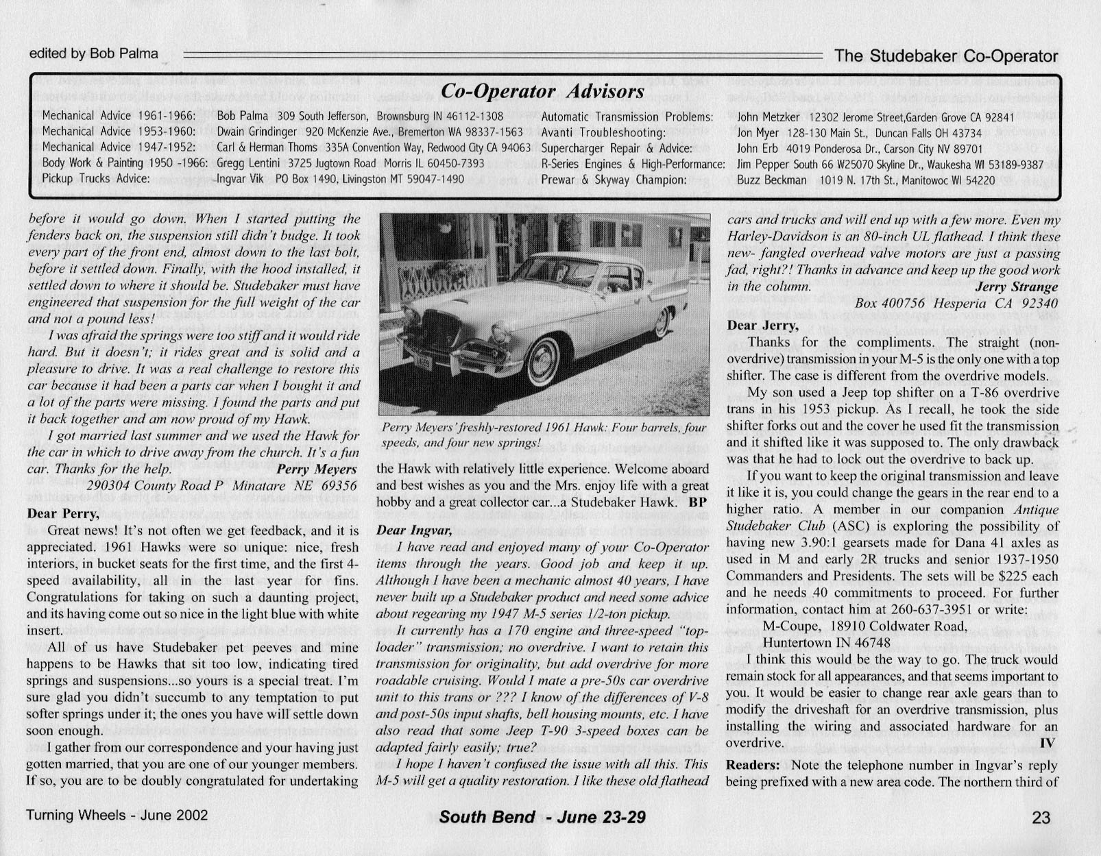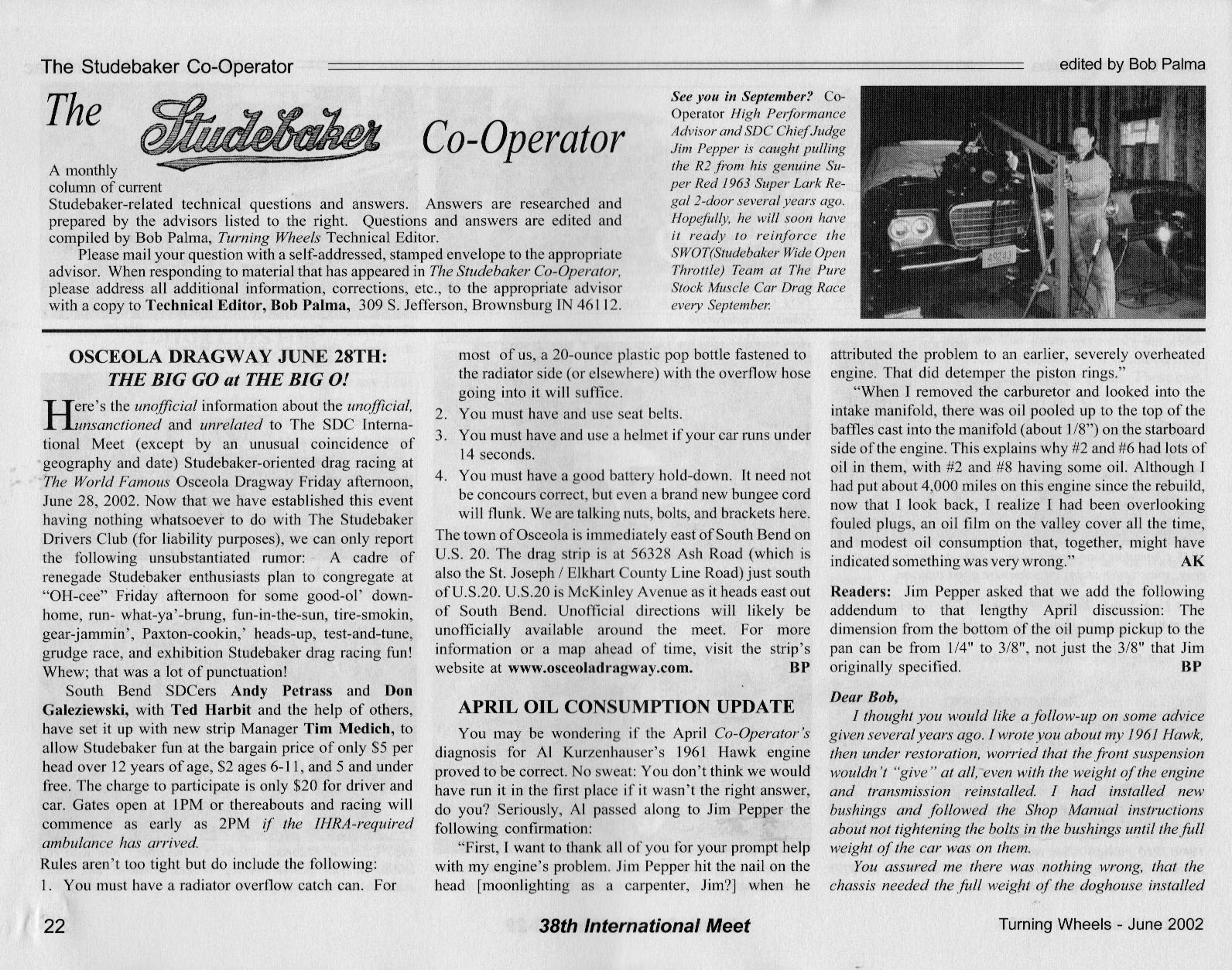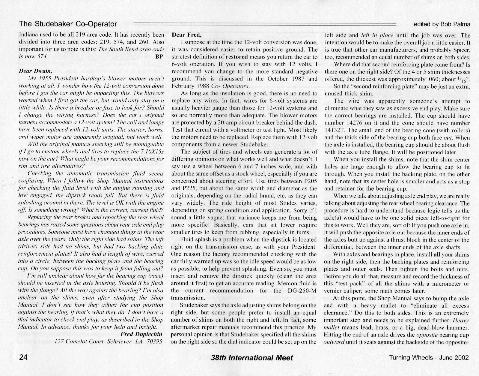 Bob's Studebaker Resource Website The Cooperator Turning Wheels, June 2002