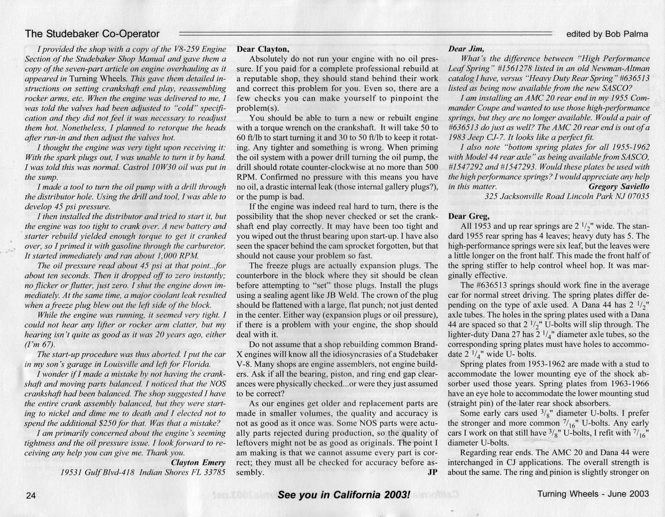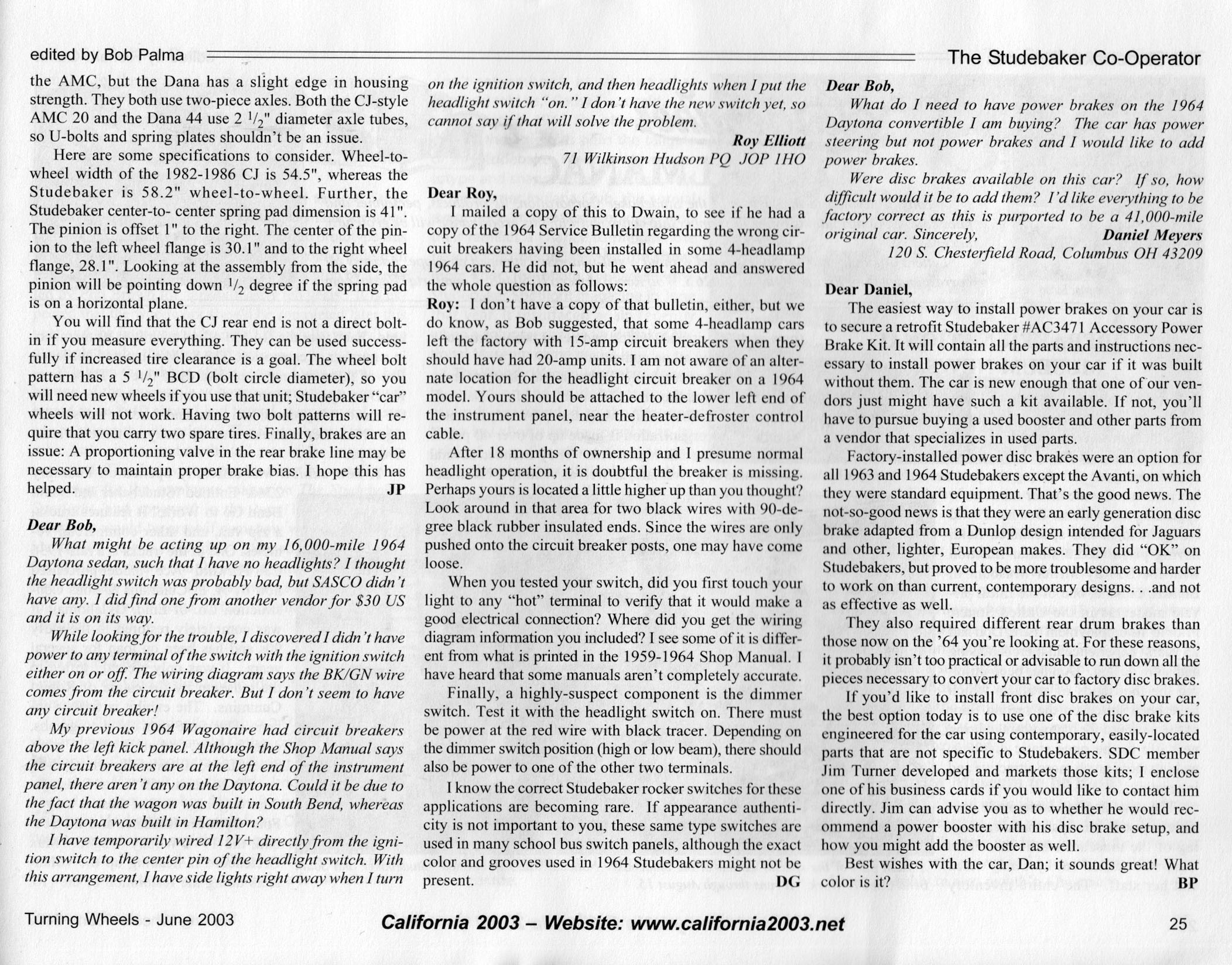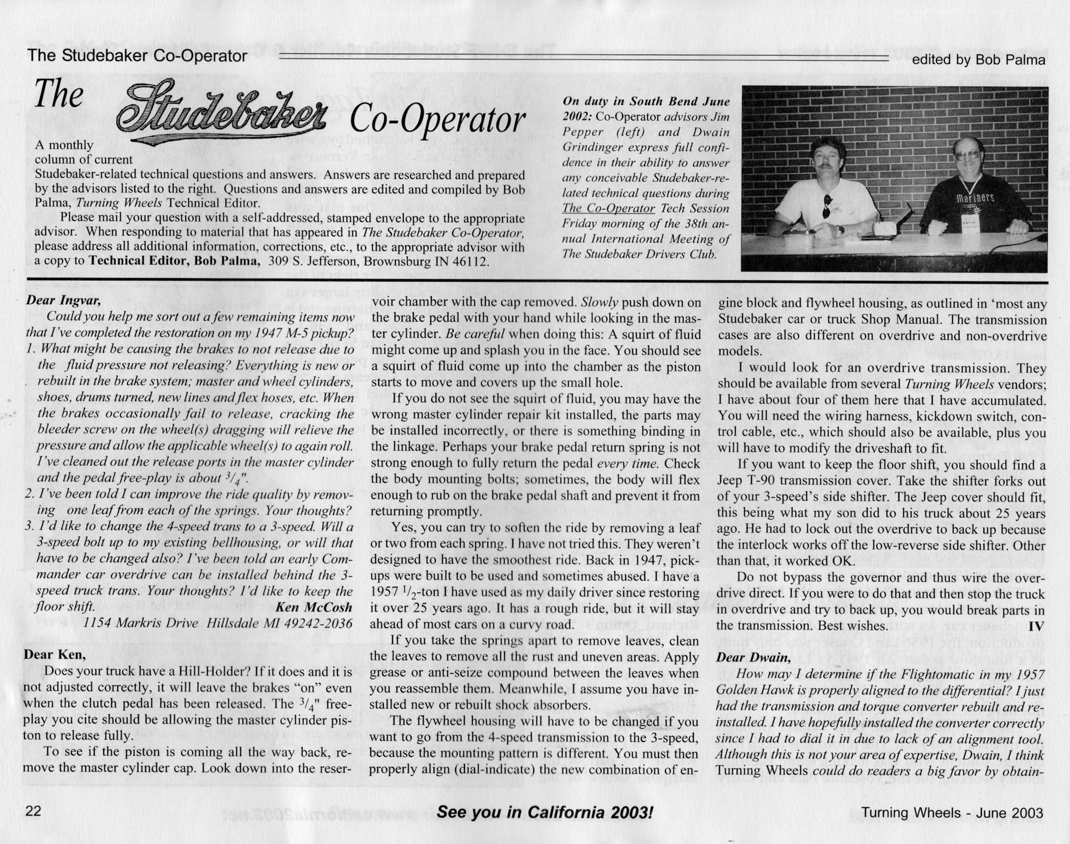 Bob's Studebaker Resource Website The Cooperator Turning Wheels, June 2003