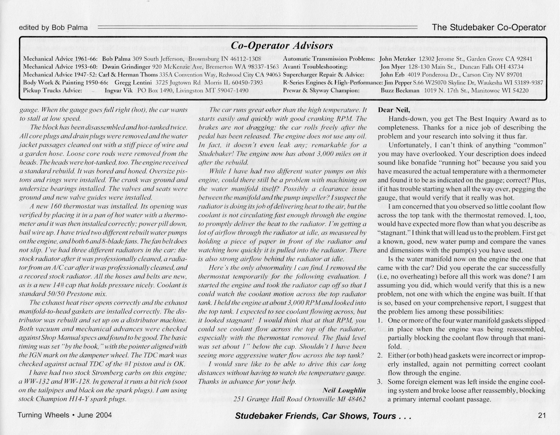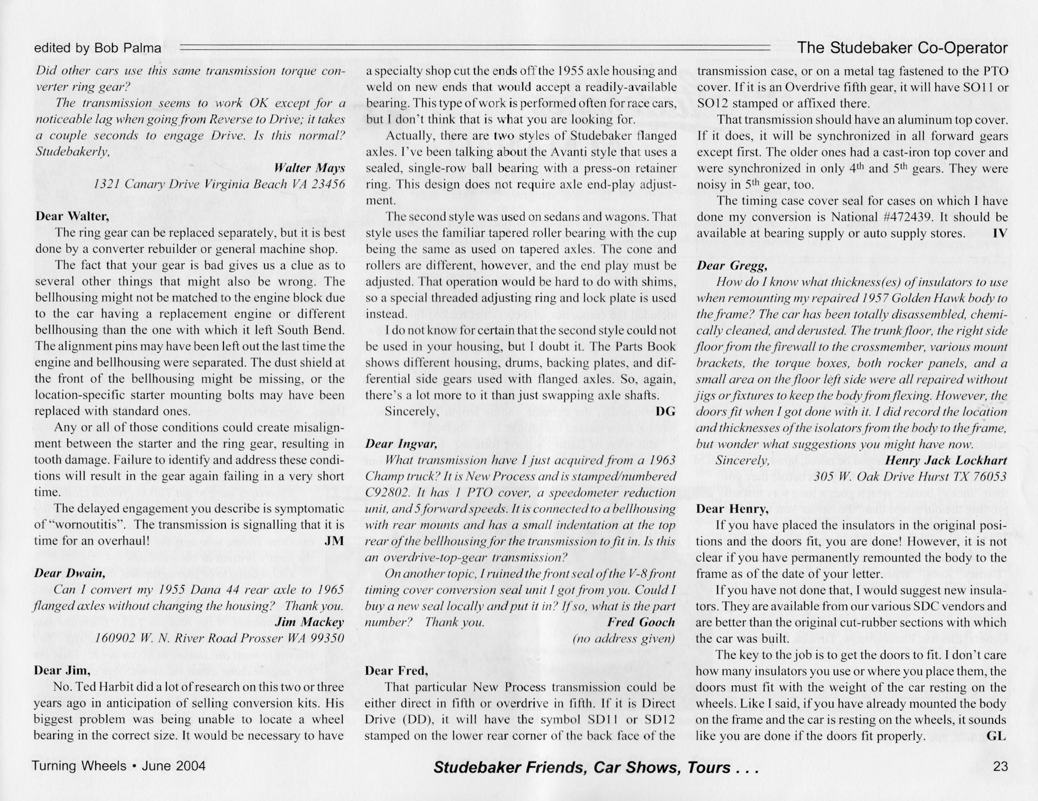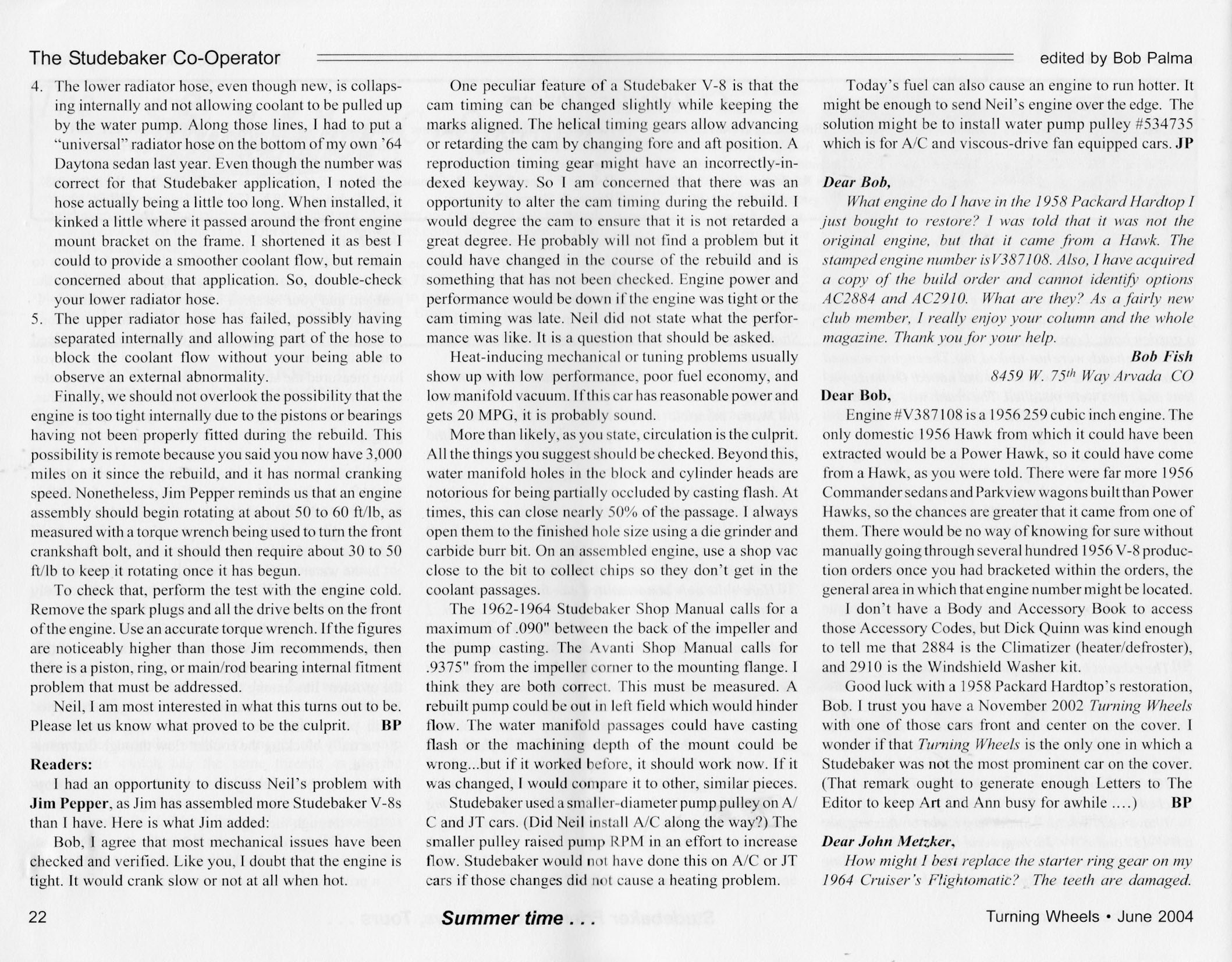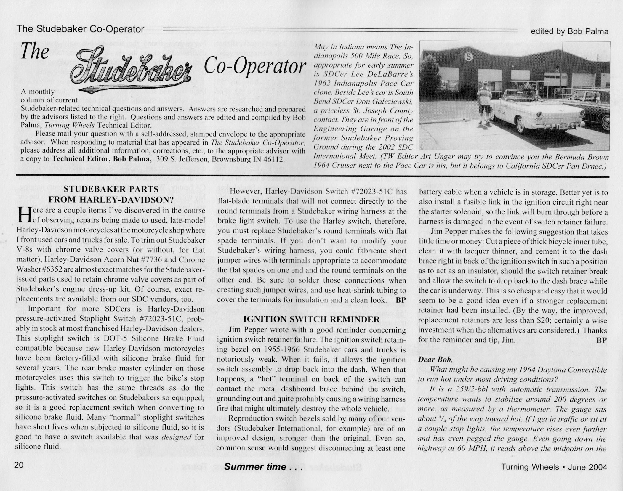 Bob's Studebaker Resource Website The Cooperator Turning Wheels, June 2004