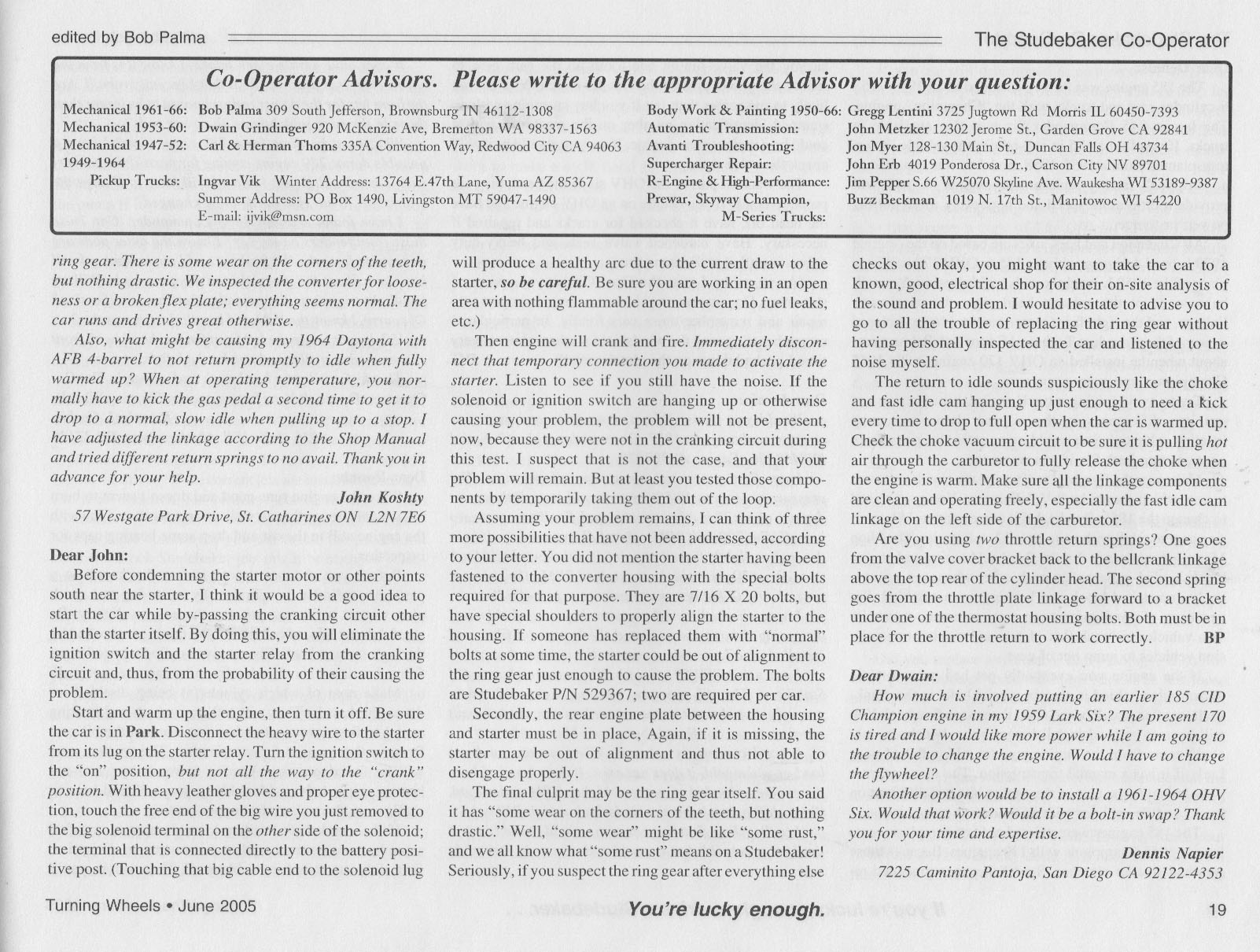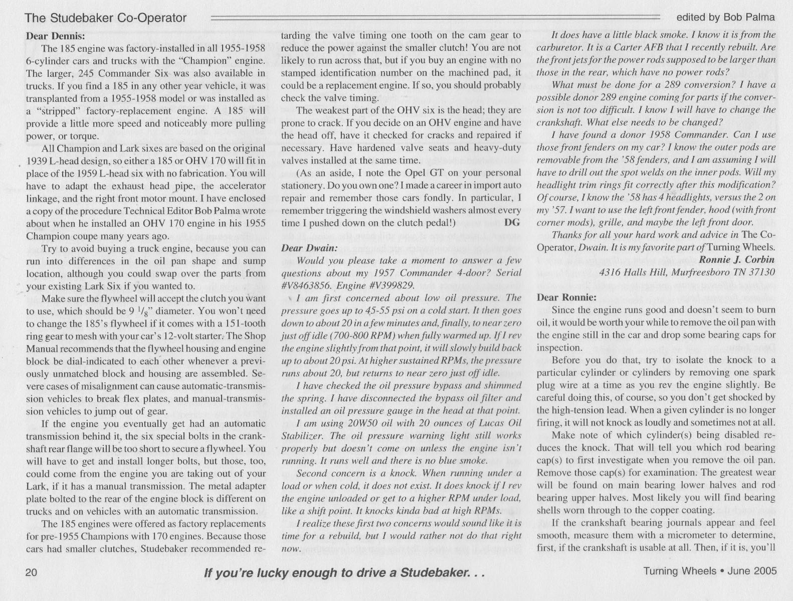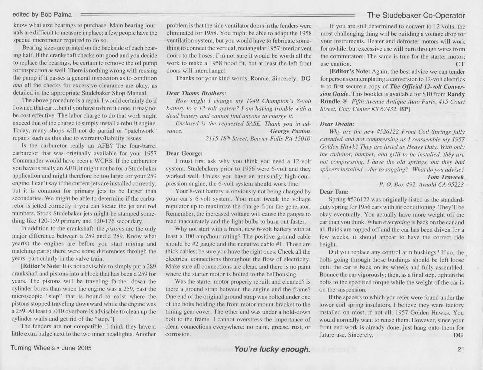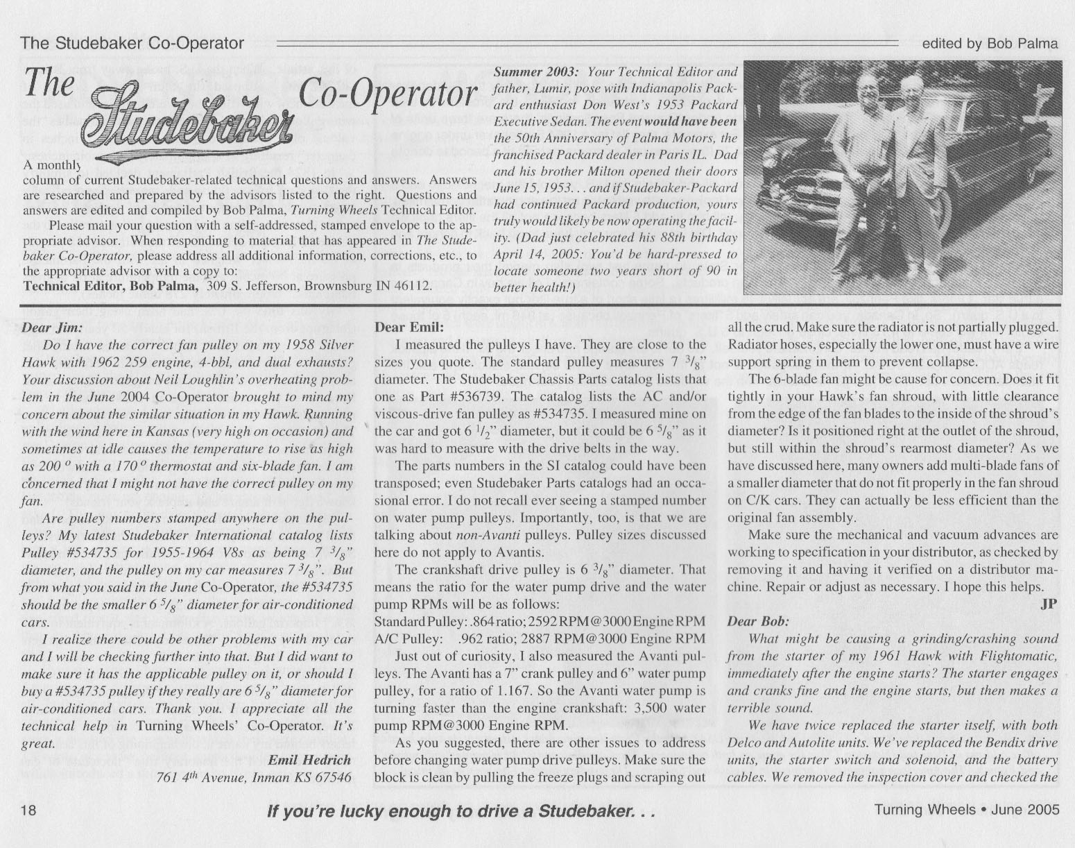 Bob's Studebaker Resource Website The Cooperator Turning Wheels, June 2005