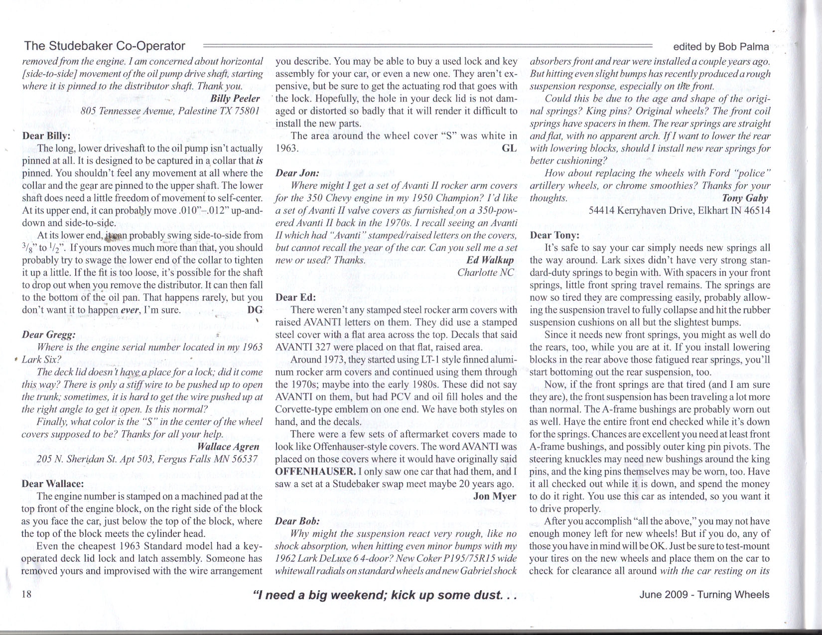 Bob's Studebaker Resource Website Cooperator Turning Wheels, June 2009