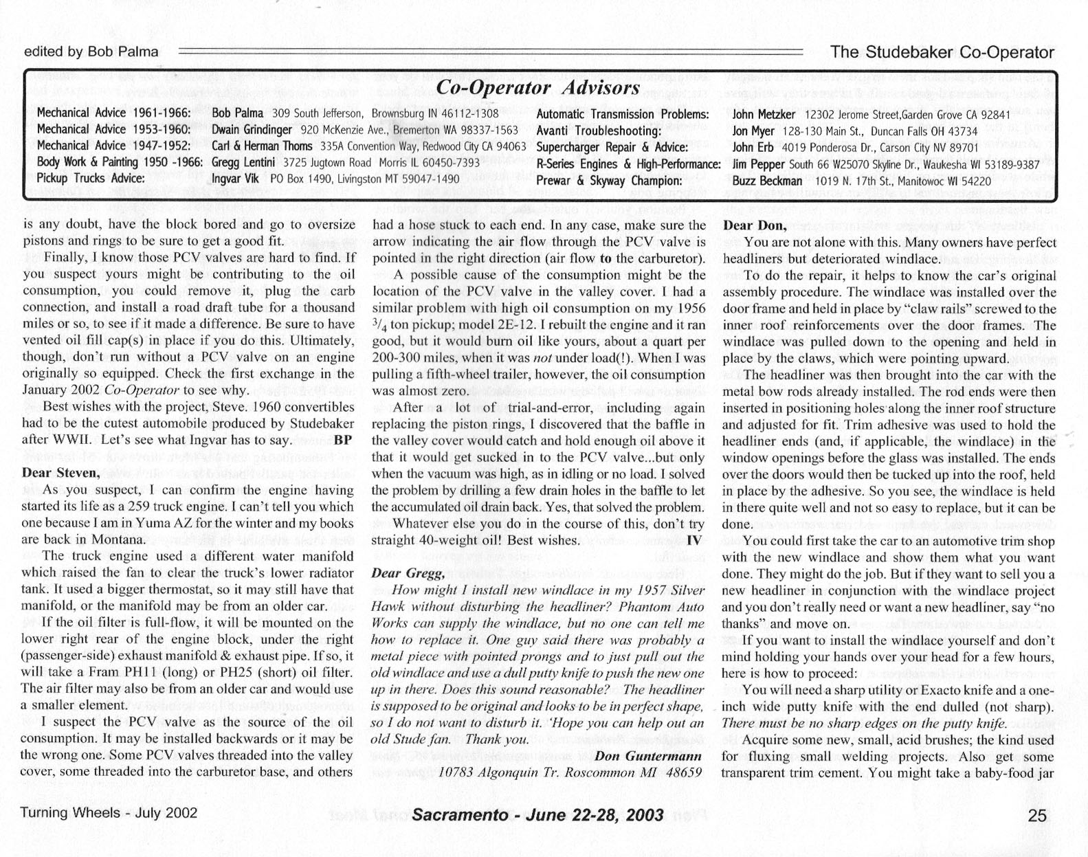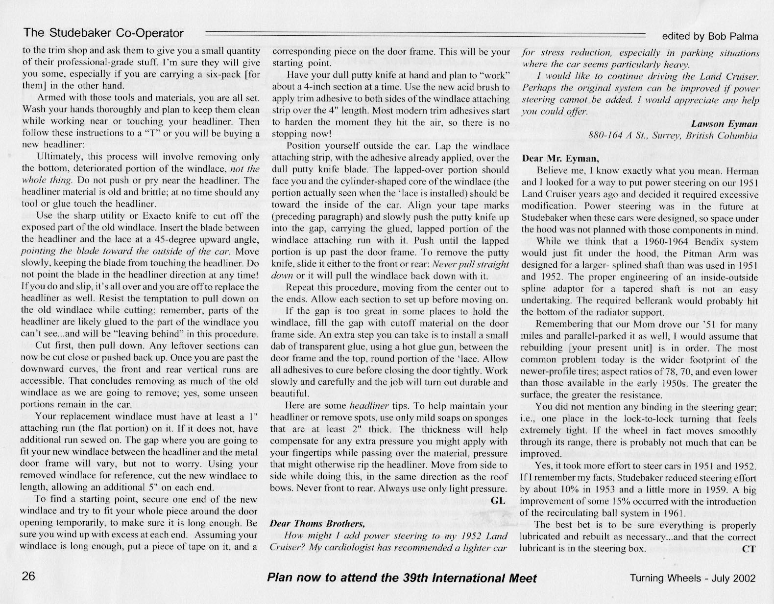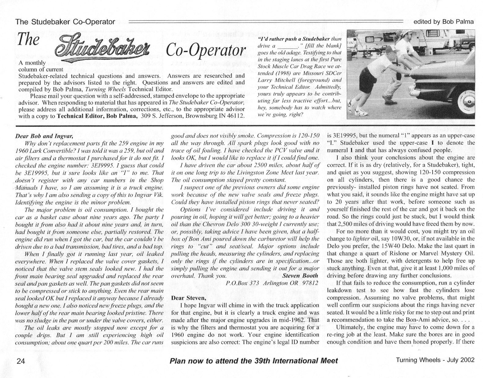 Bob's Studebaker Resource Website The Cooperator Turning Wheels, July 2002