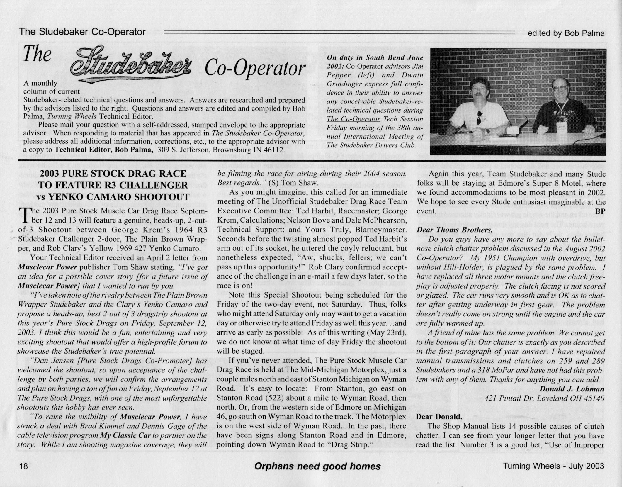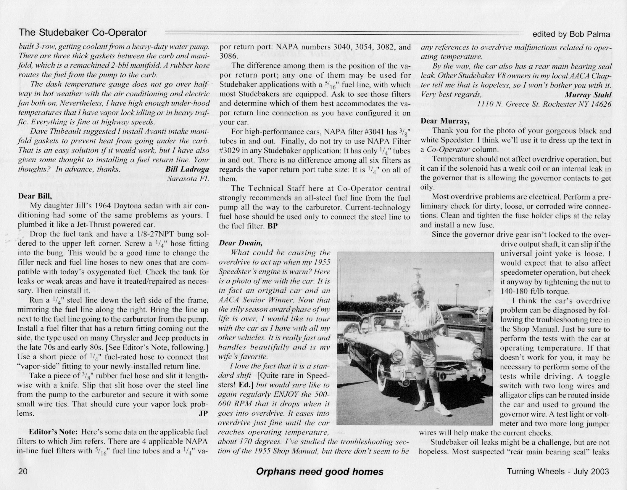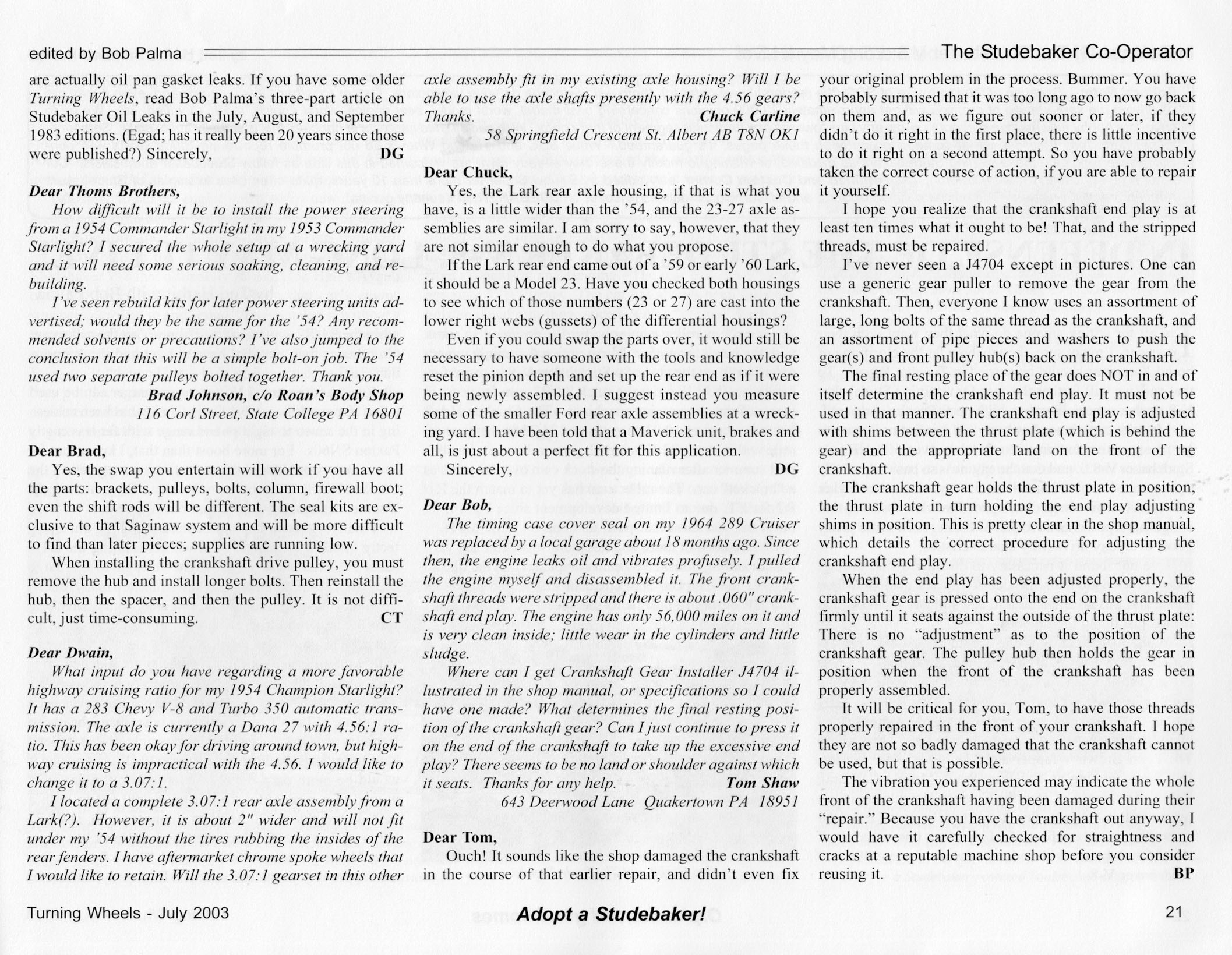 Bob's Studebaker Resource Website The Cooperator Turning Wheels, July 2003