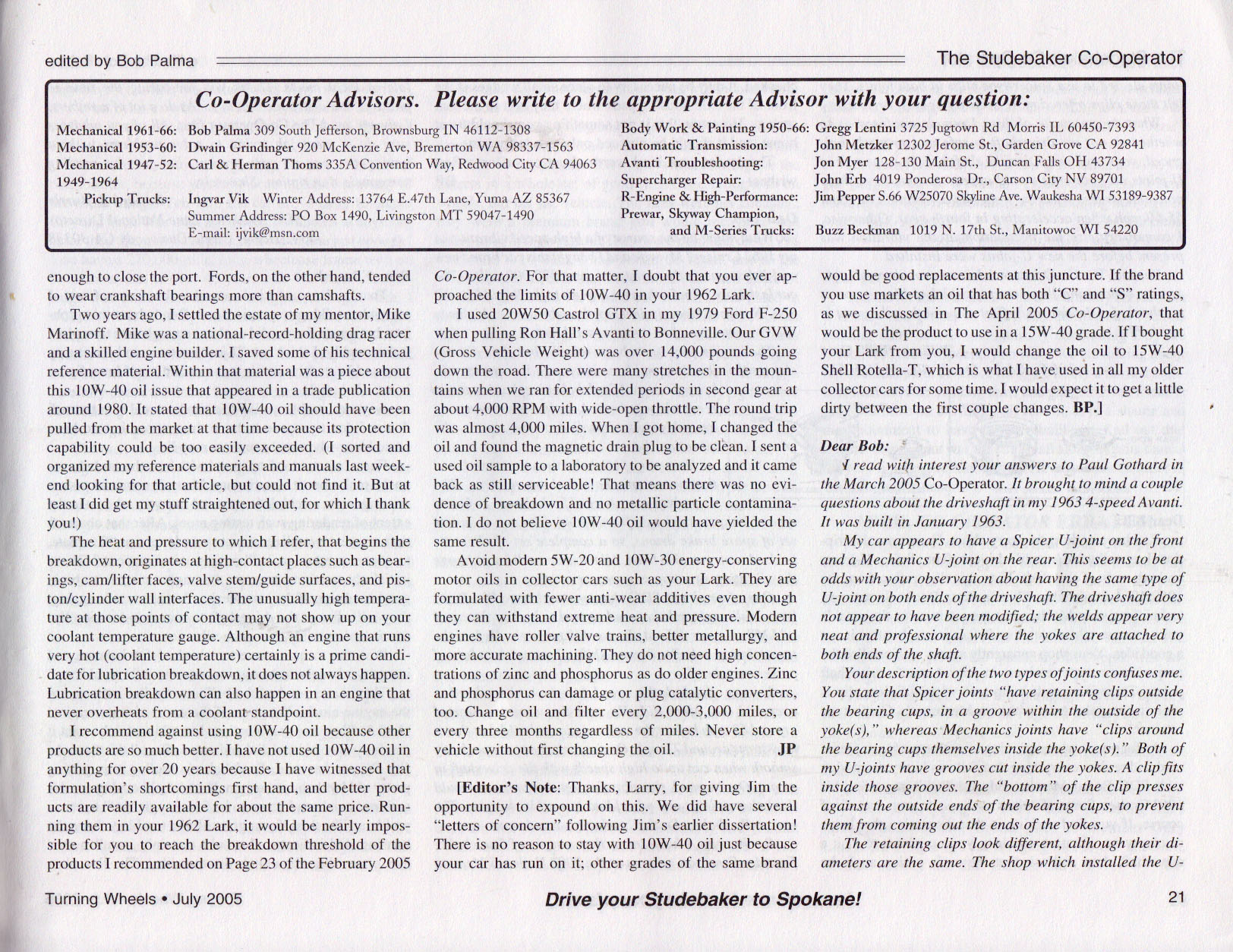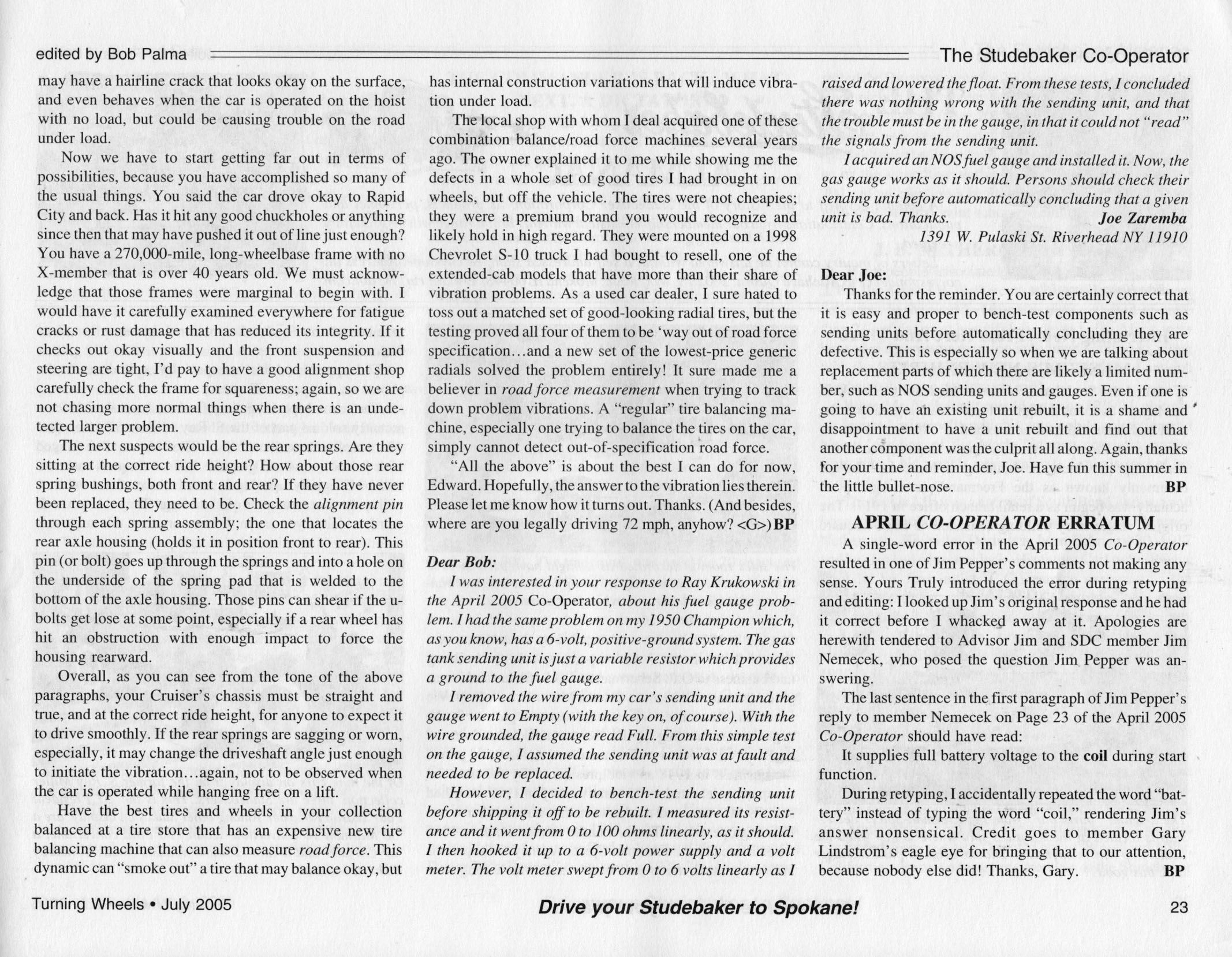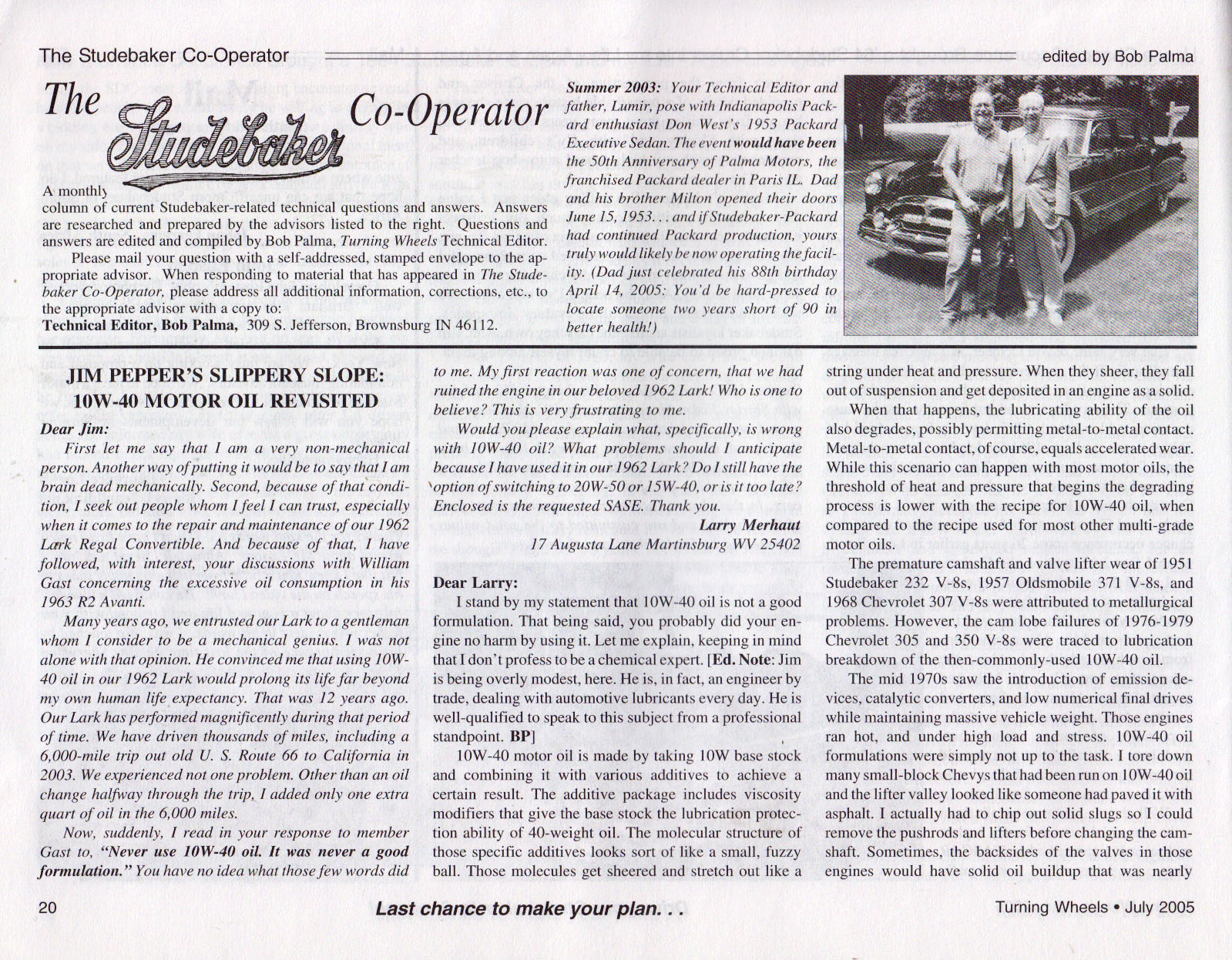 Bob's Studebaker Resource Website The Cooperator Turning Wheels, July 2005