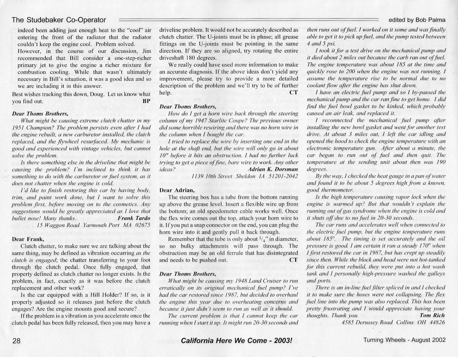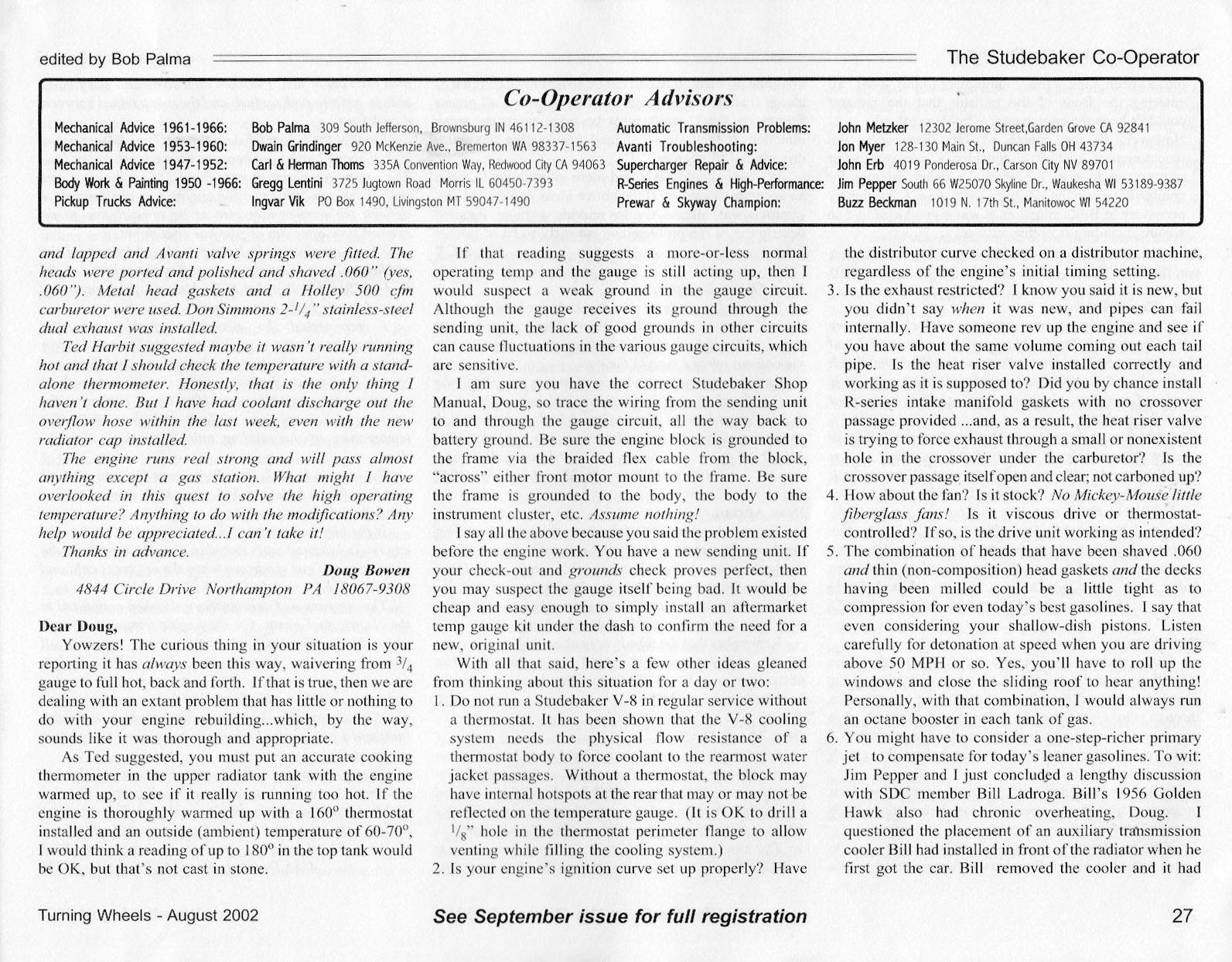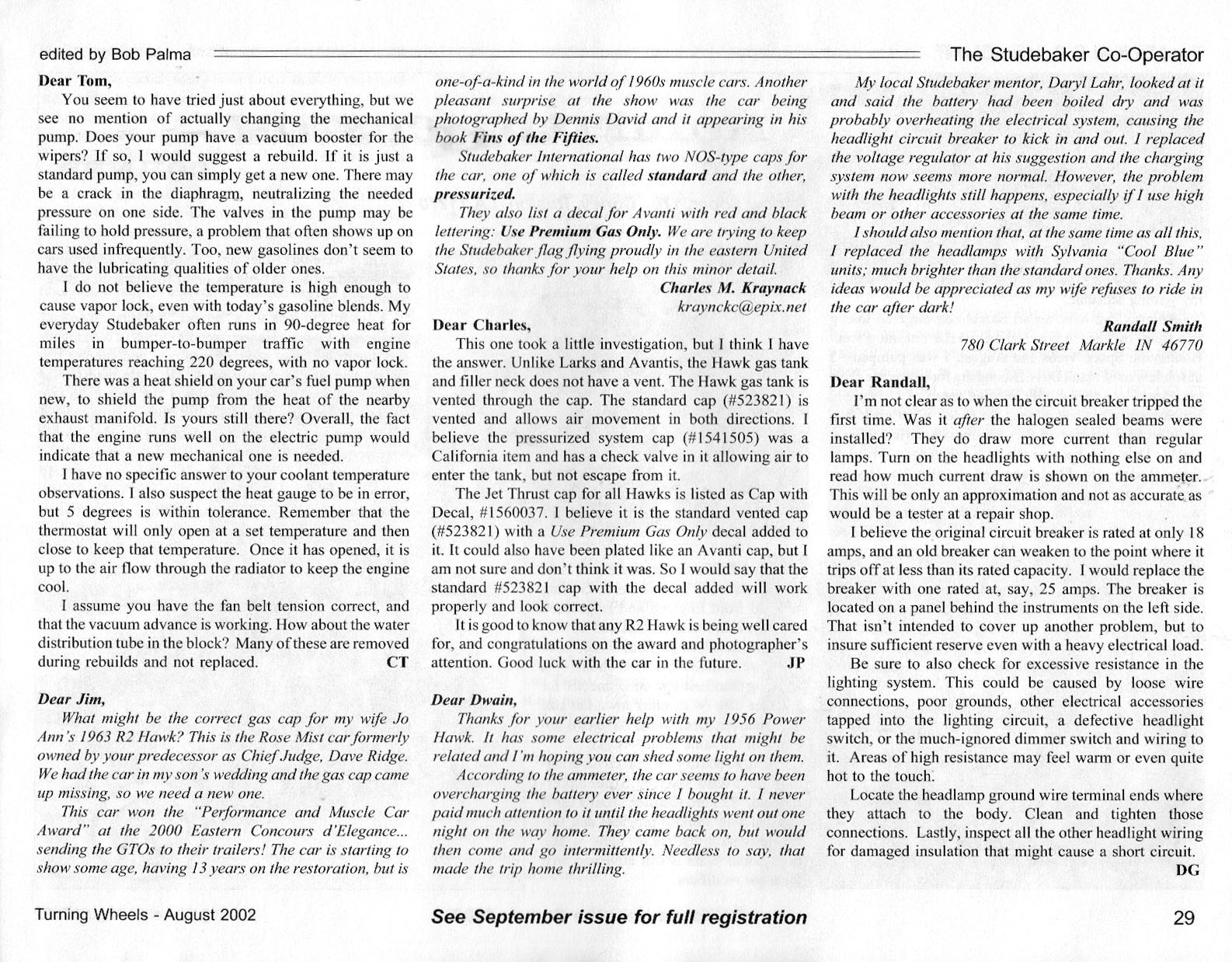 Bob's Studebaker Resource Website The Cooperator Turning Wheels, August 2002