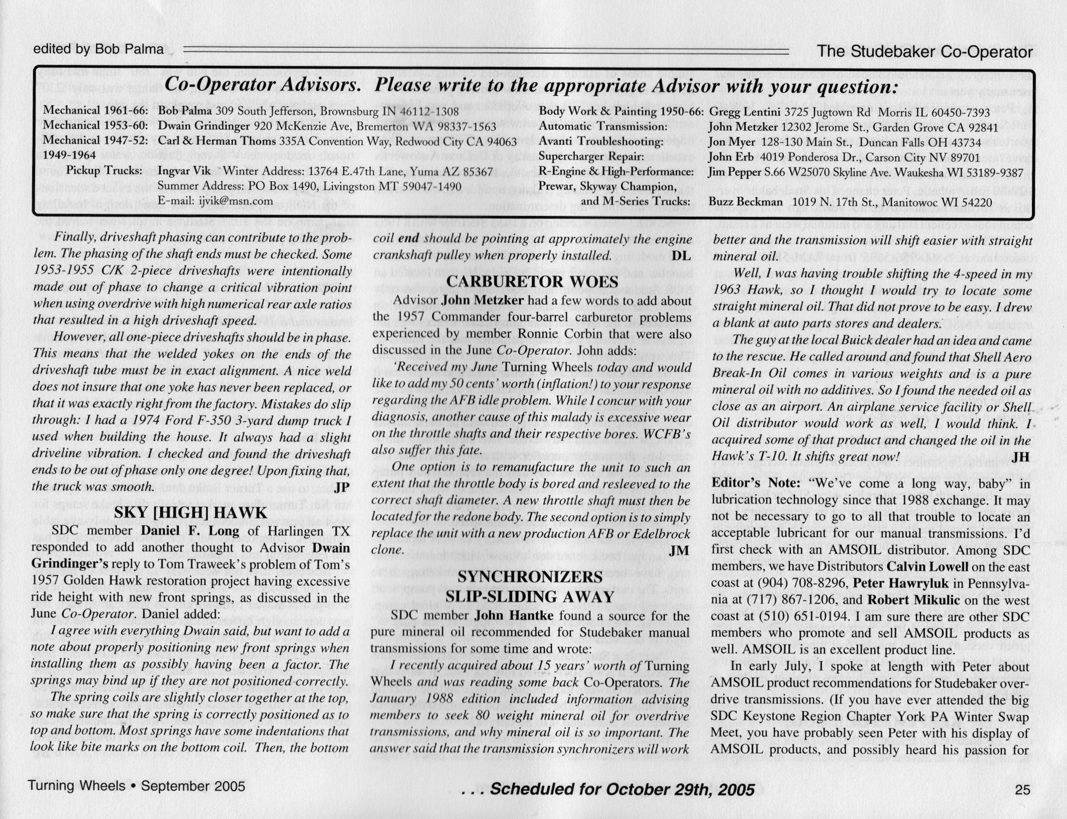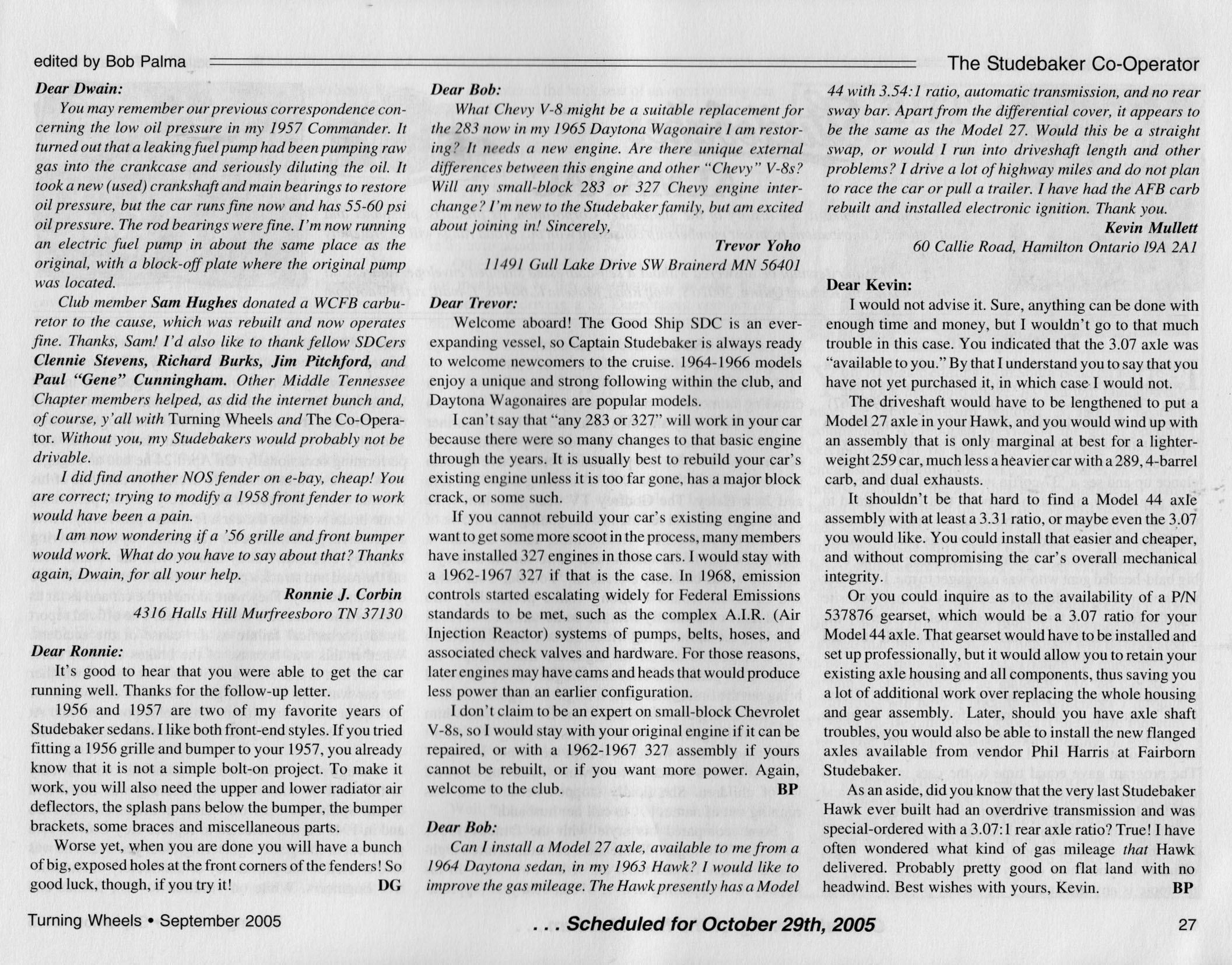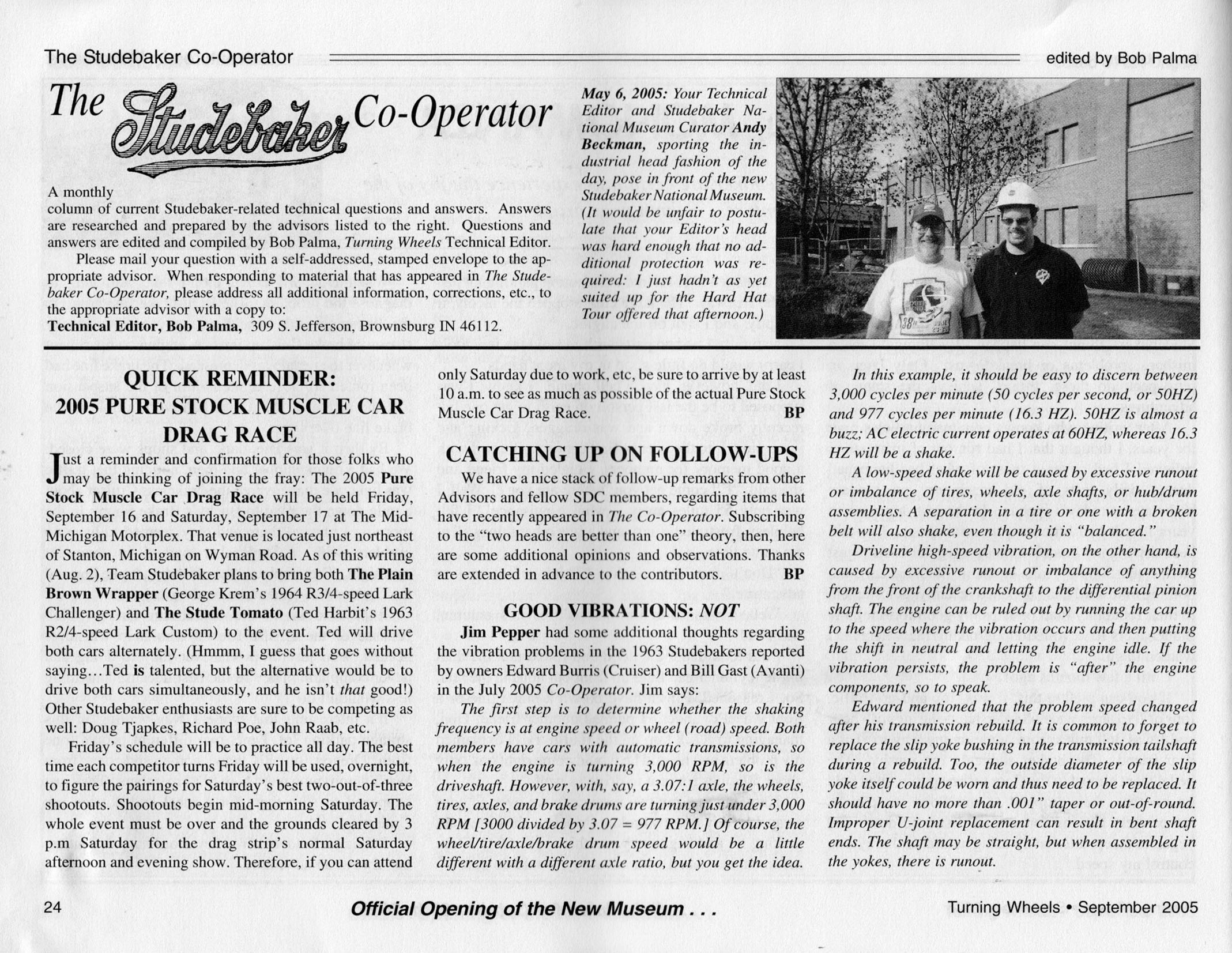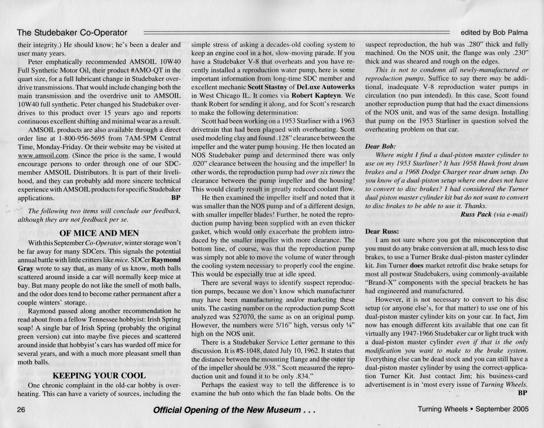 Bob's Studebaker Resource Website The Cooperator Turning Wheels, September 2005