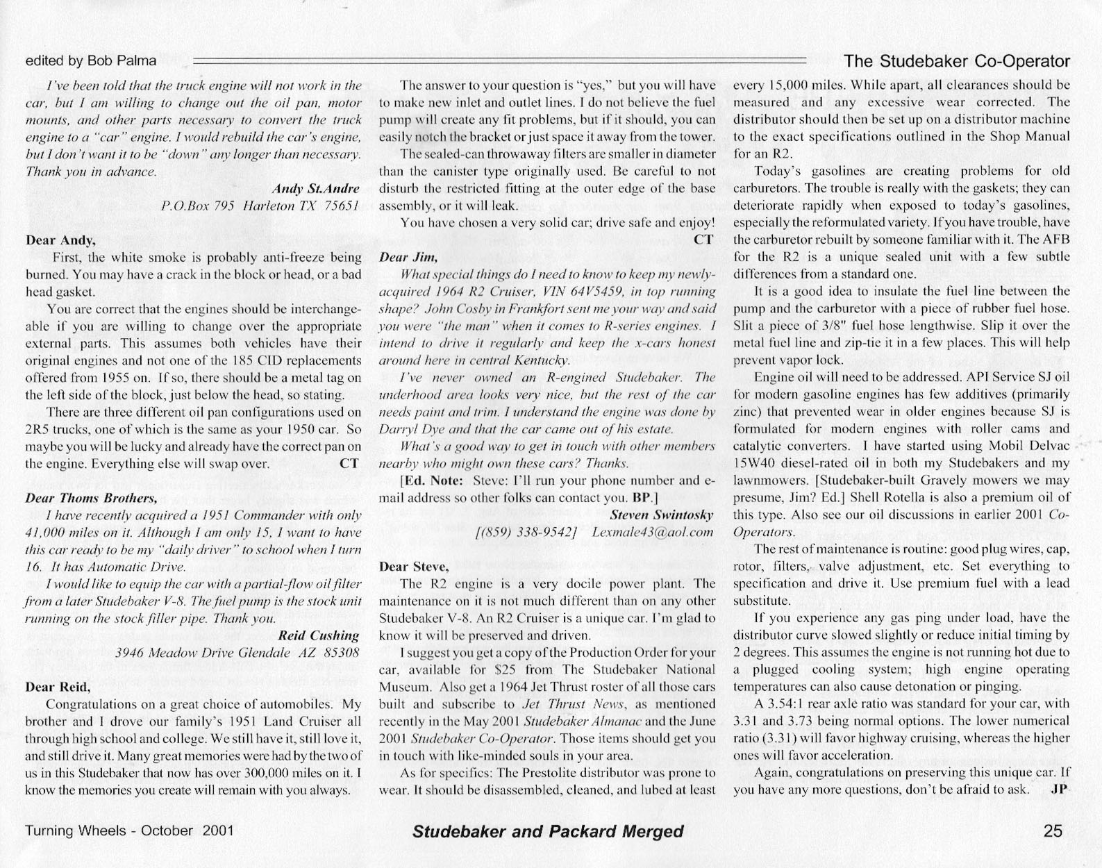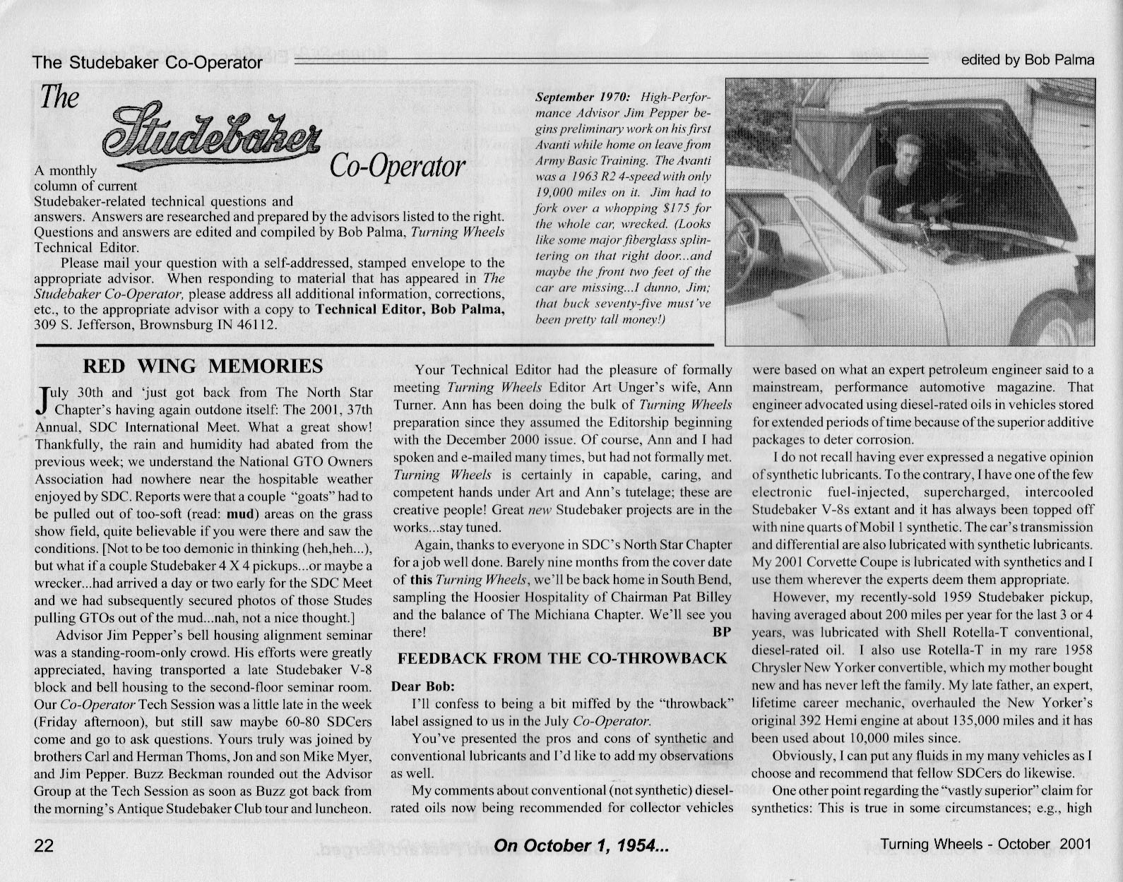 Bob's Studebaker Resource Website The Cooperator Turning Wheels, October 2001