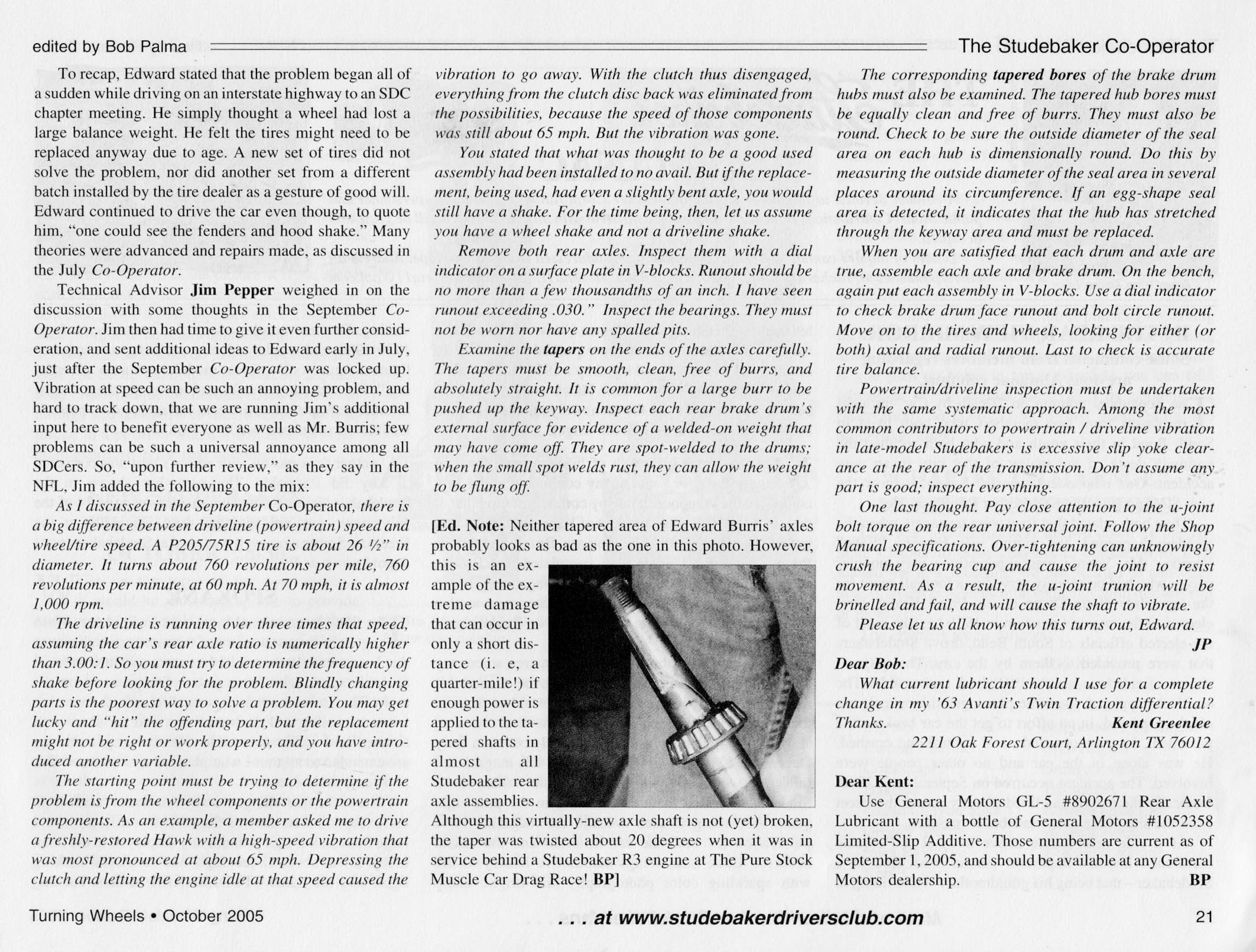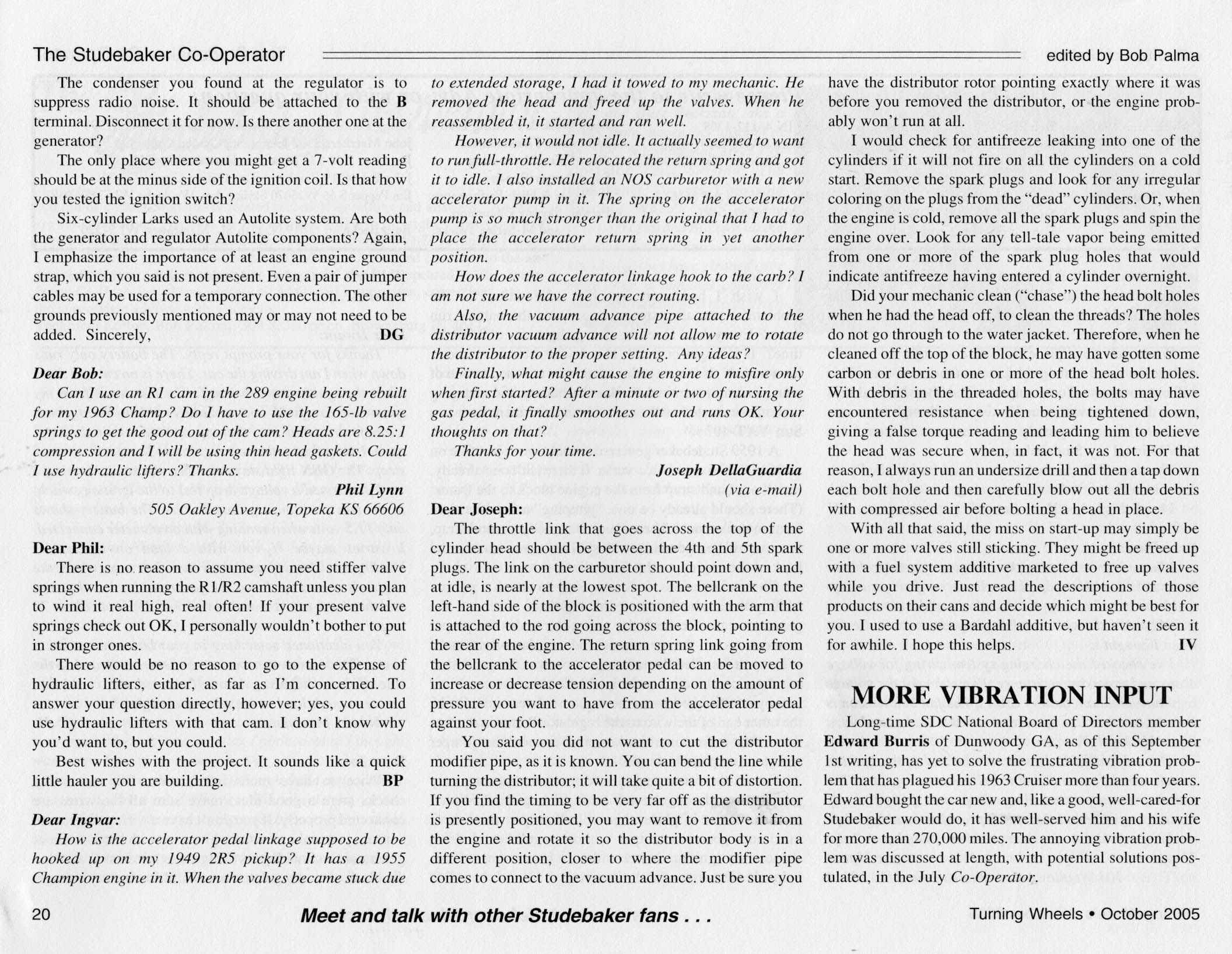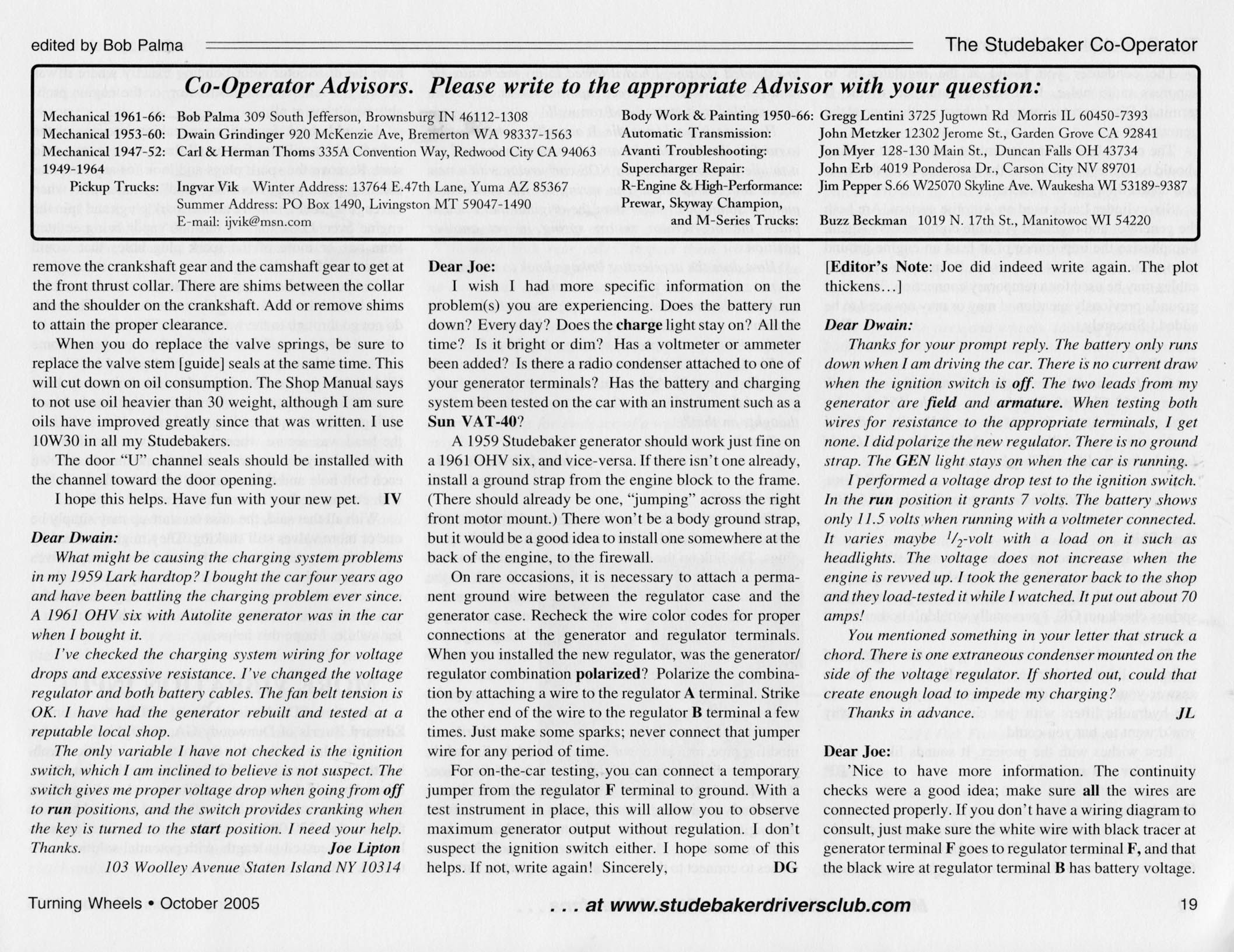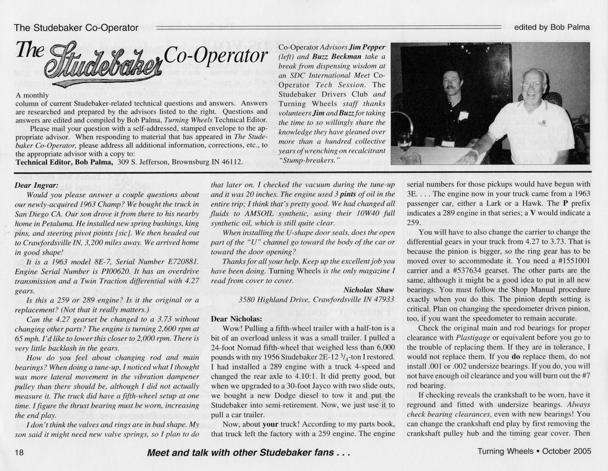 Bob's Studebaker Resource Website The Cooperator Turning Wheels, October 2005