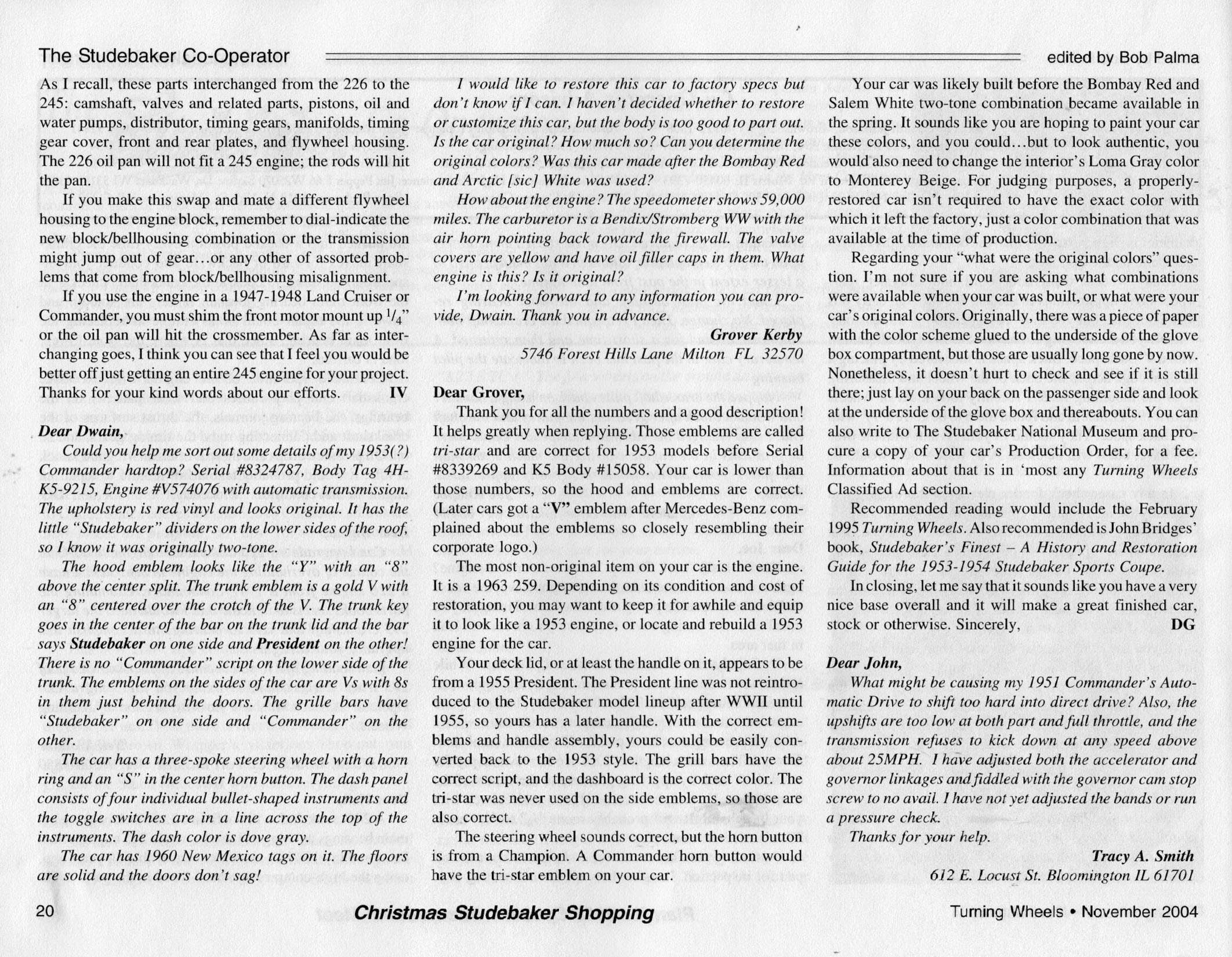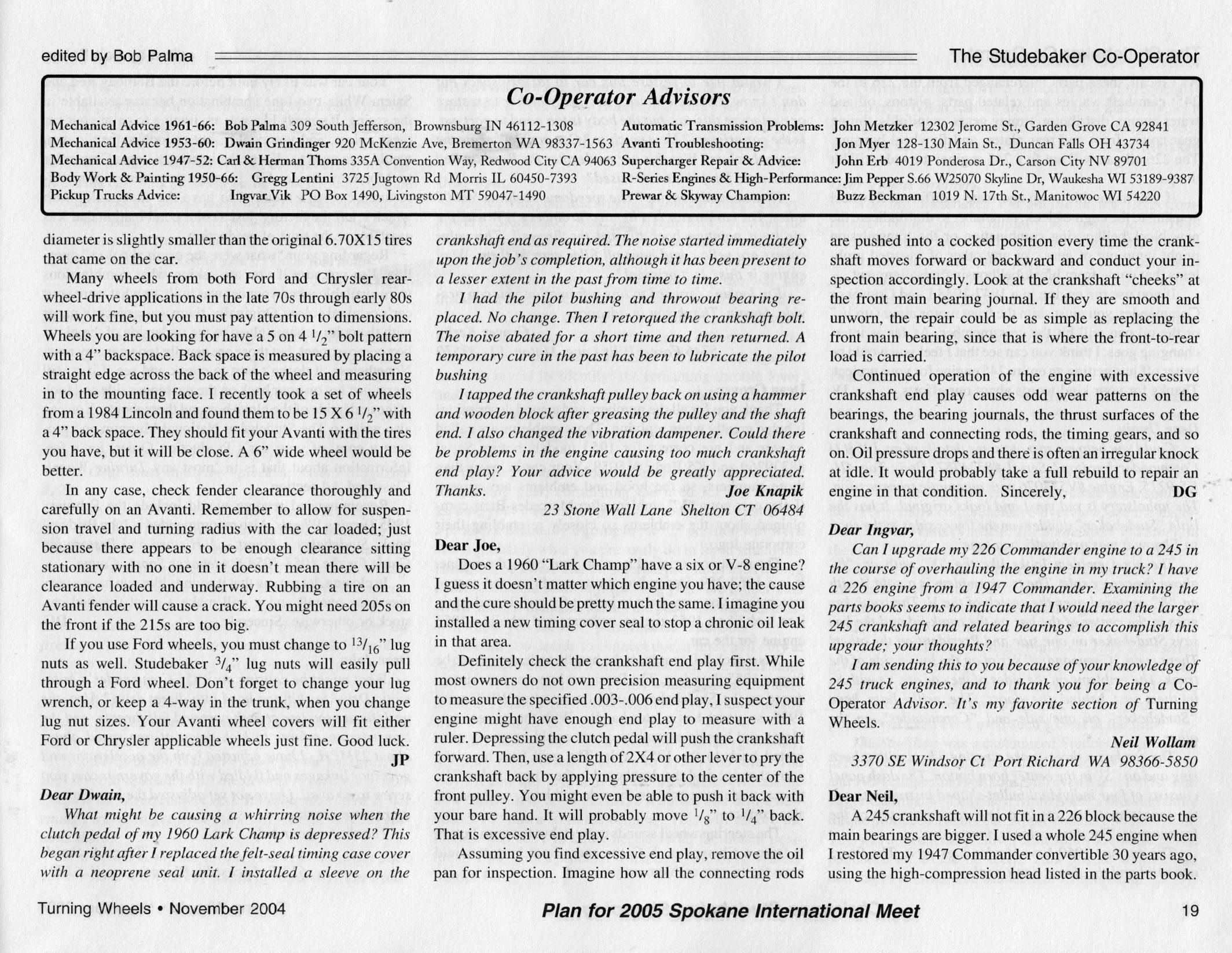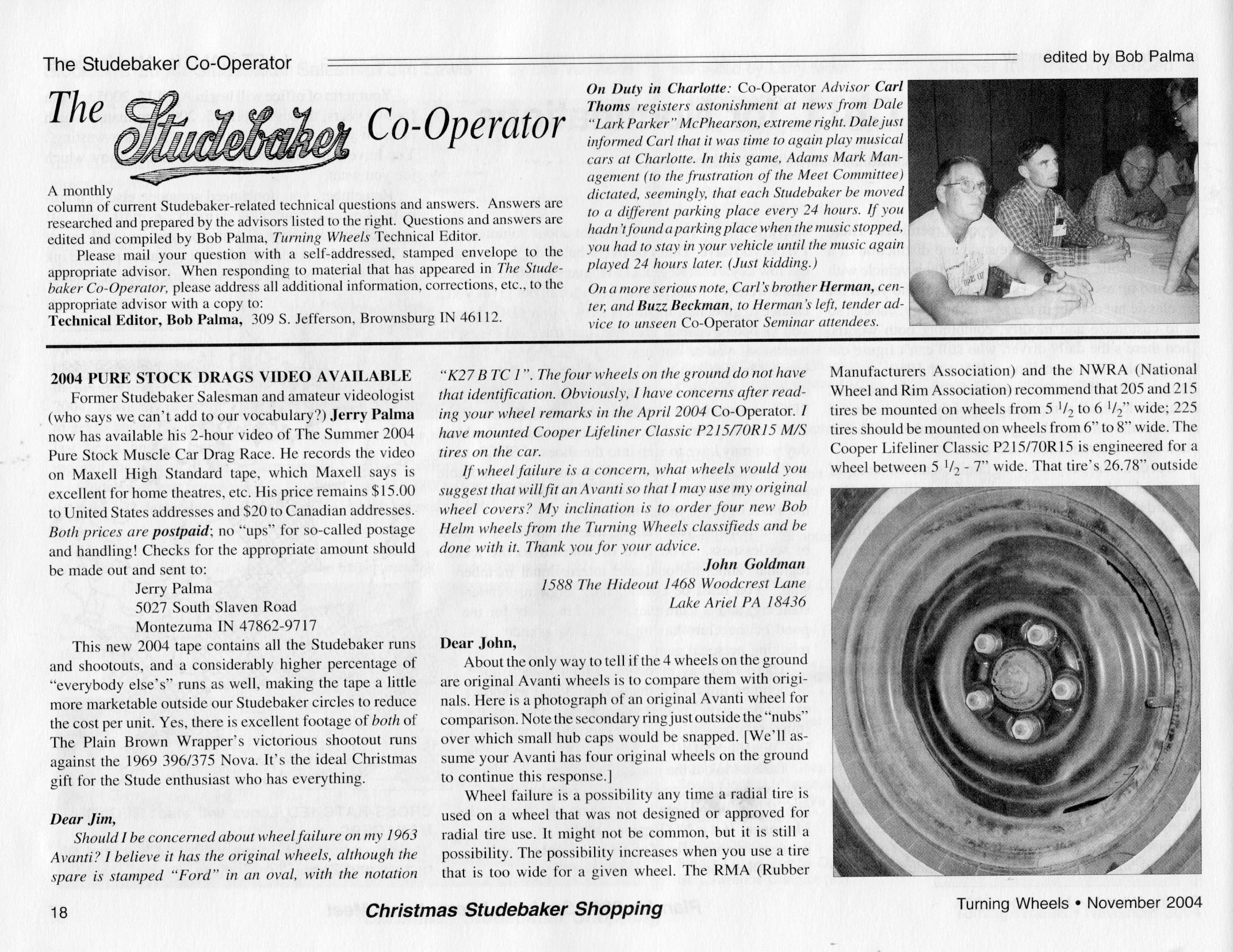 Bob's Studebaker Resource Website The Cooperator Turning Wheels, November 2004