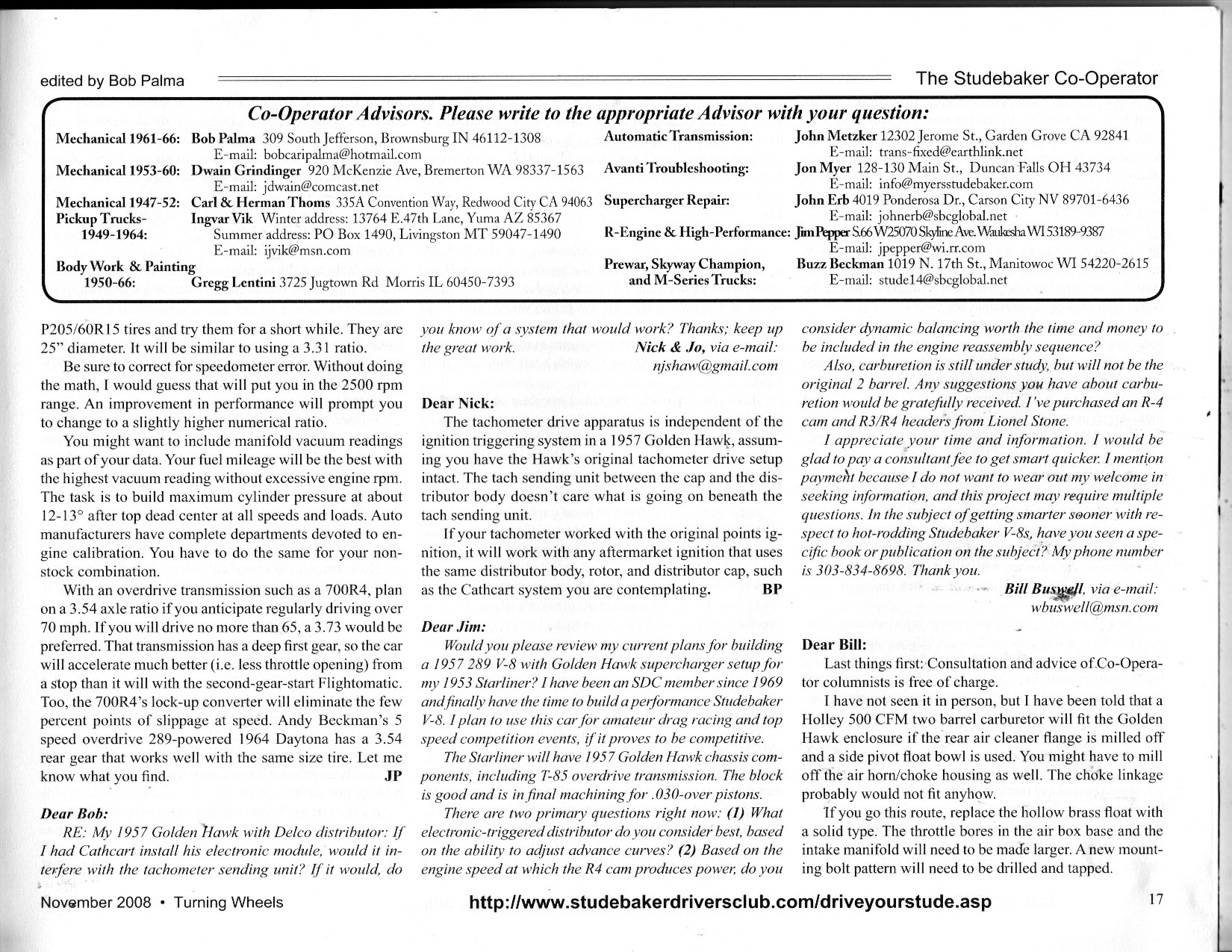 Bob's Studebaker Resource Website Cooperator Turning Wheels, November 2008