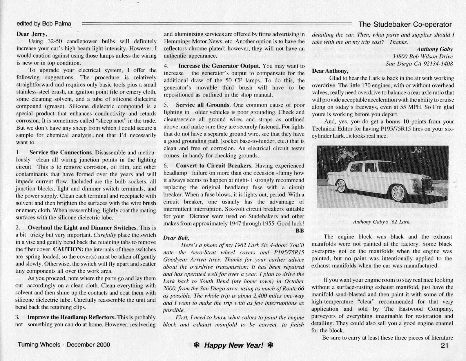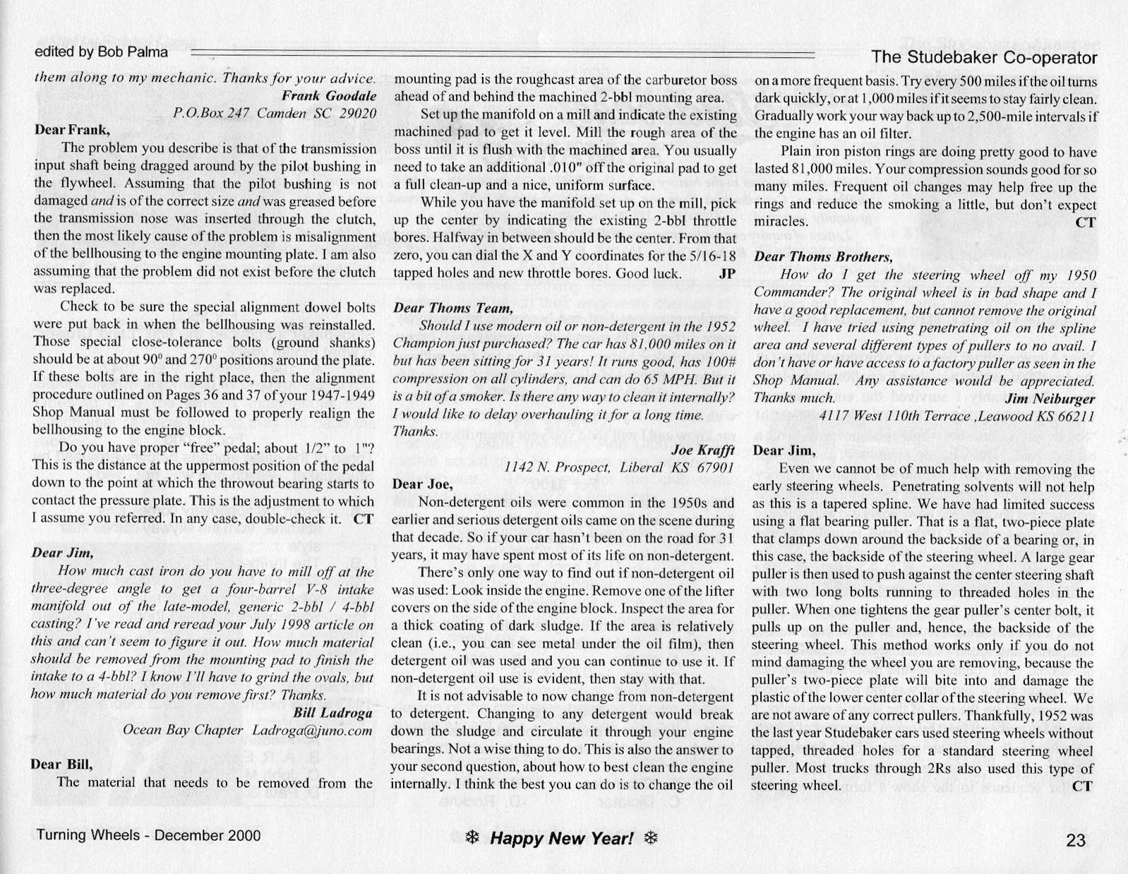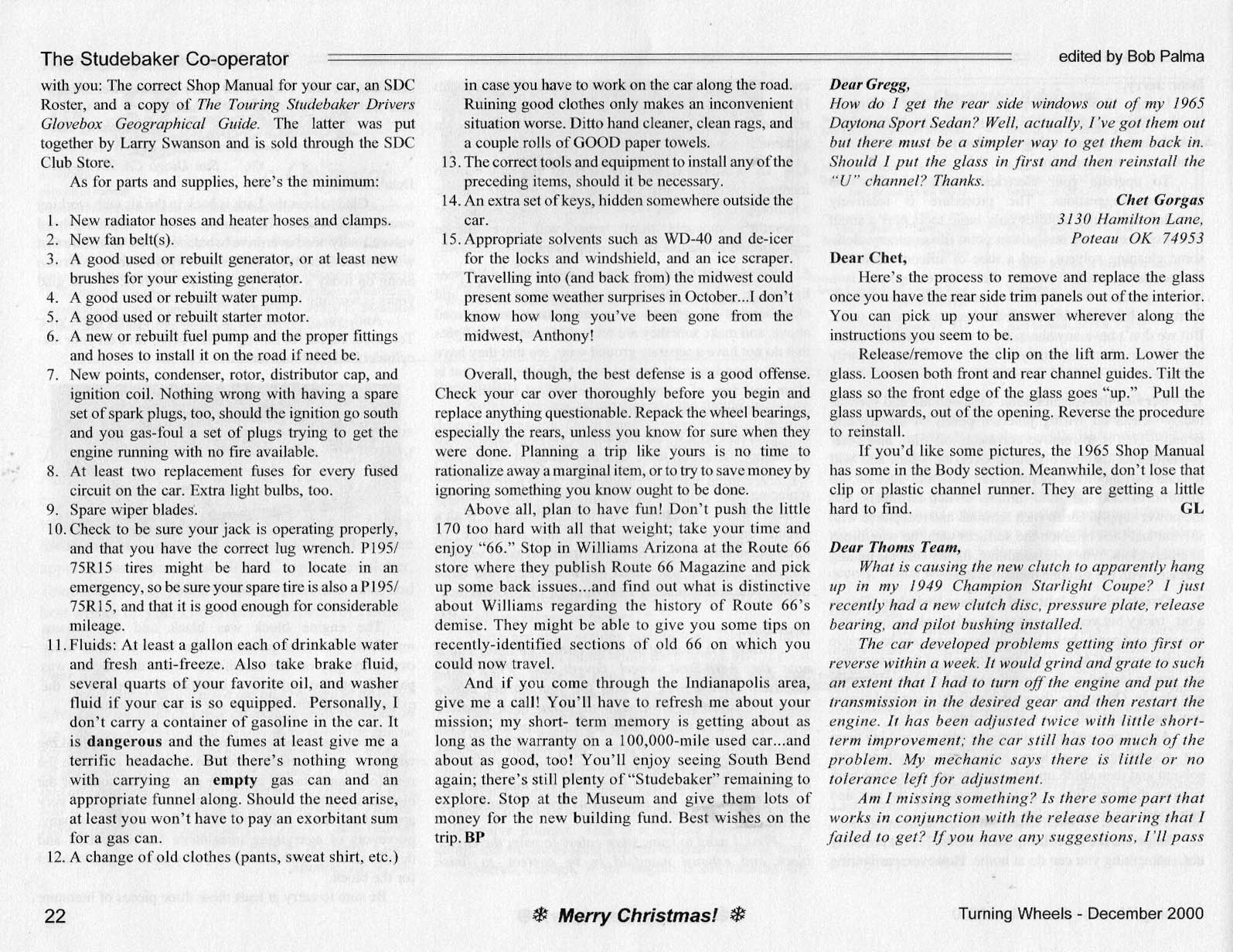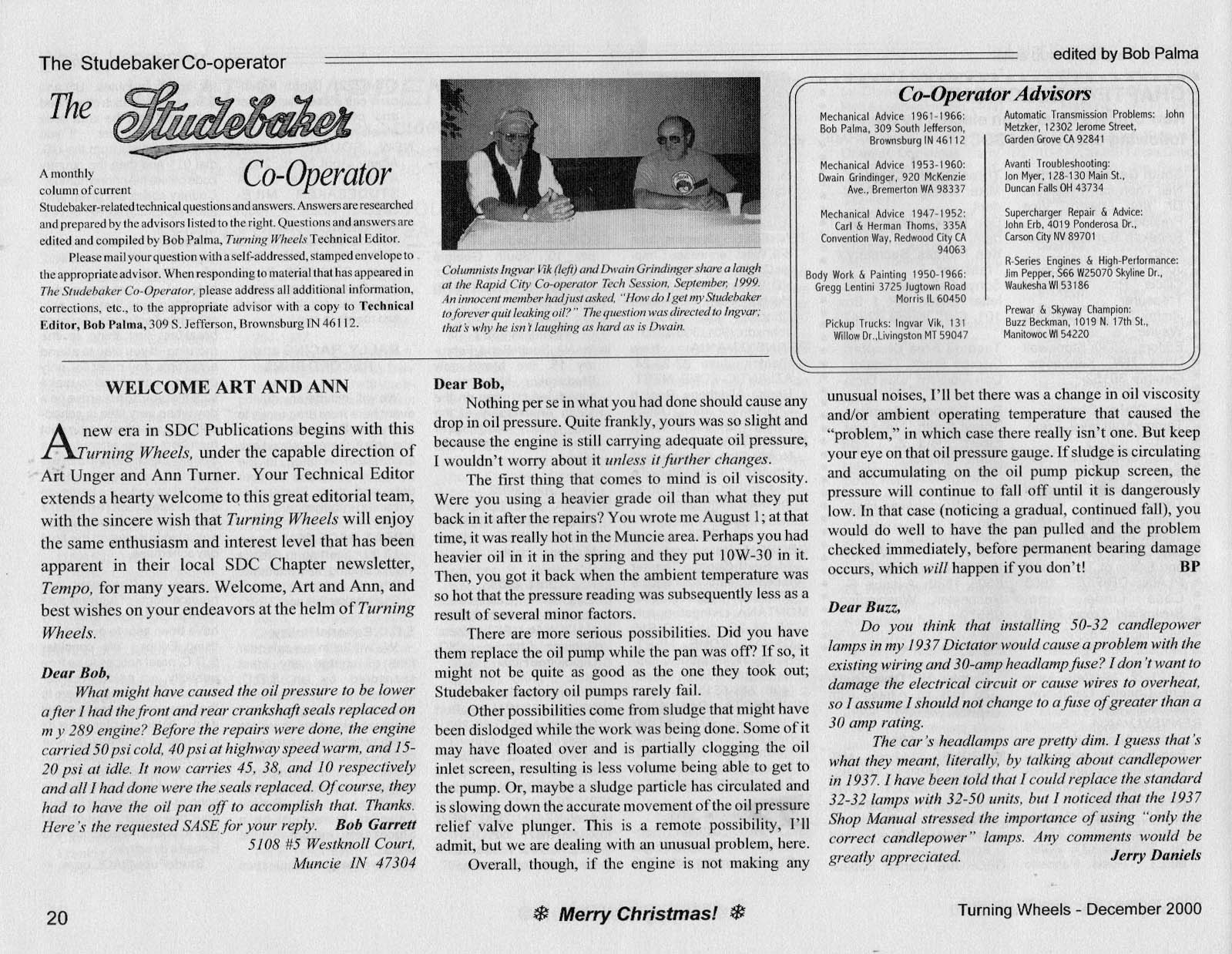 Bob's Studebaker Resource Website The Cooperator Turning Wheels, December 2000