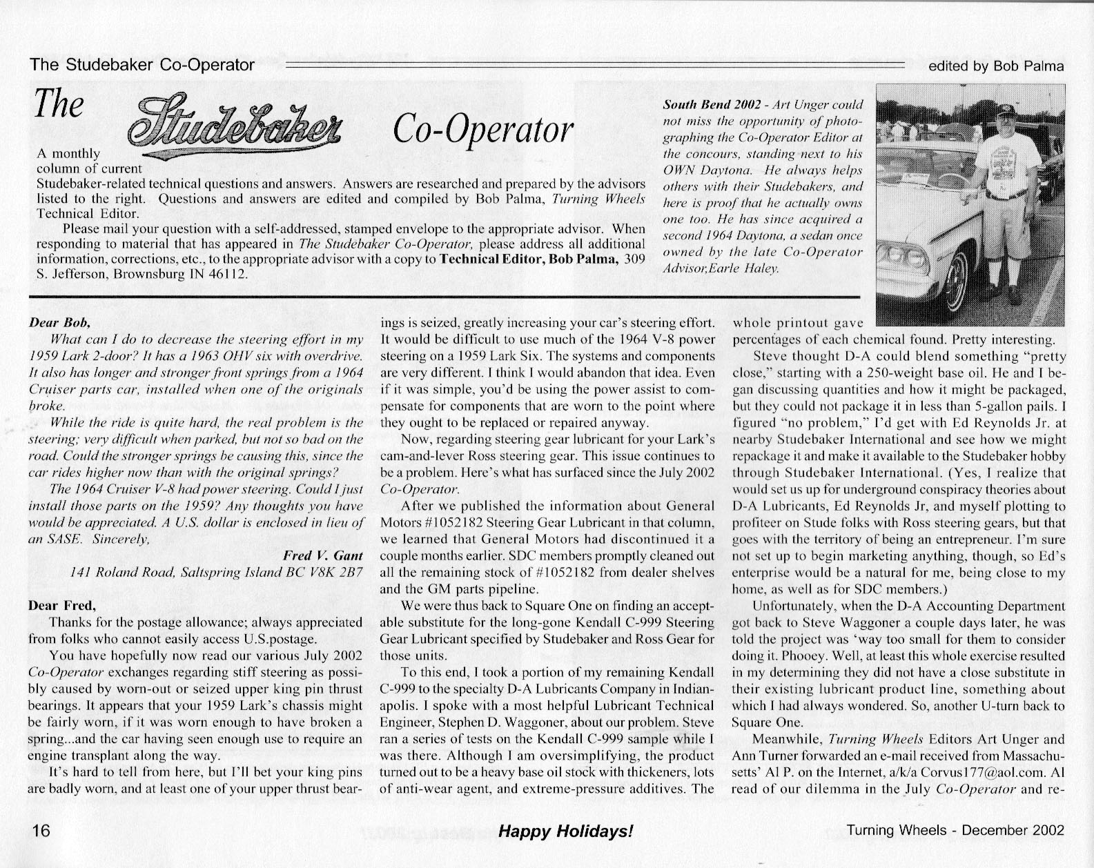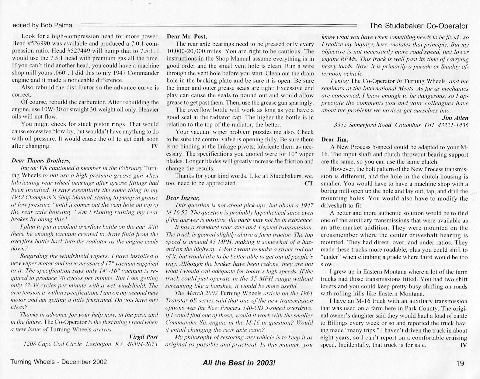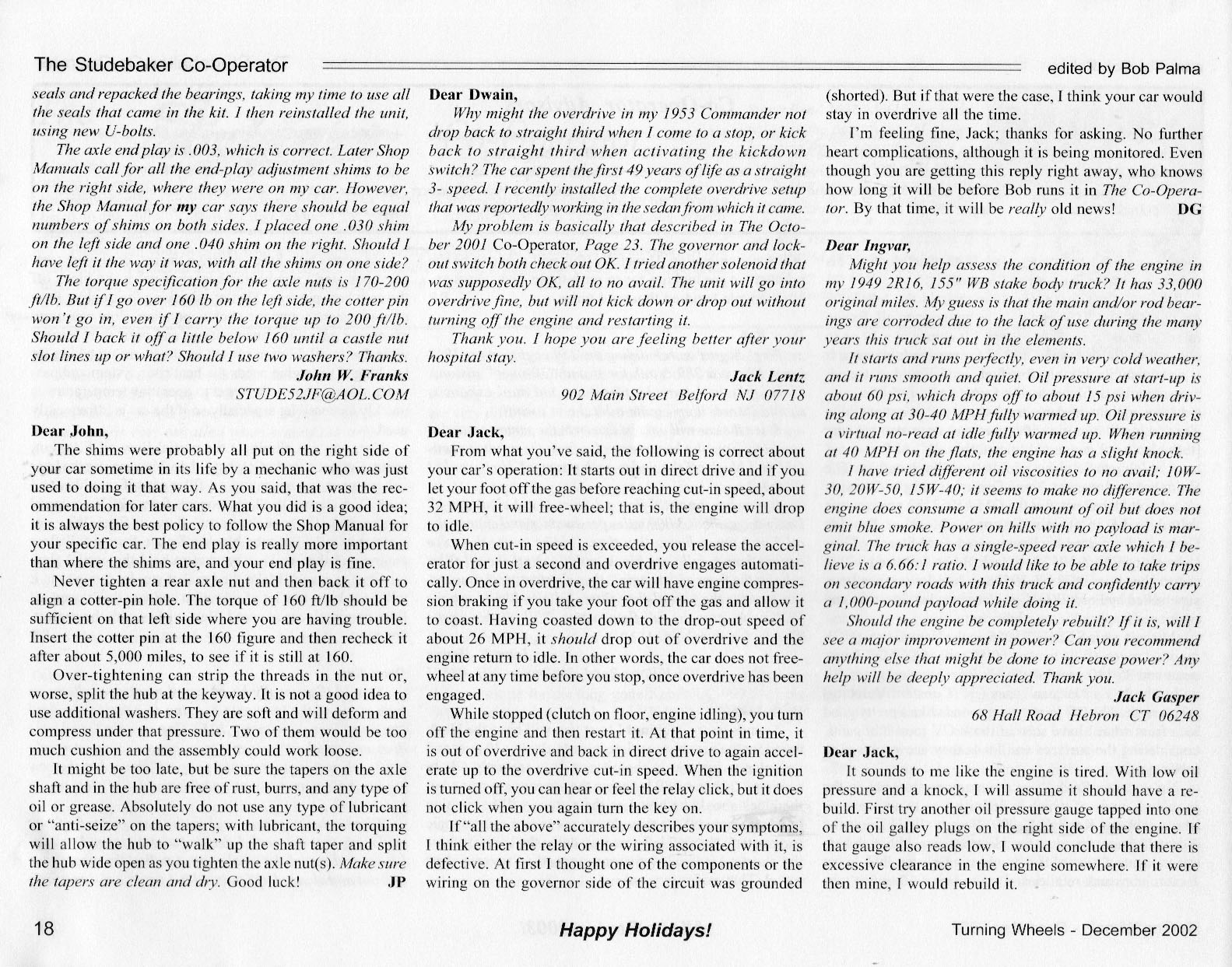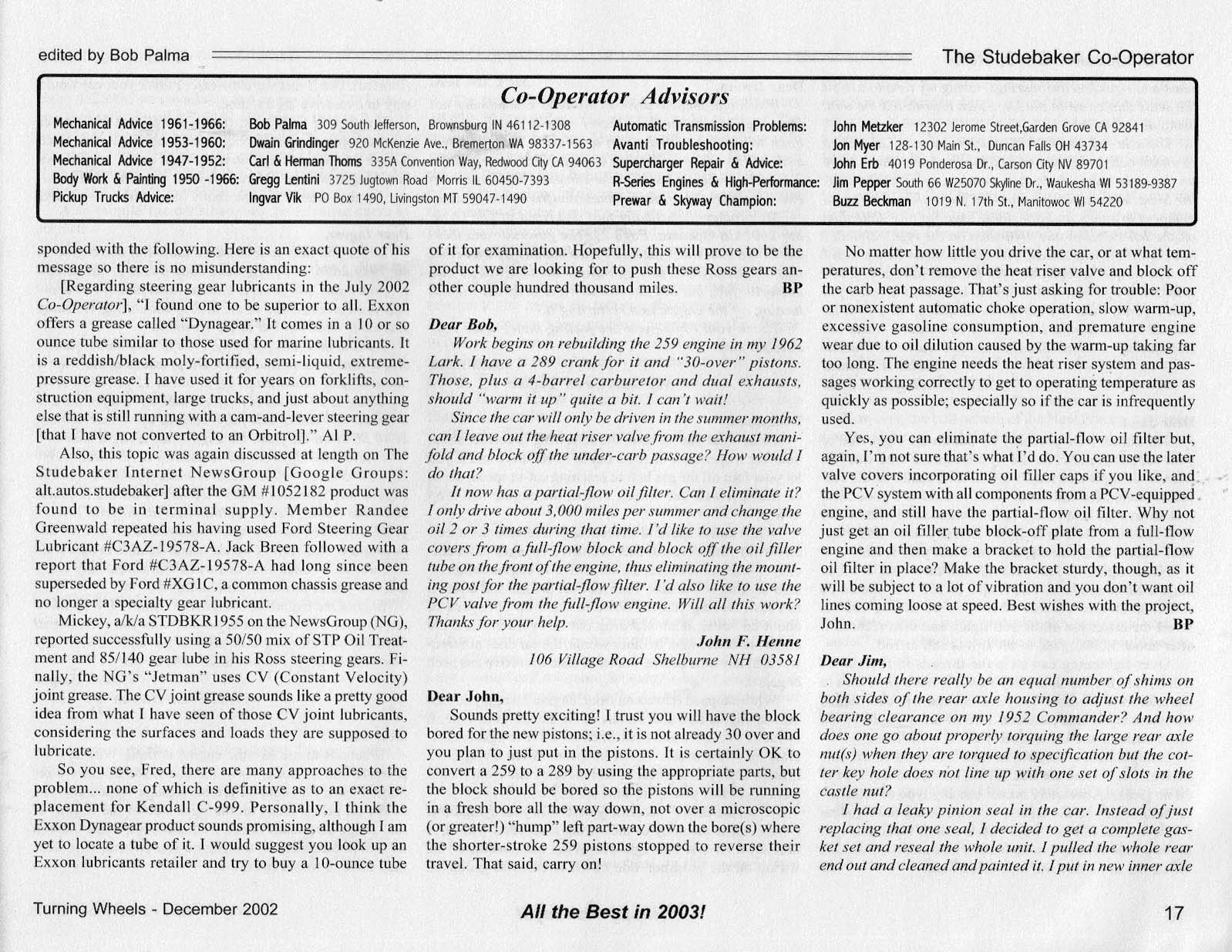 Bob's Studebaker Resource Website The Cooperator Turning Wheels, December 2002