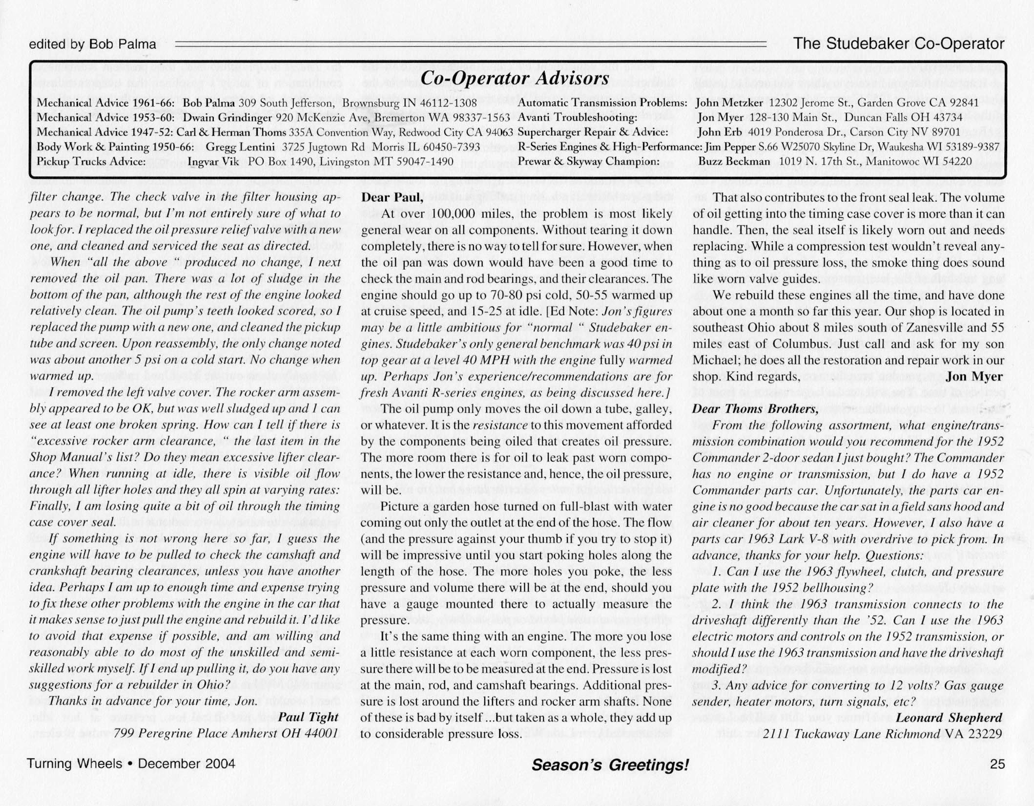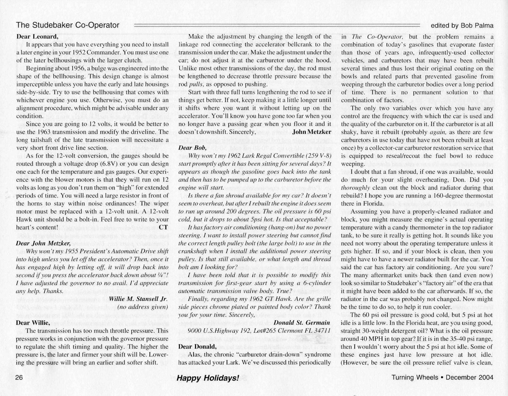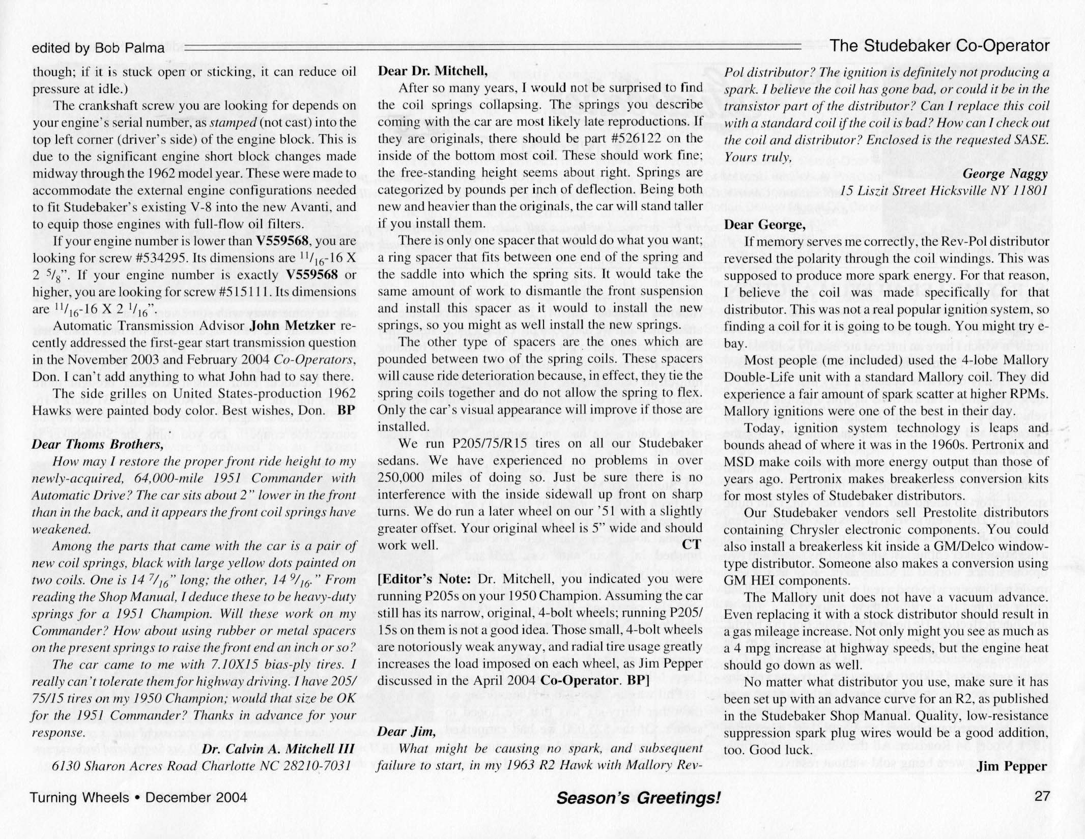 Bob's Studebaker Resource Website The Cooperator Turning Wheels, December 2004