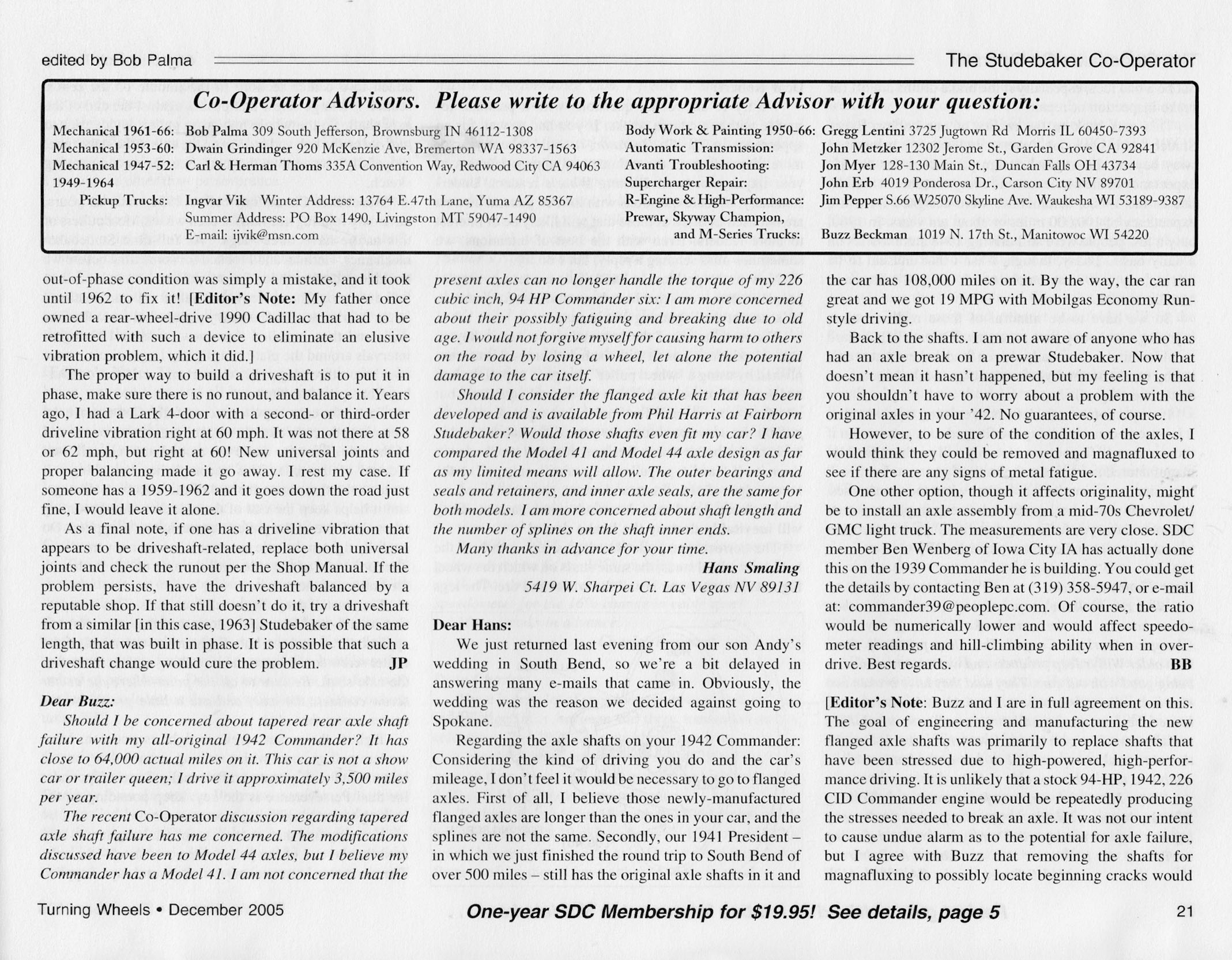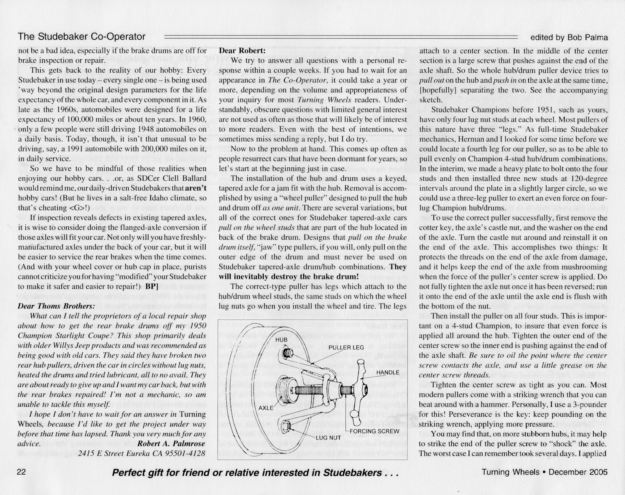 Bob's Studebaker Resource Website The Cooperator Turning Wheels, December 2005
